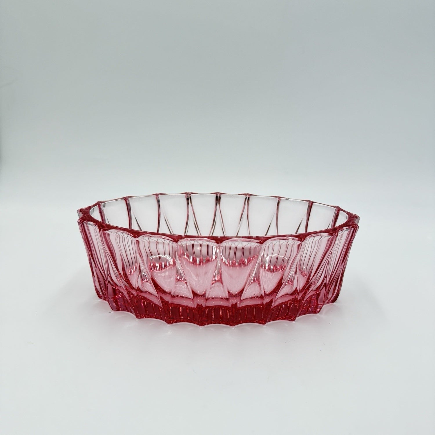 Vintage Fostoria Art Glass Pink Faceted Oval Bowl # 189 MCM 1960 Measure 9" x 3"