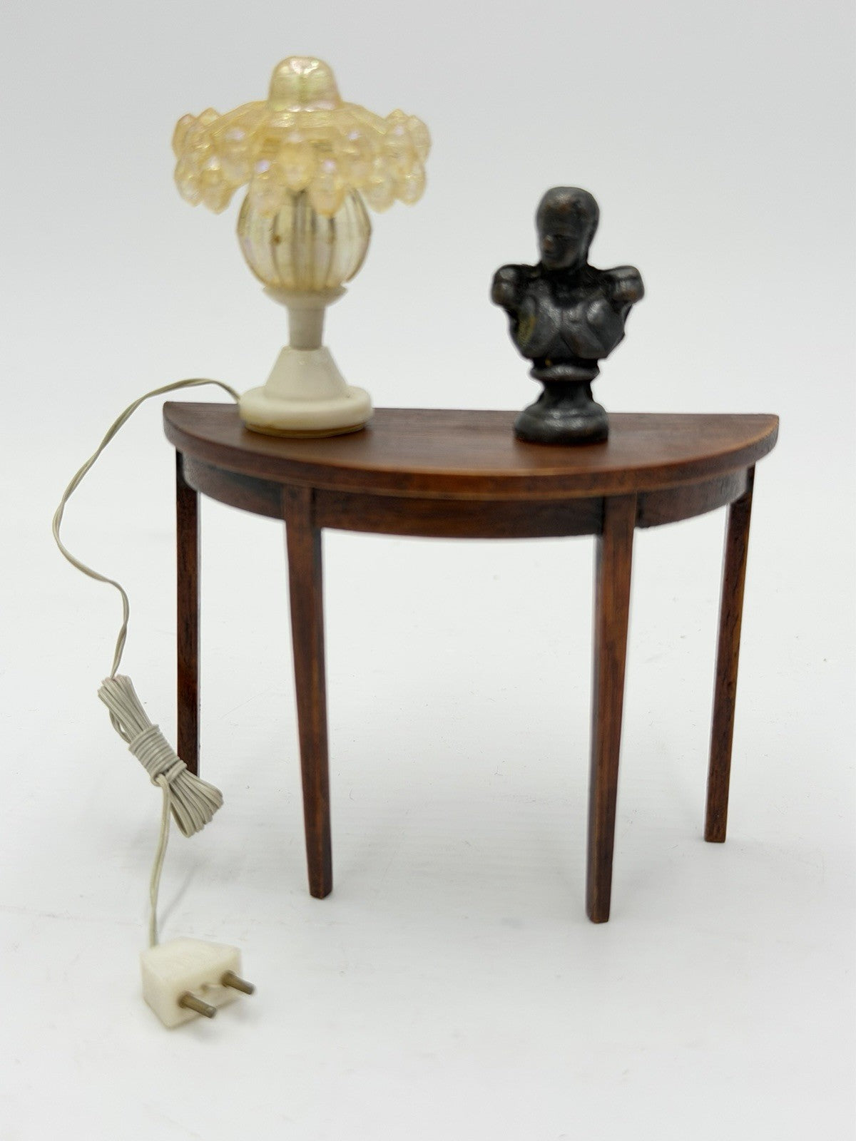 Vintage 1970 Dollhouse Miniature Lamp W/cord Mini Bust & Wooden Entryway Table
