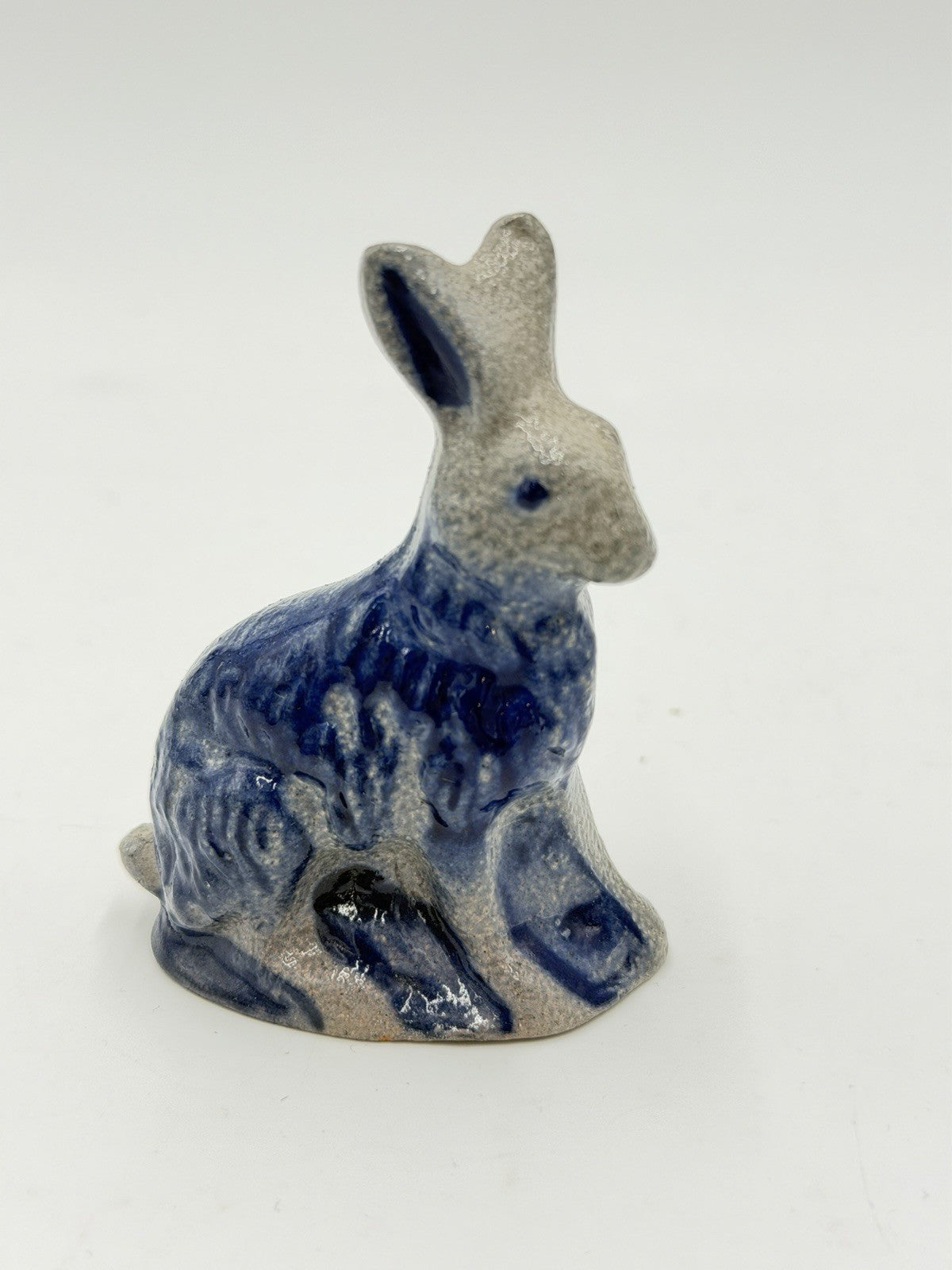 Rowe Art Pottery USA 1993 Bunny Rabbit Easter 3”H Figurine Blue Vtg Salt Glaze