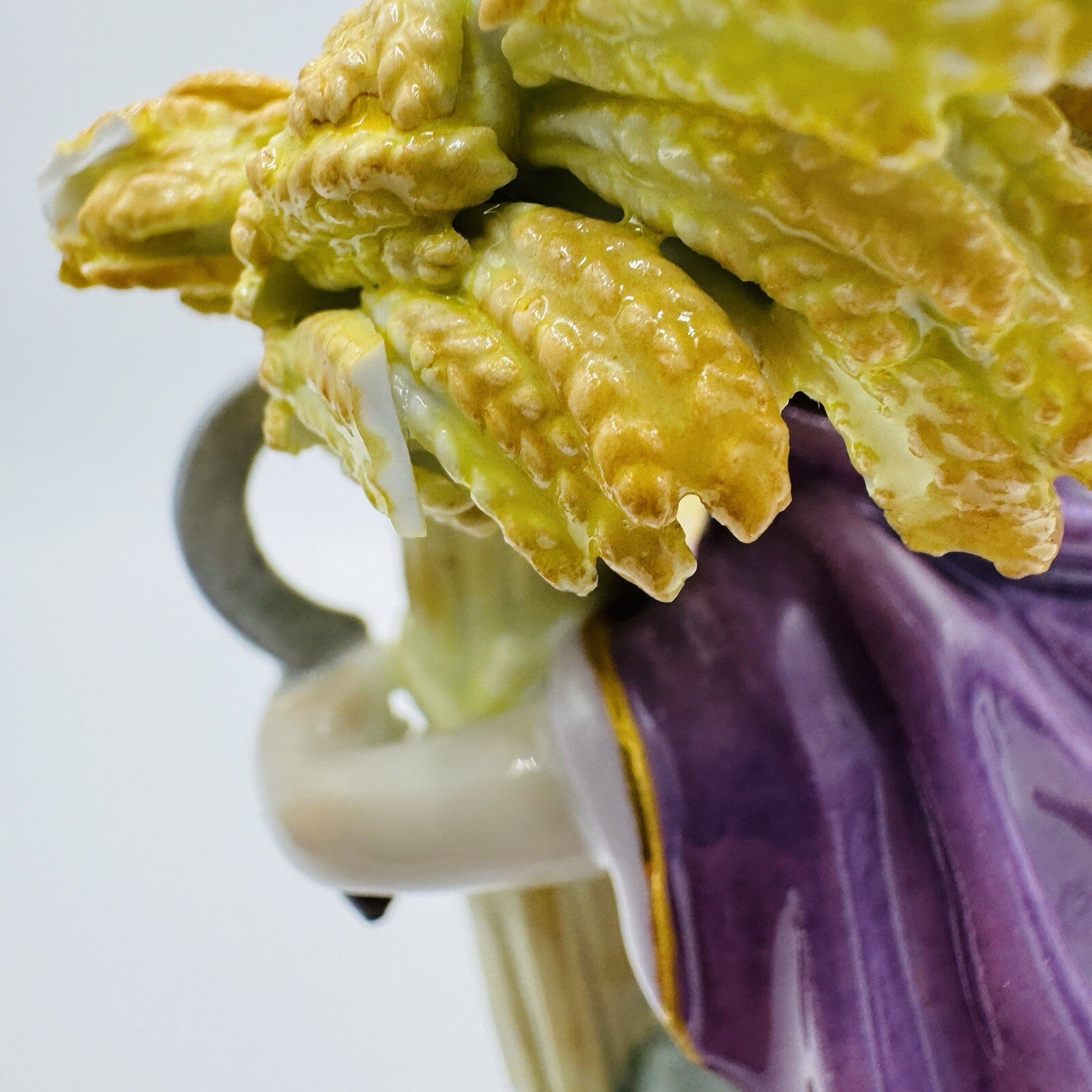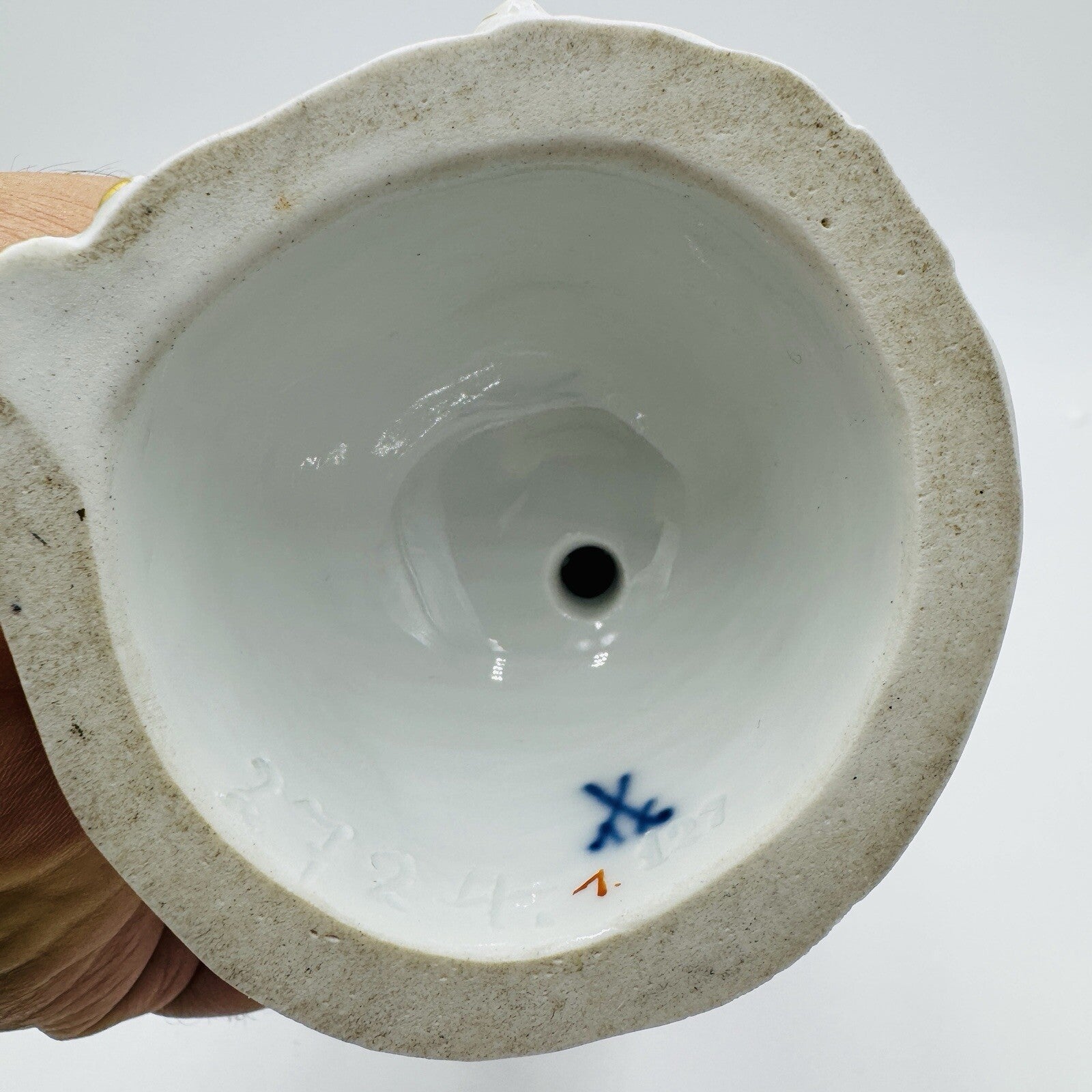Very unique. There are a few small chips as pictured leafs but that doesn’t take away the beauty and uniqueness of this special pierce by Meissen.
