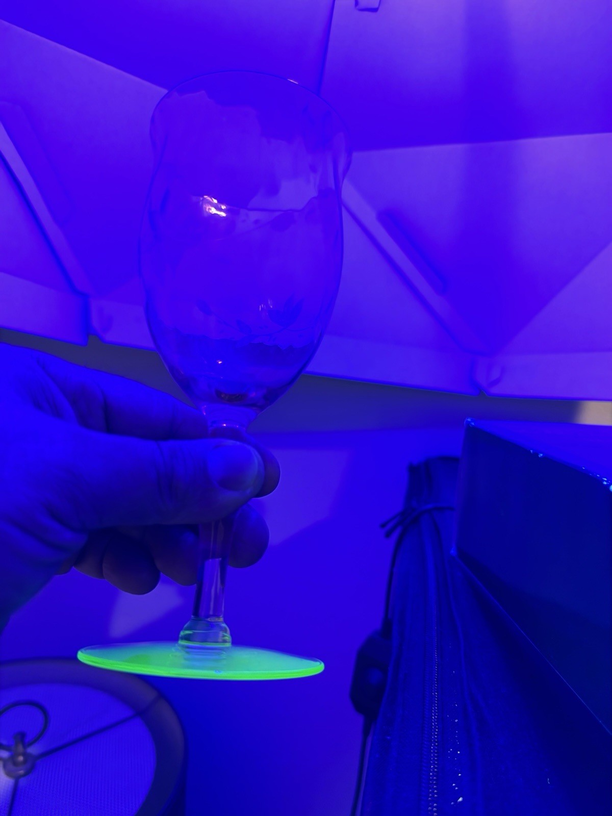 1930 Art Glass Uranium Weston Watermelon Etched Stemmed Wine Glasses 4pcs
