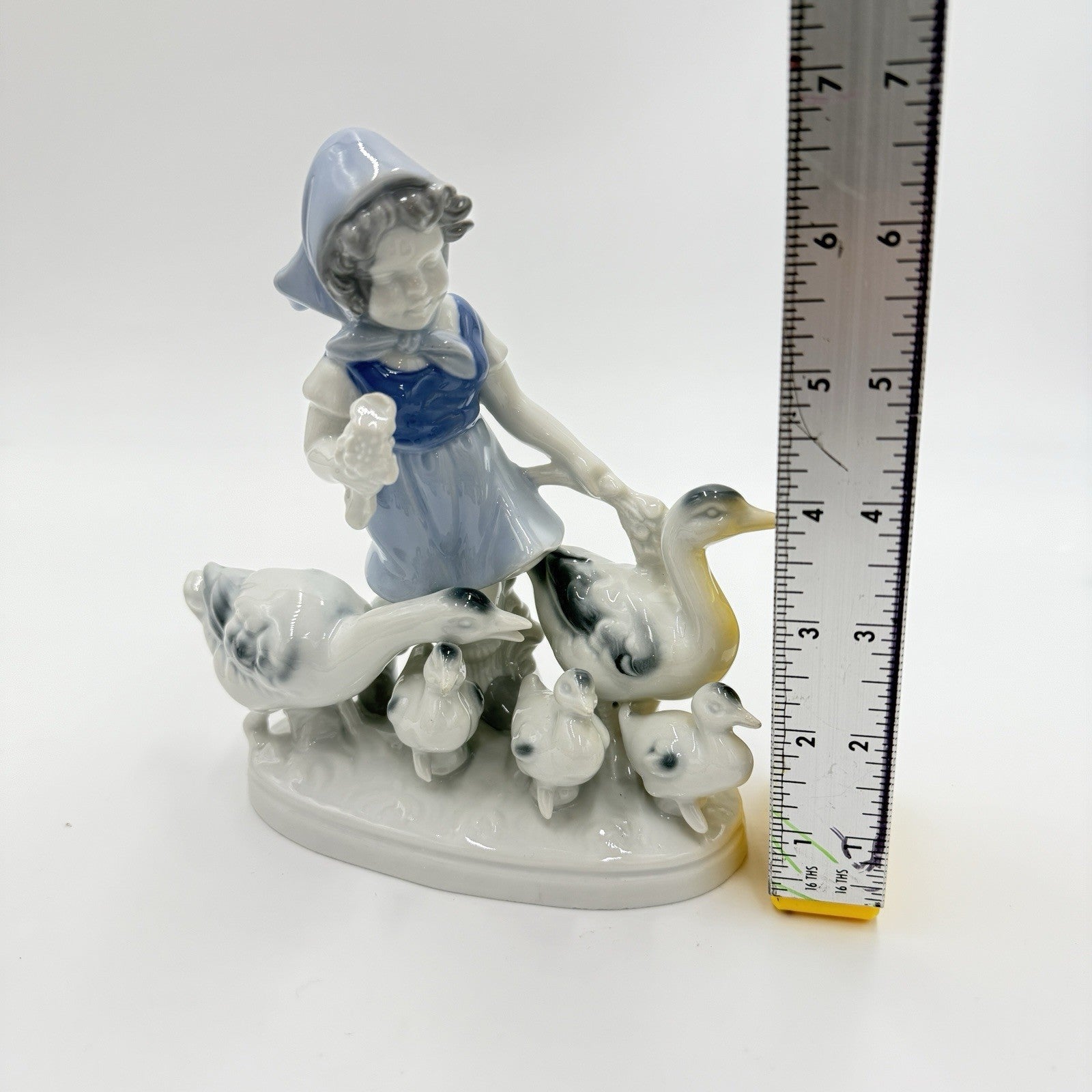 1940 Gerold Porzellan Bavaria Western Germany Figurine Girl W/ Geese Ducks