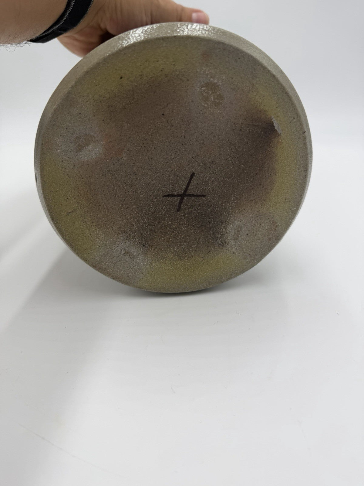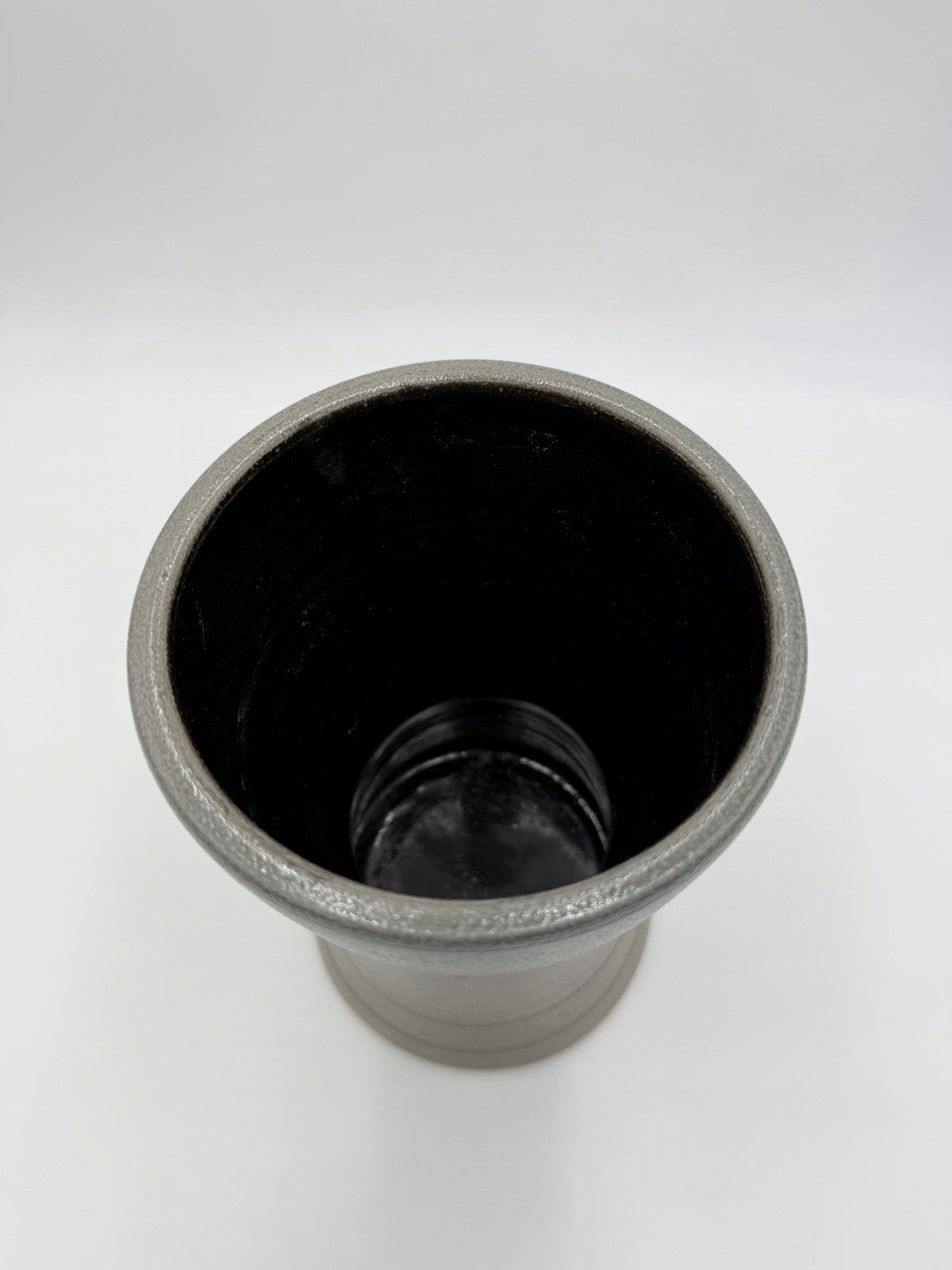 1995 Rowe Pottery Works Stoneware Blue Flowers Design Salt Glaze Flower Vase 9”