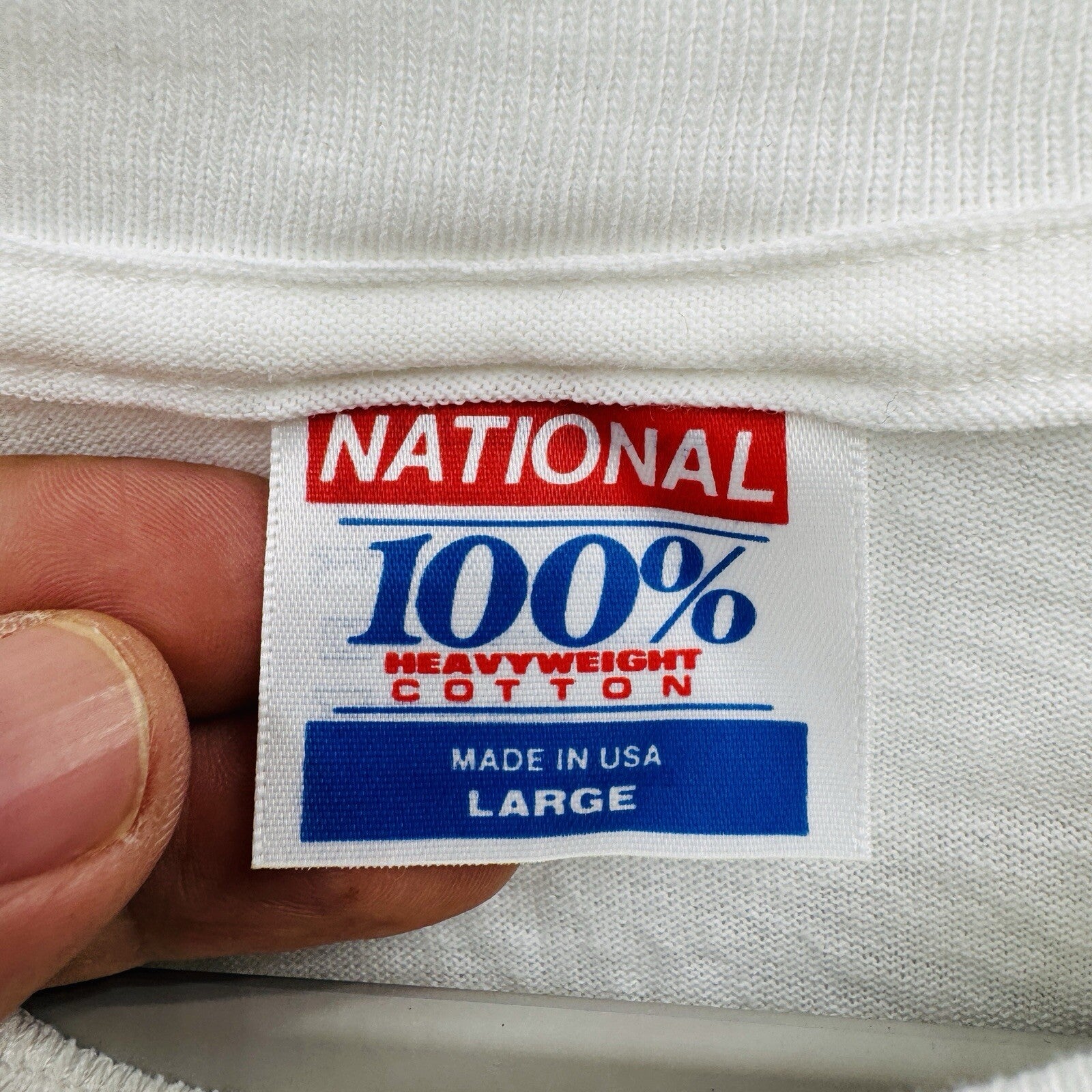 The shirt is a vintage piece from the 1990s and is made in the United States. The shirt's brand is National and it is a regular fit for men. The shirt is perfect for anyone who loves 7 UP and wants to show off their love for the iconic soda bottle.