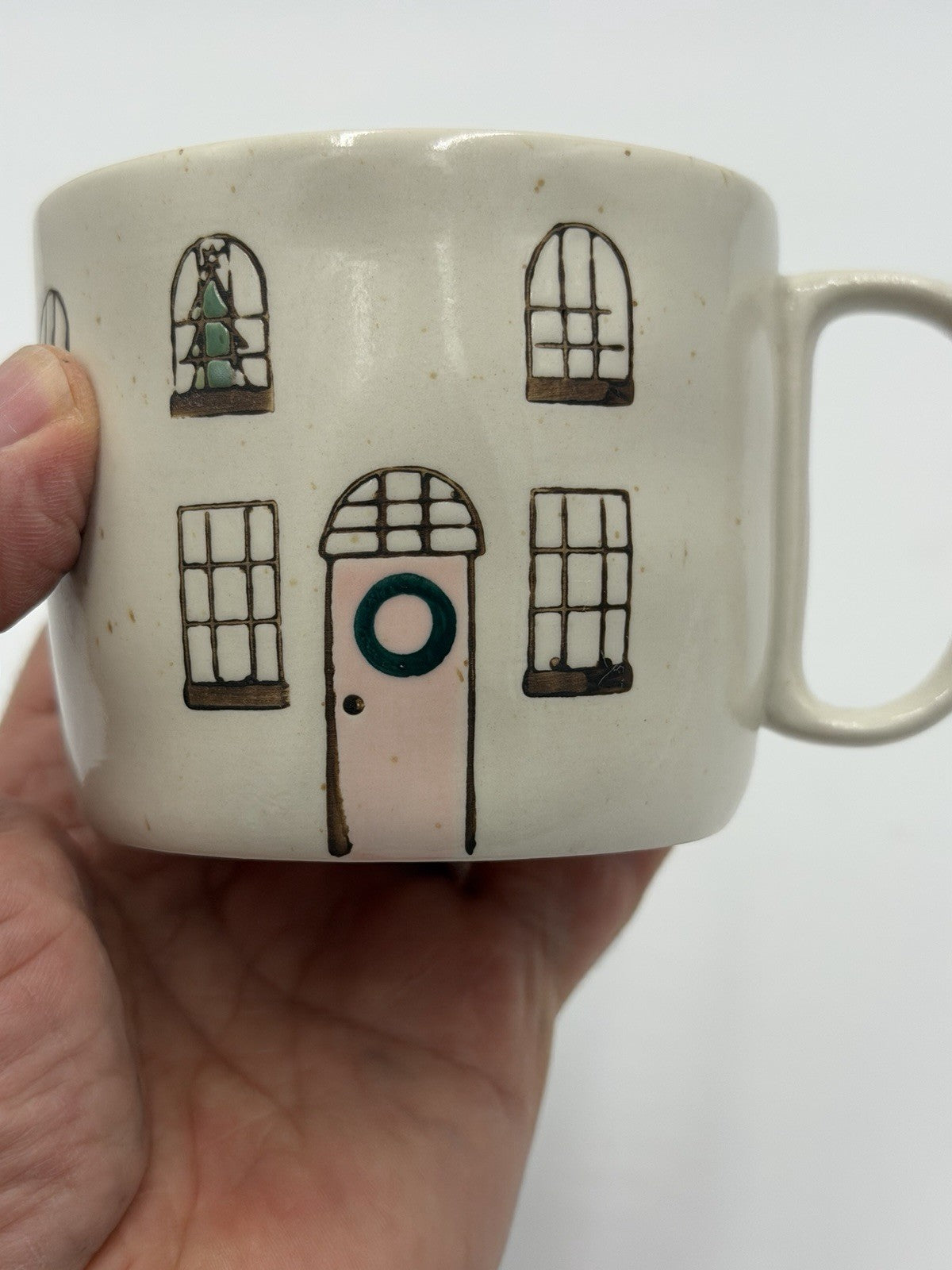 Anthropologie Cozy Home Red Village Rooftop Lid Christmas Coffee Tea Mug Rare