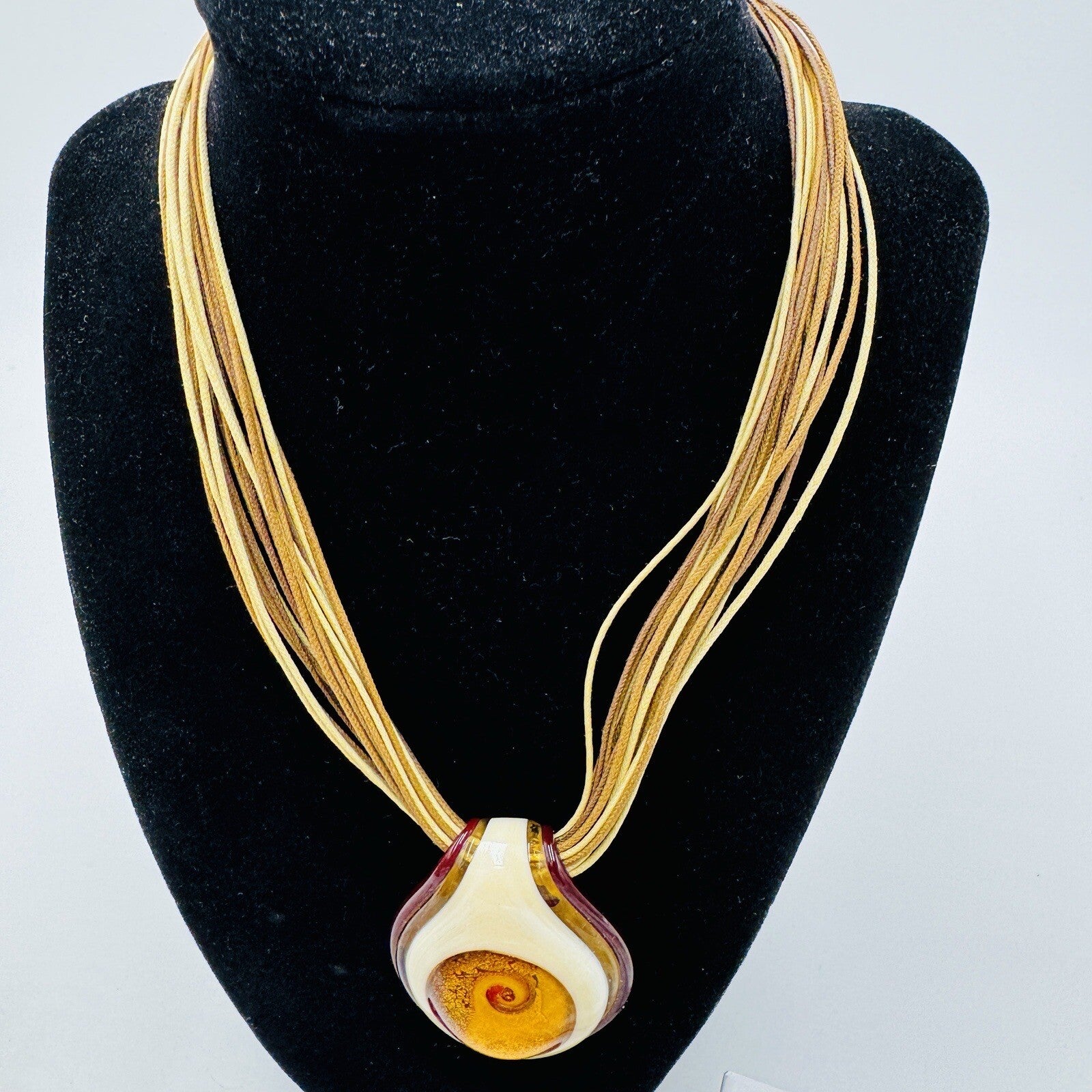 Antica Murrina Venetian Art Glass Amber Swirl Multi Straps Necklace Italy
