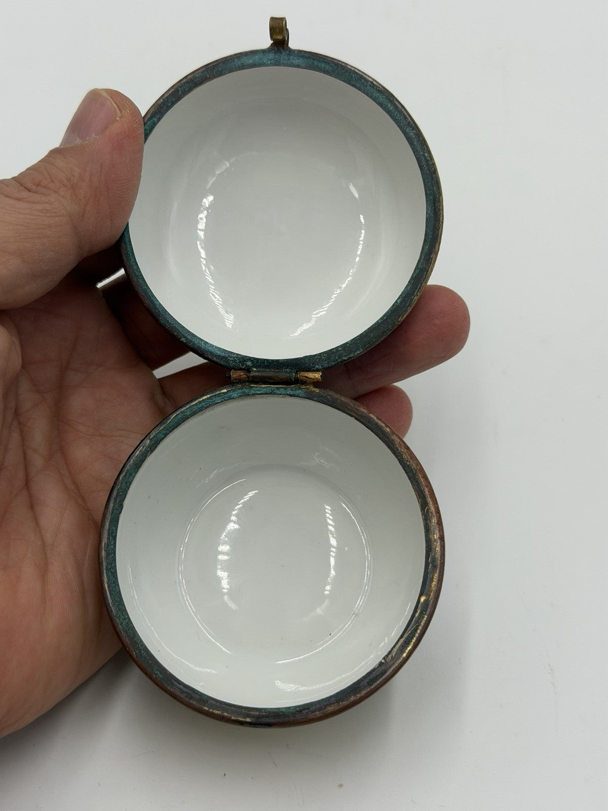 Antique French Victorian porcelain snuff box hand-painted romantic scene