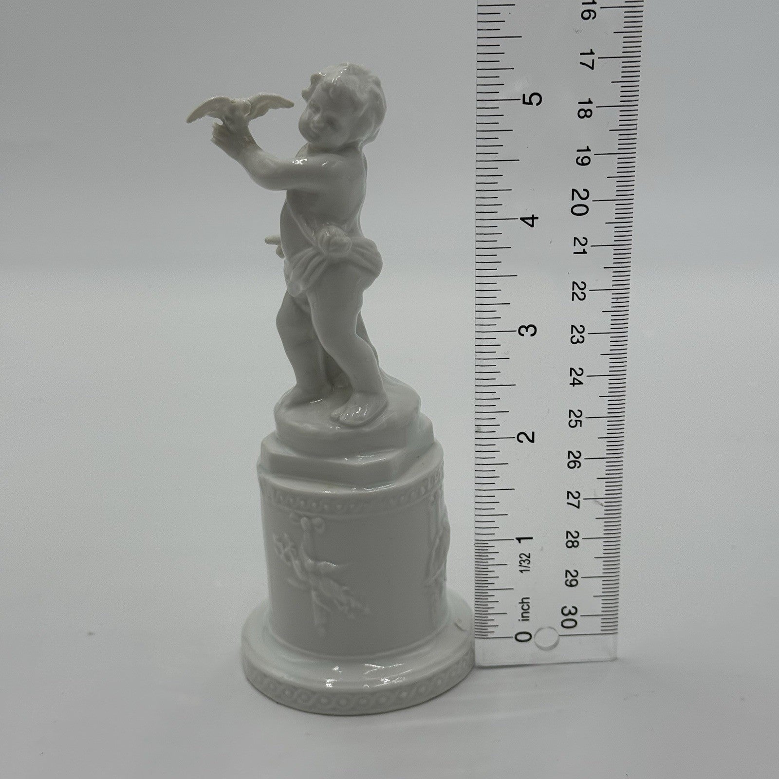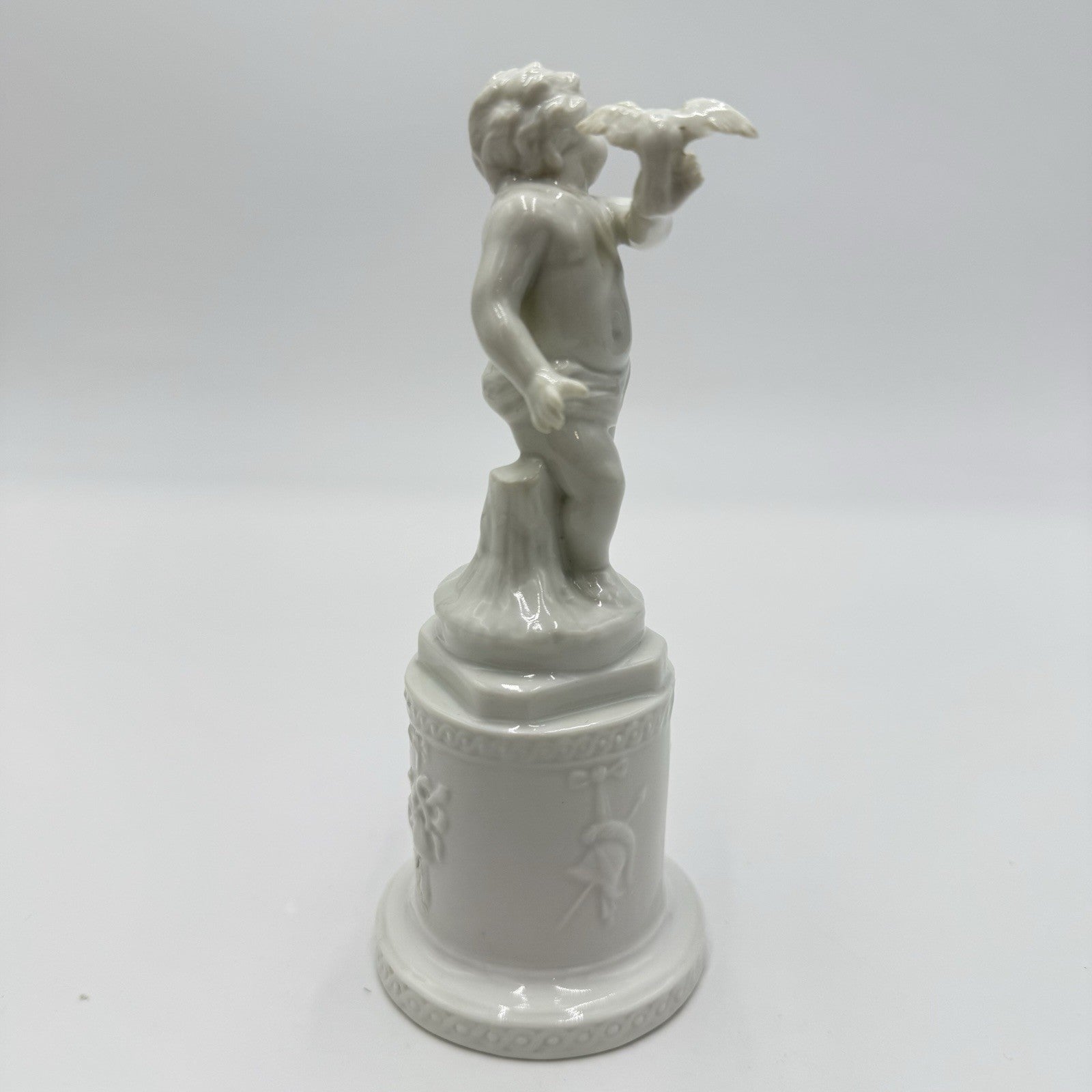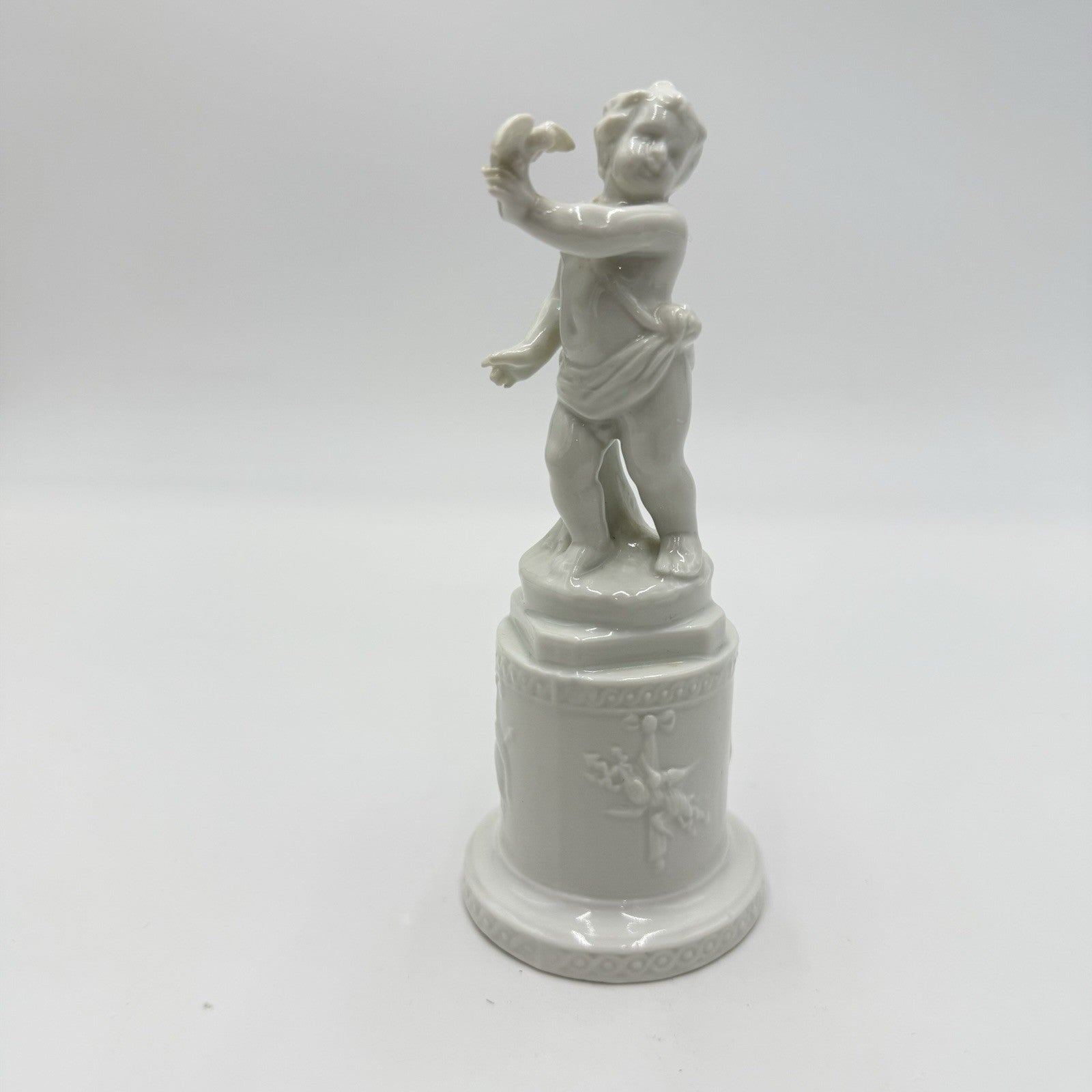 Antique Ginori 1735 Porcelain Figure Putti Holding Dove 5.5” White Glossy Italy
