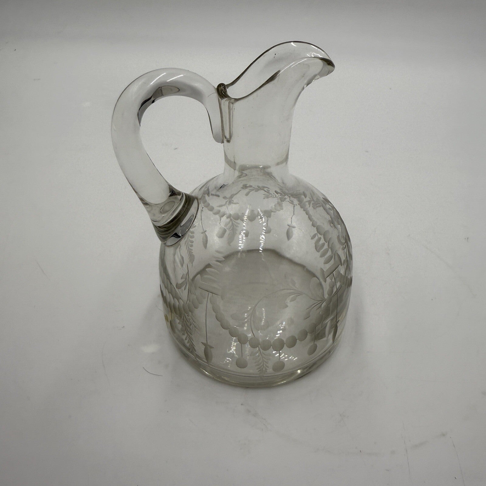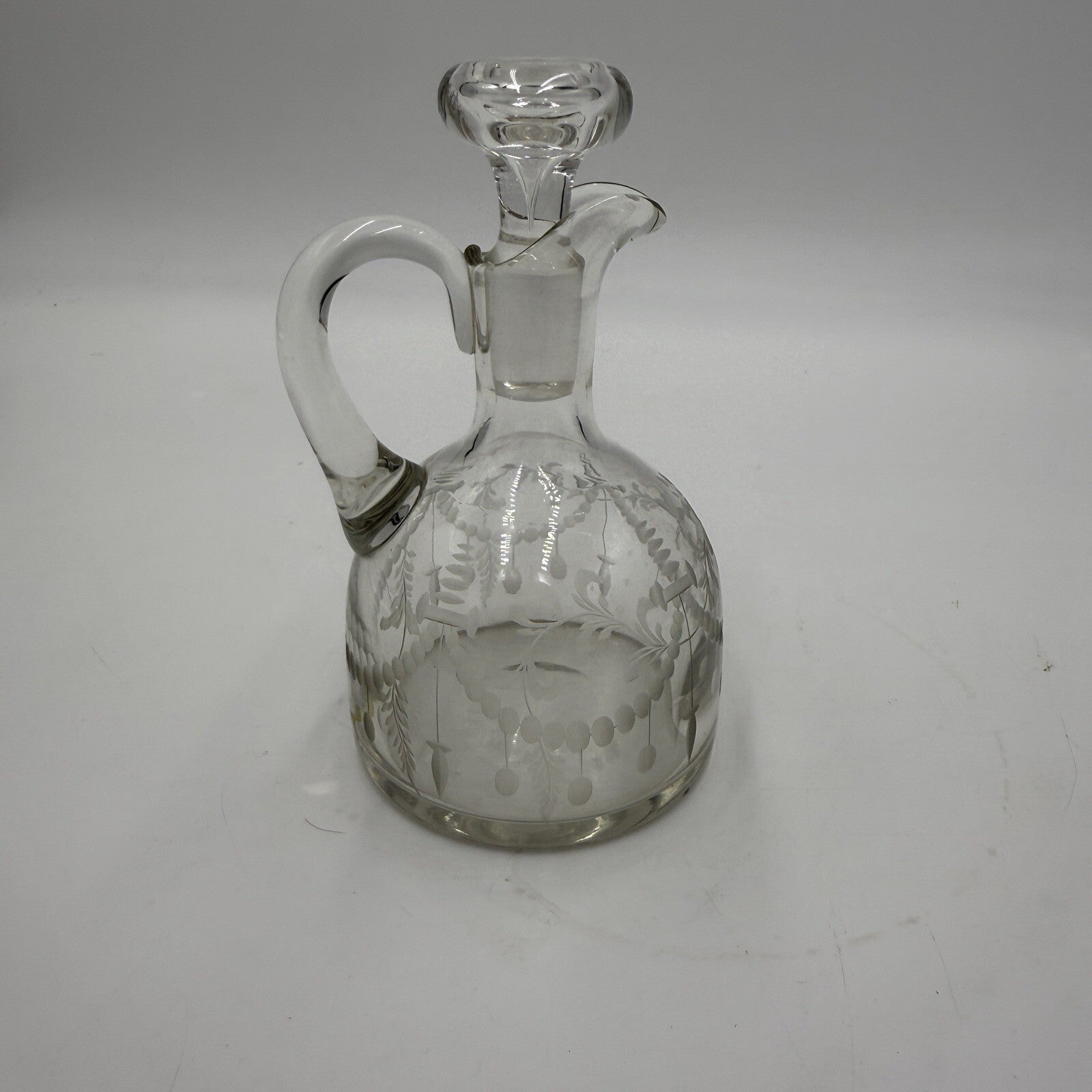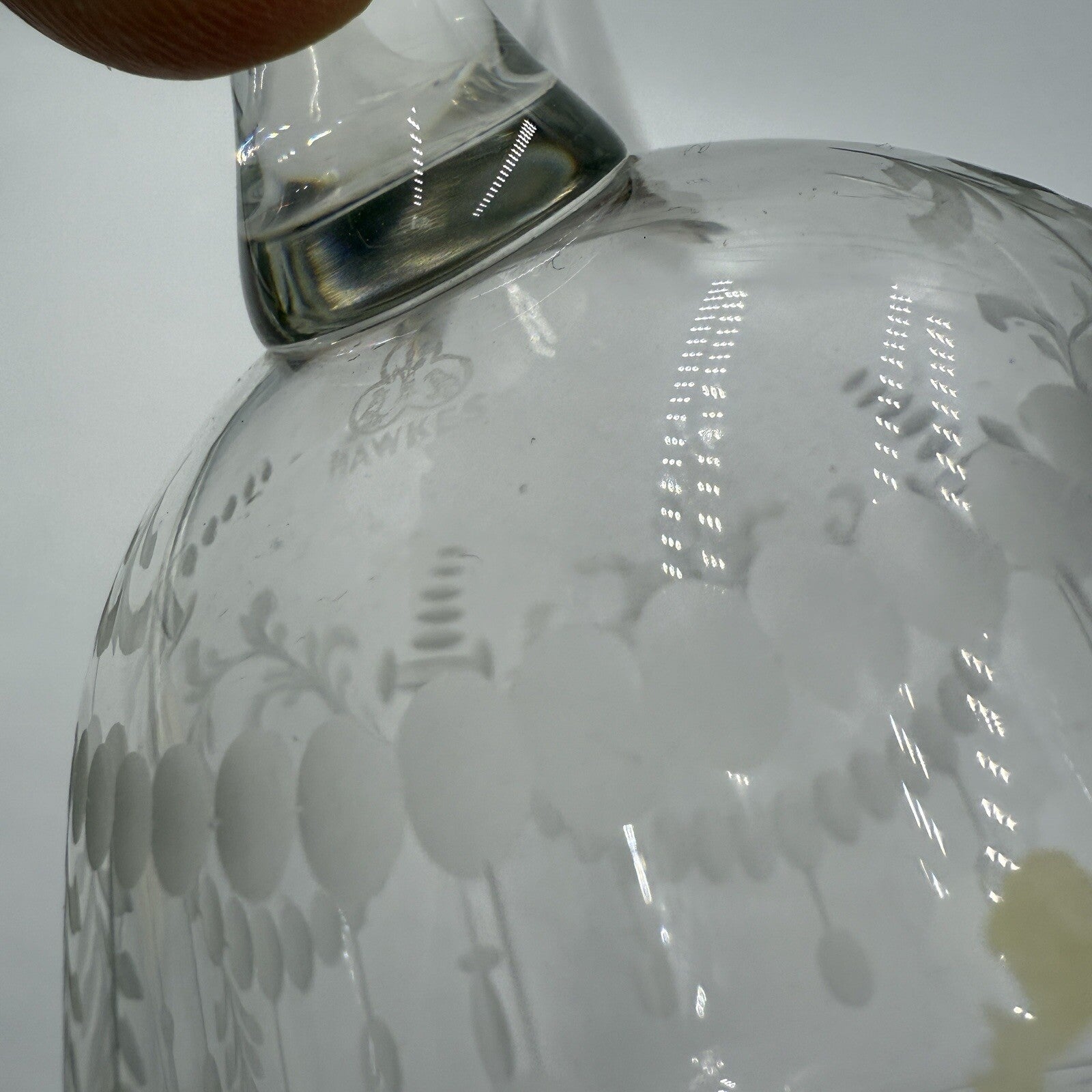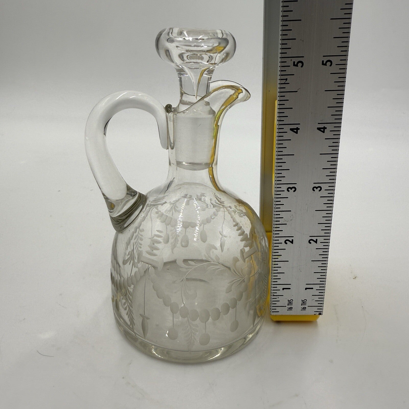 Antique Hawkes Etched Oil & Vinegar pitcher W/ Glass Stopper Rare Signed 5.5in