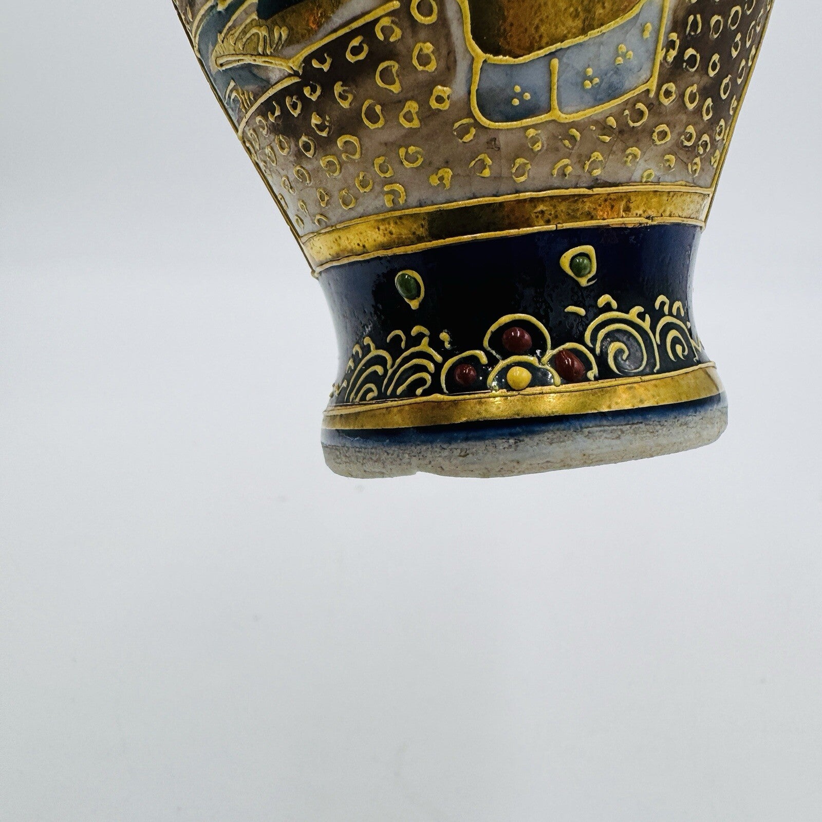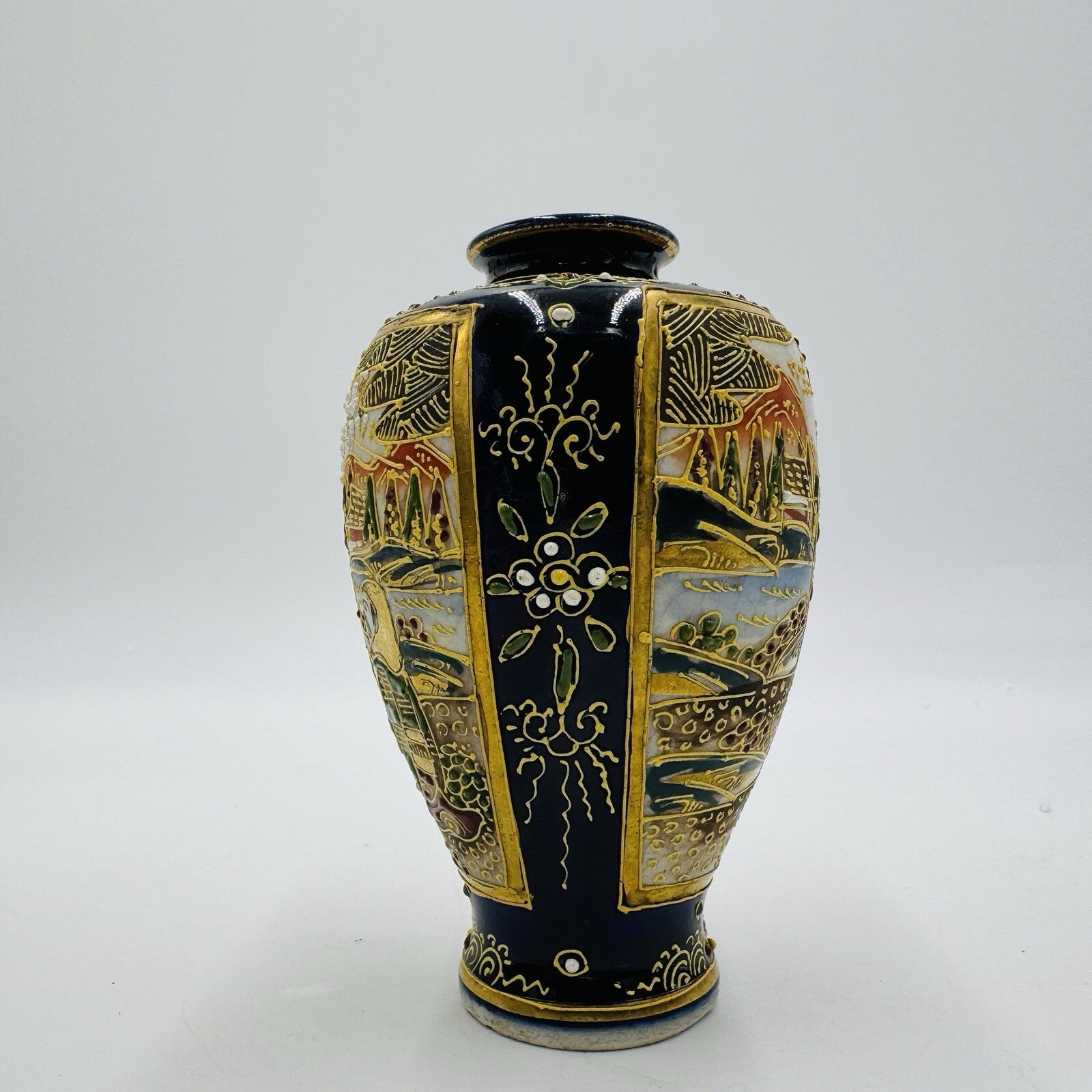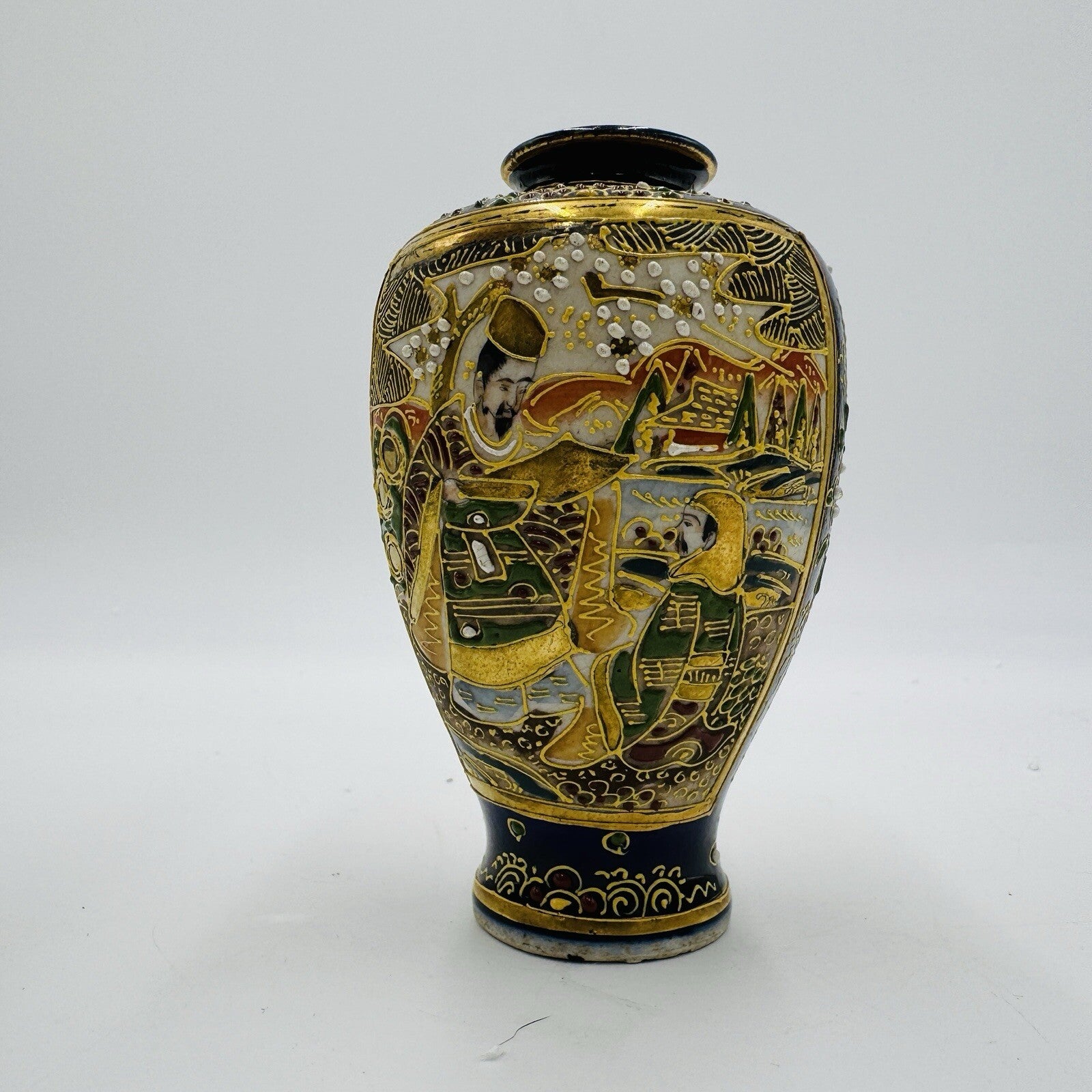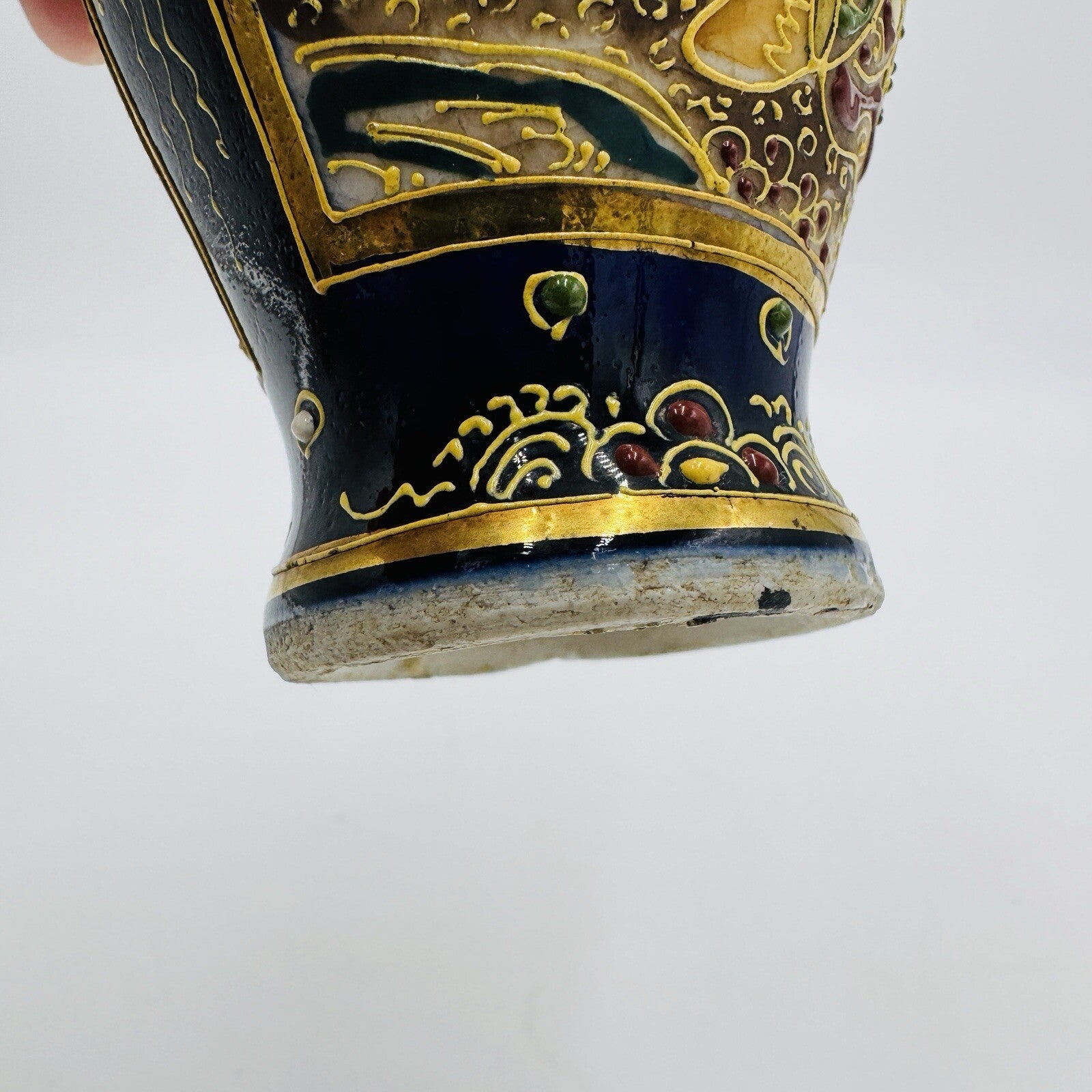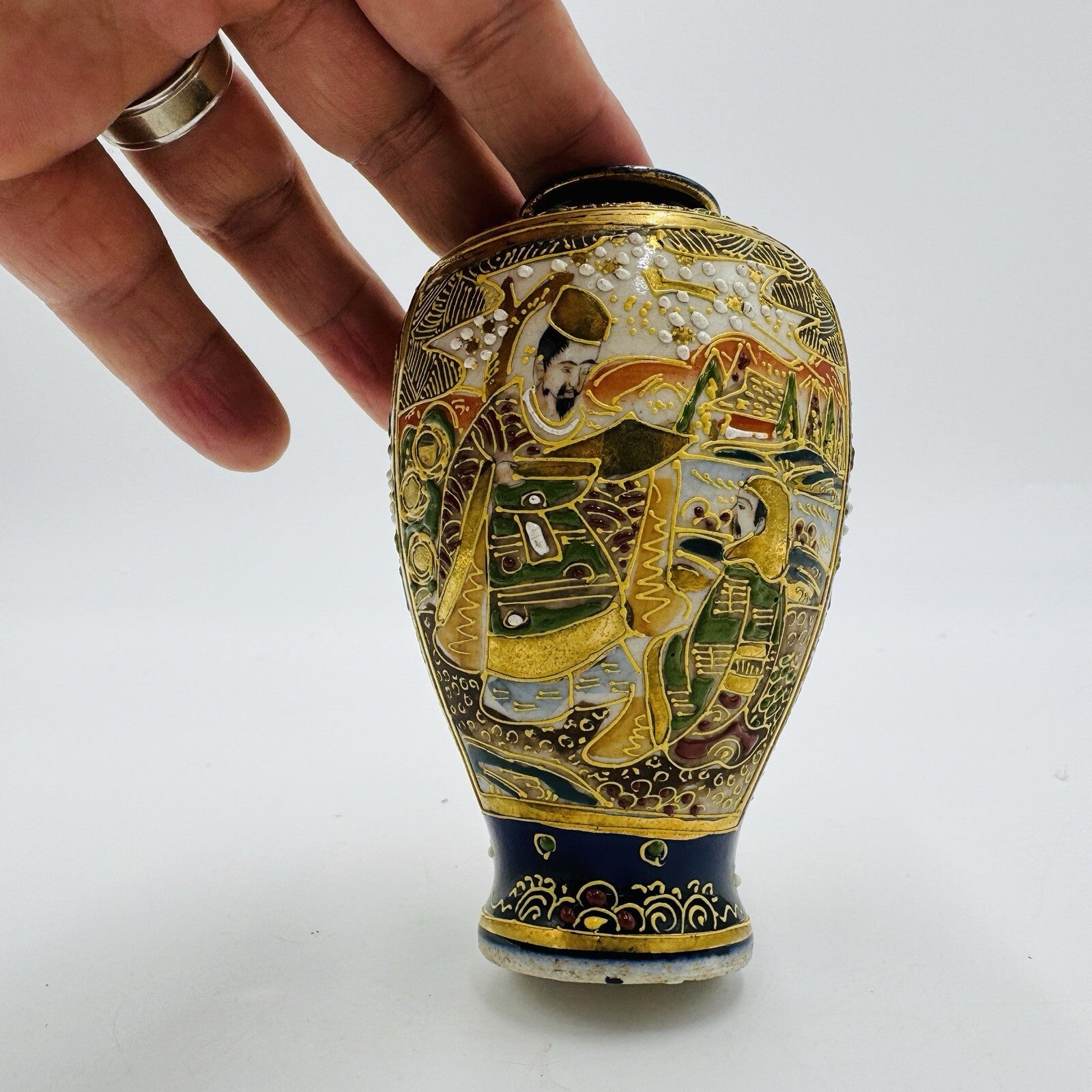 Antique Japanese Satsuma Moriage Mini VASE 5in MEIJI PERIOD KINKOZAN TSUKURU