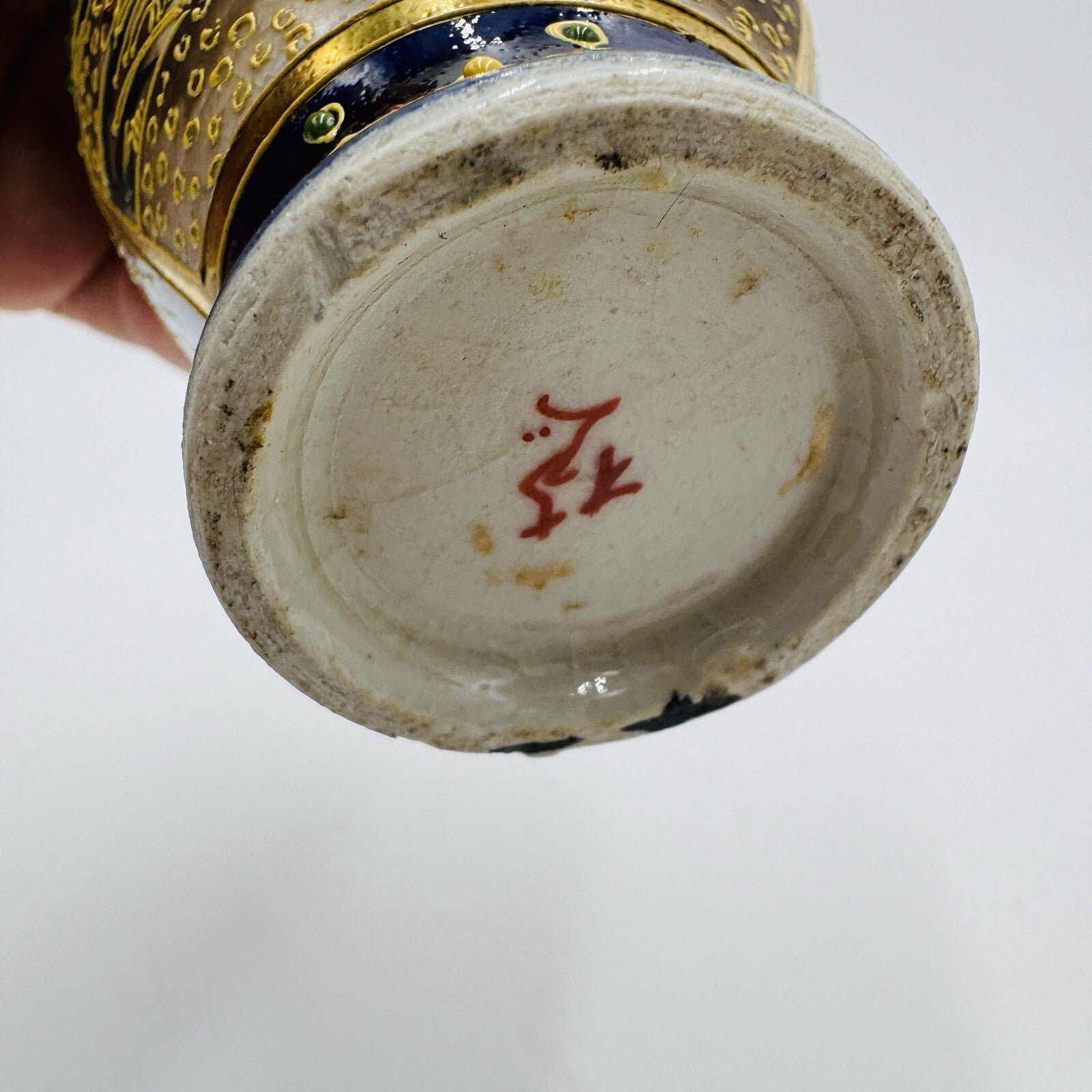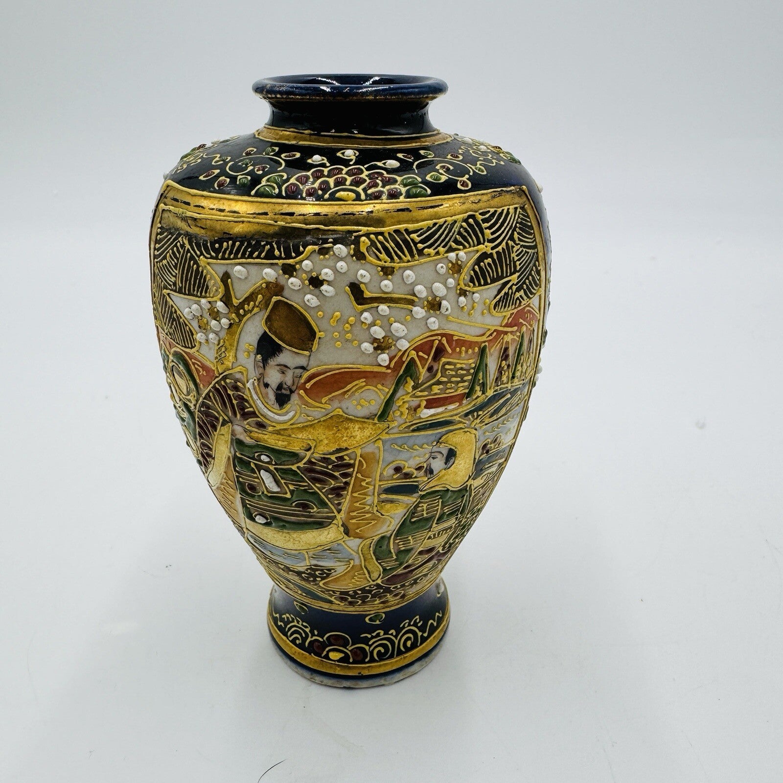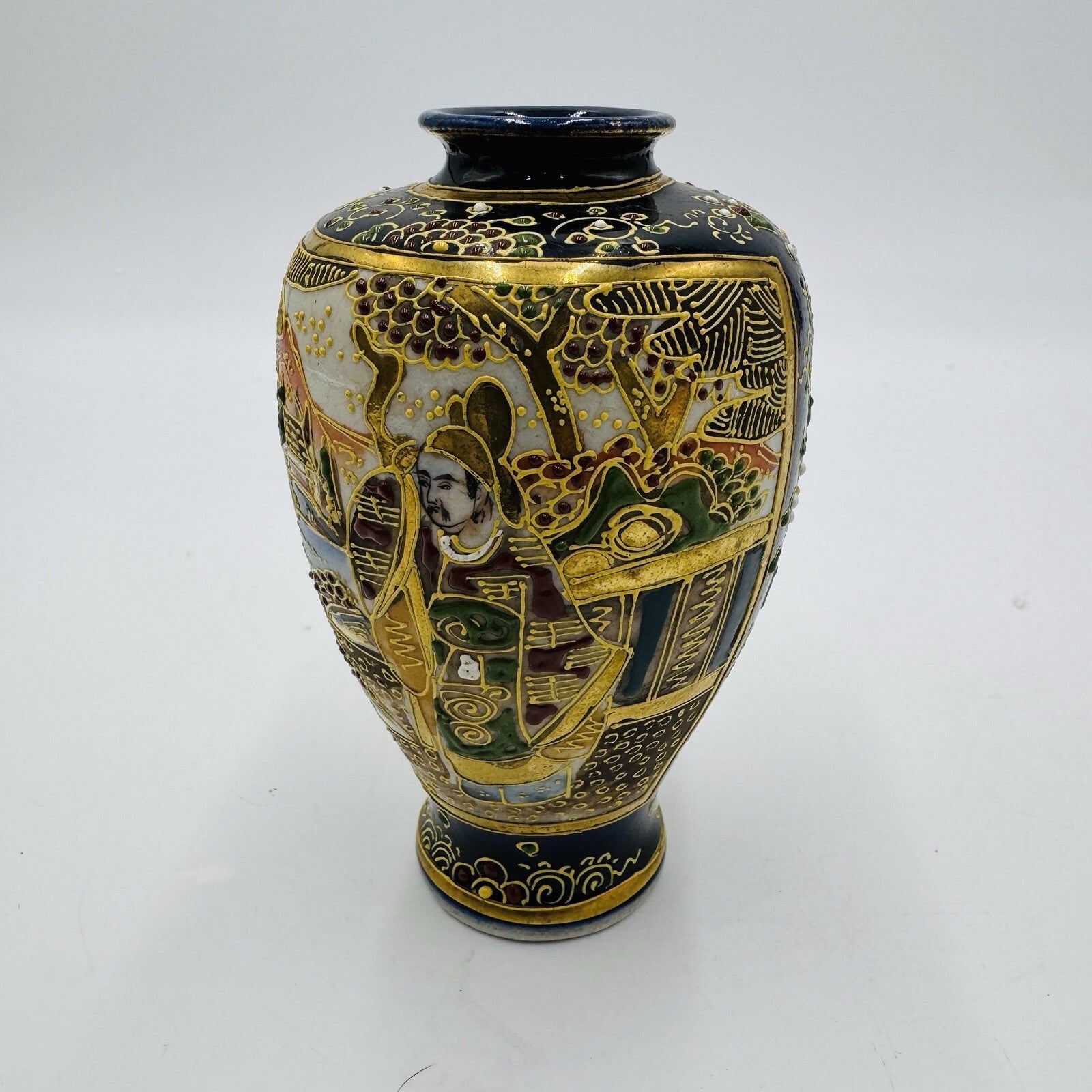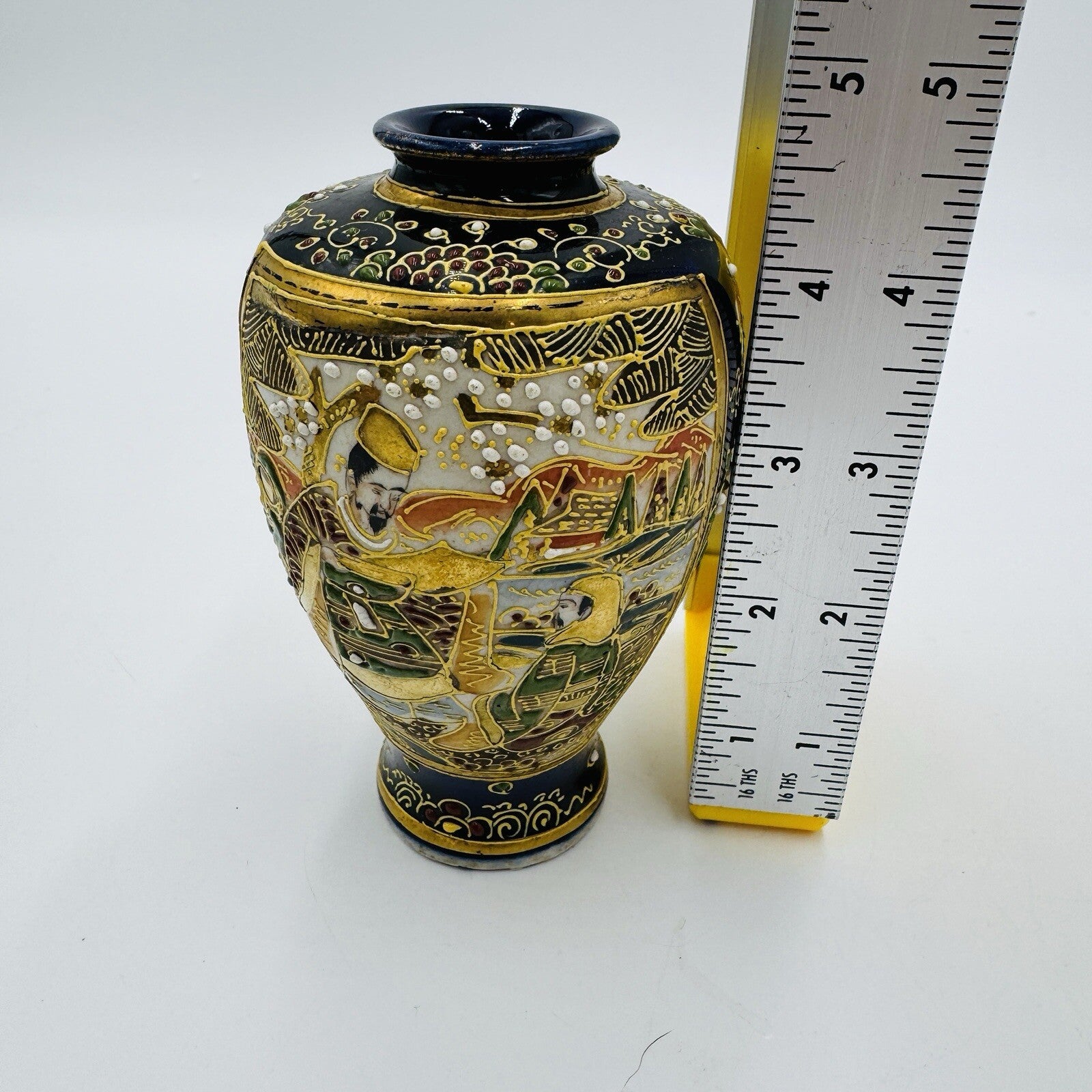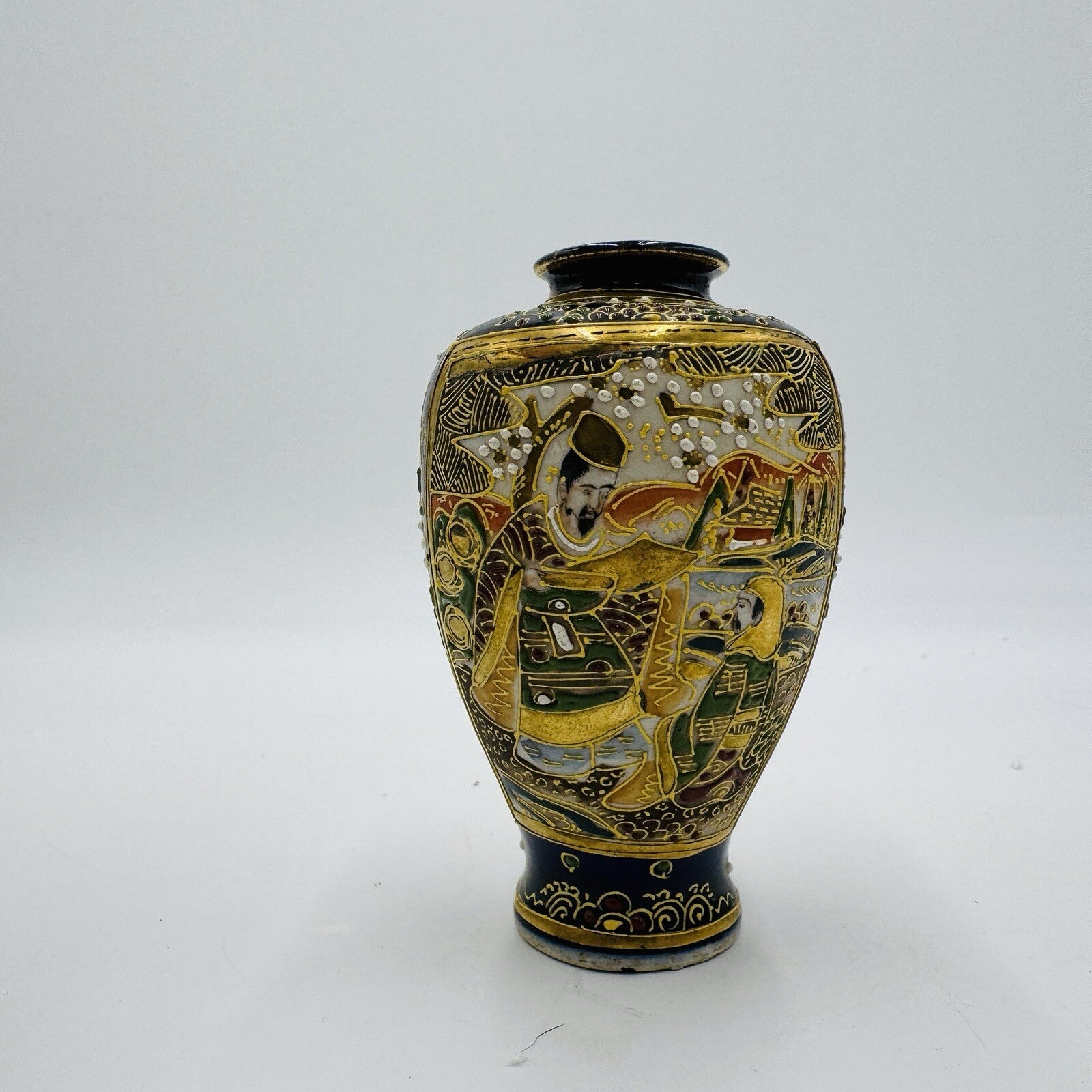 Antique Japanese Satsuma Moriage Mini VASE 5in MEIJI PERIOD KINKOZAN TSUKURU