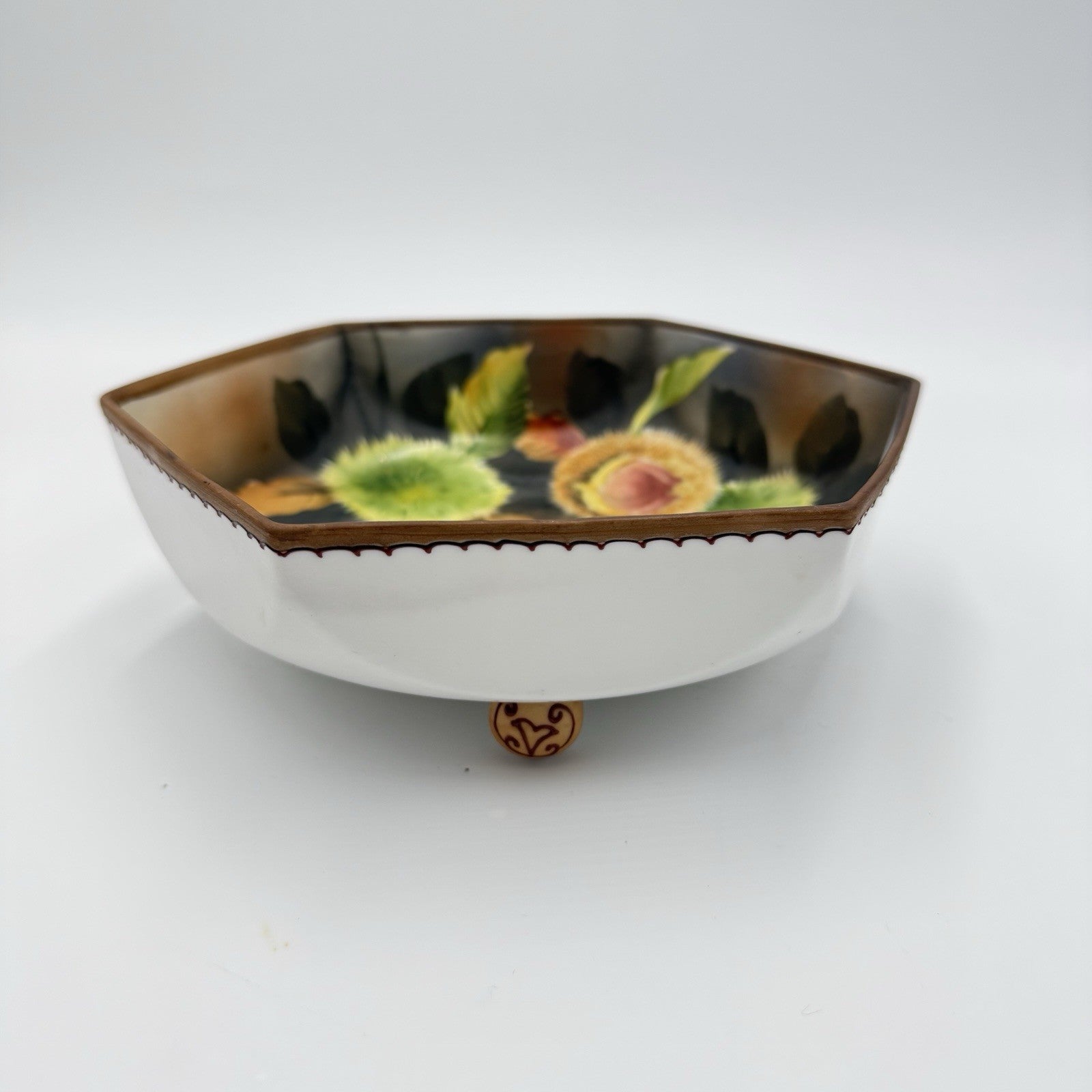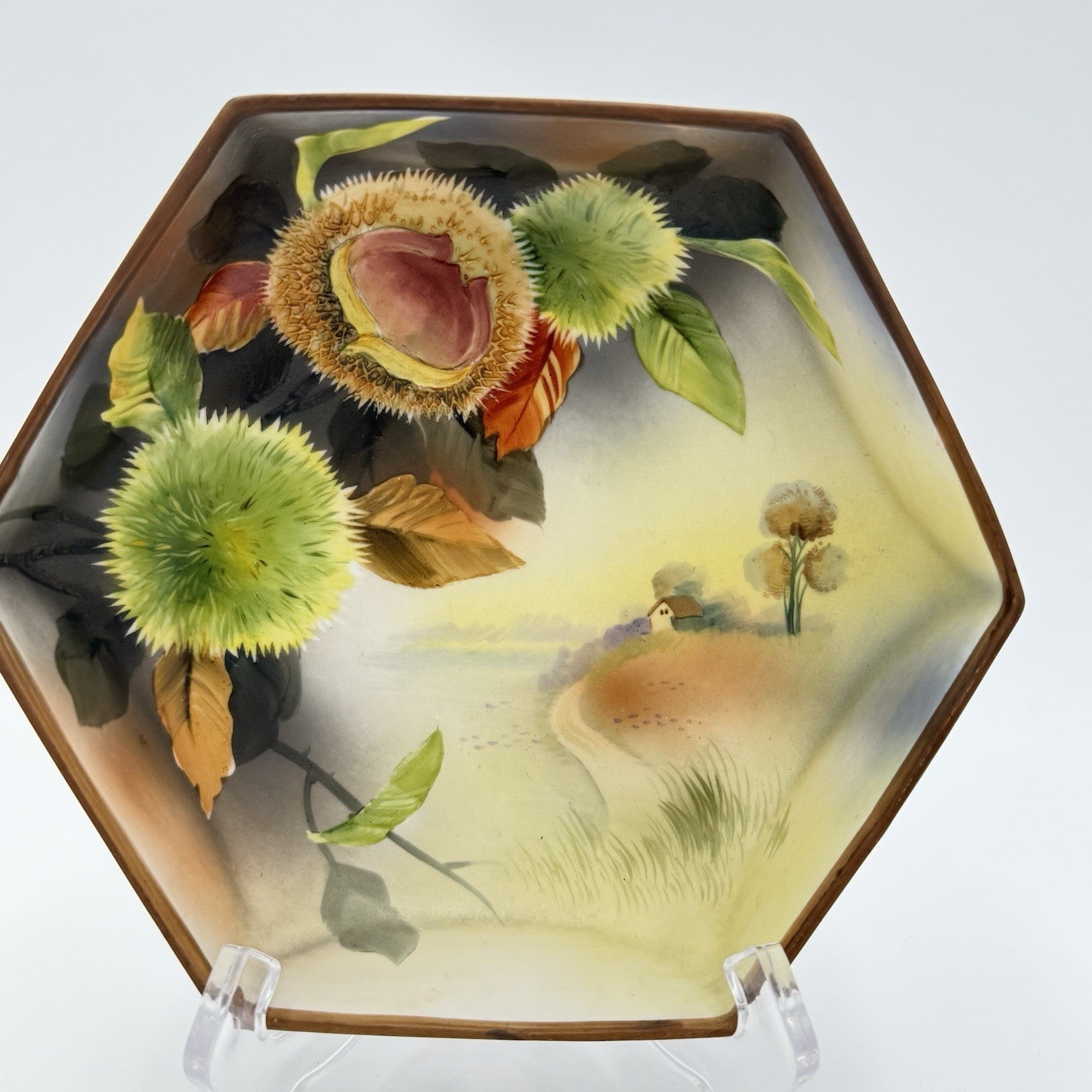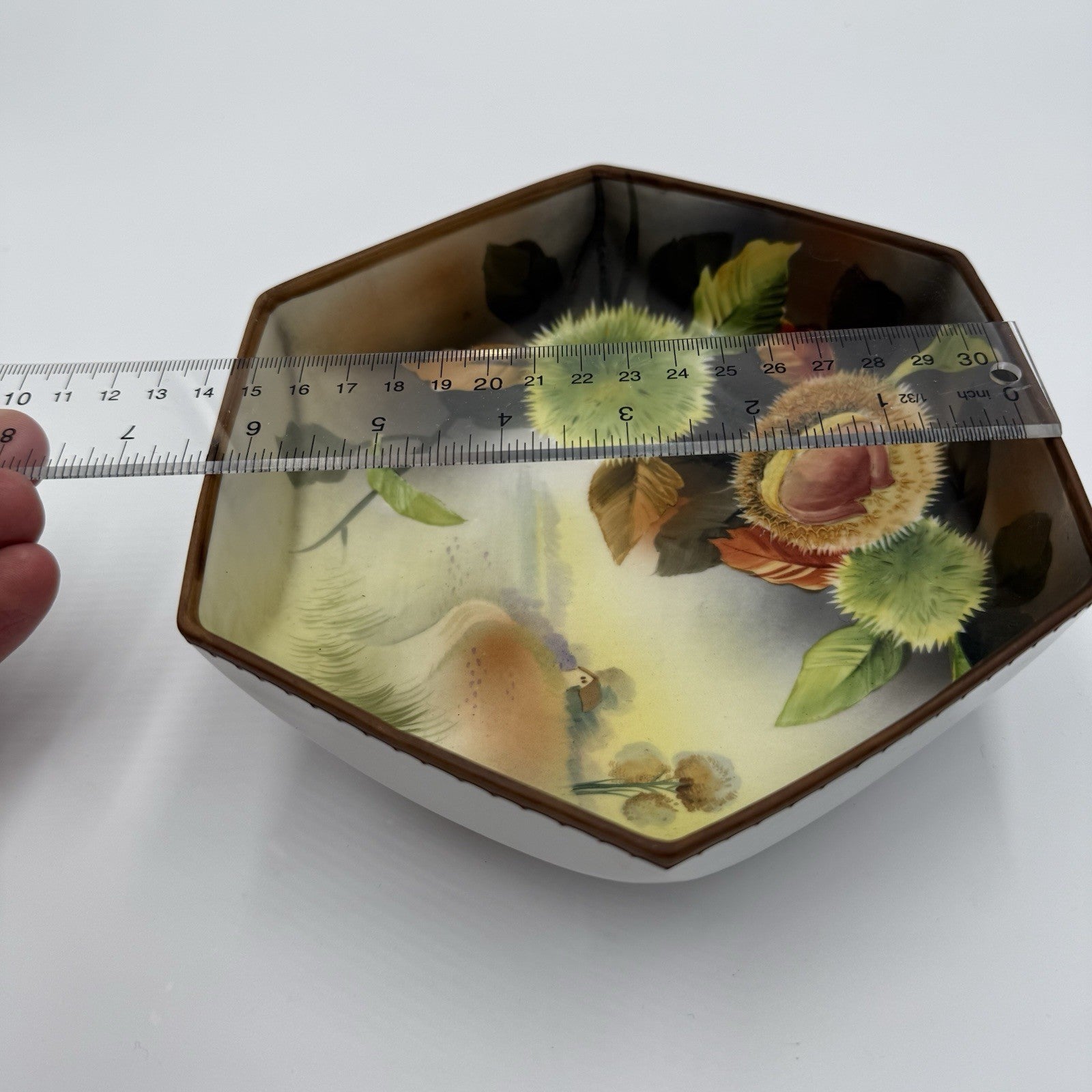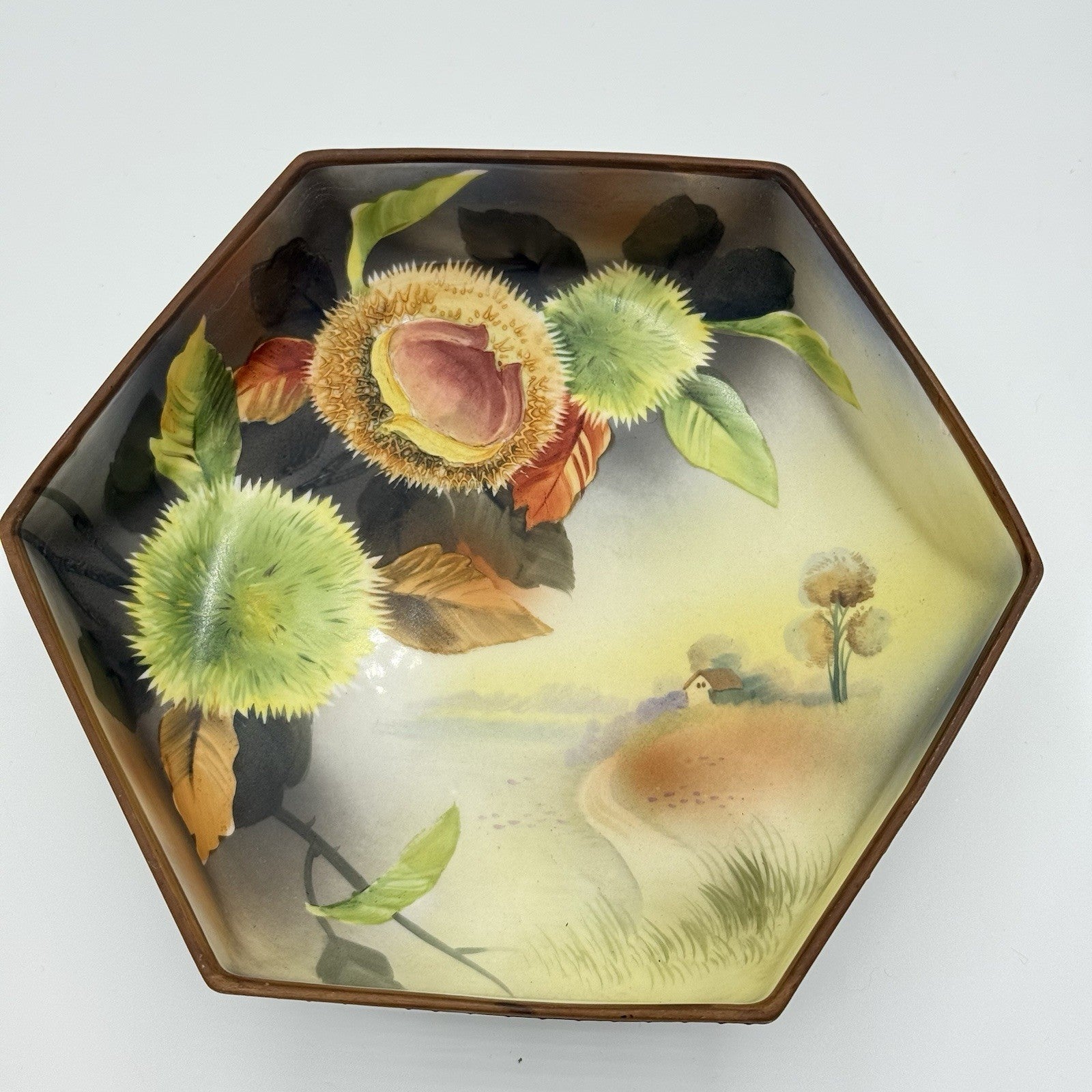 Antique Nippon Morimura Hand Painted Chestnuts Bowl Circa 1911-1922 Hexagonal