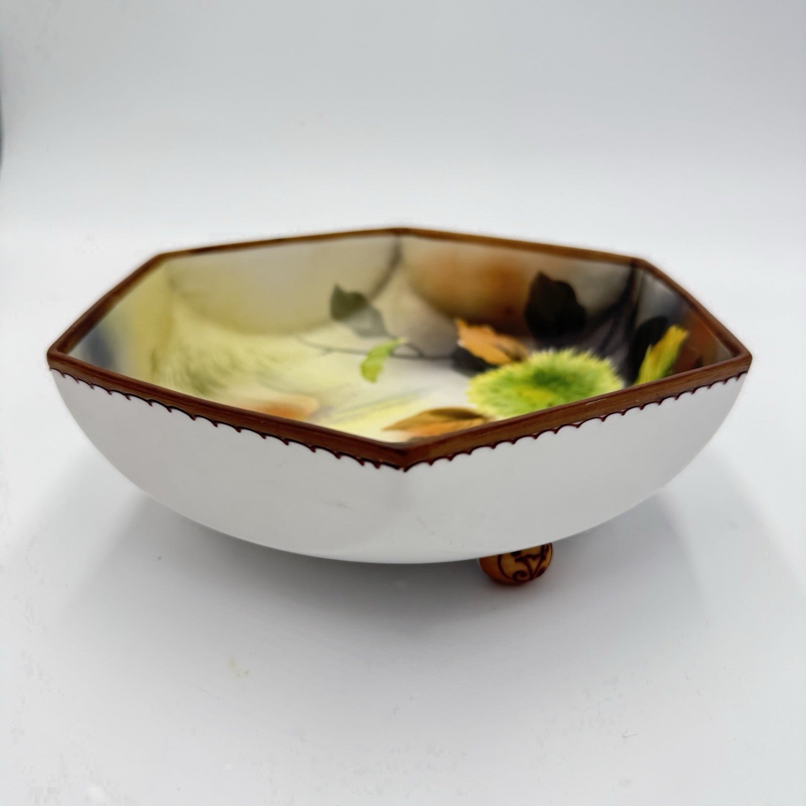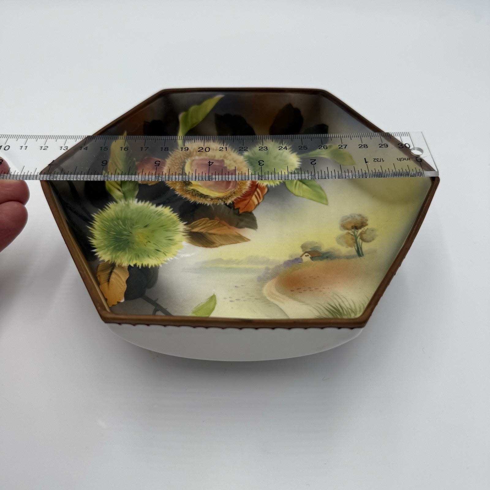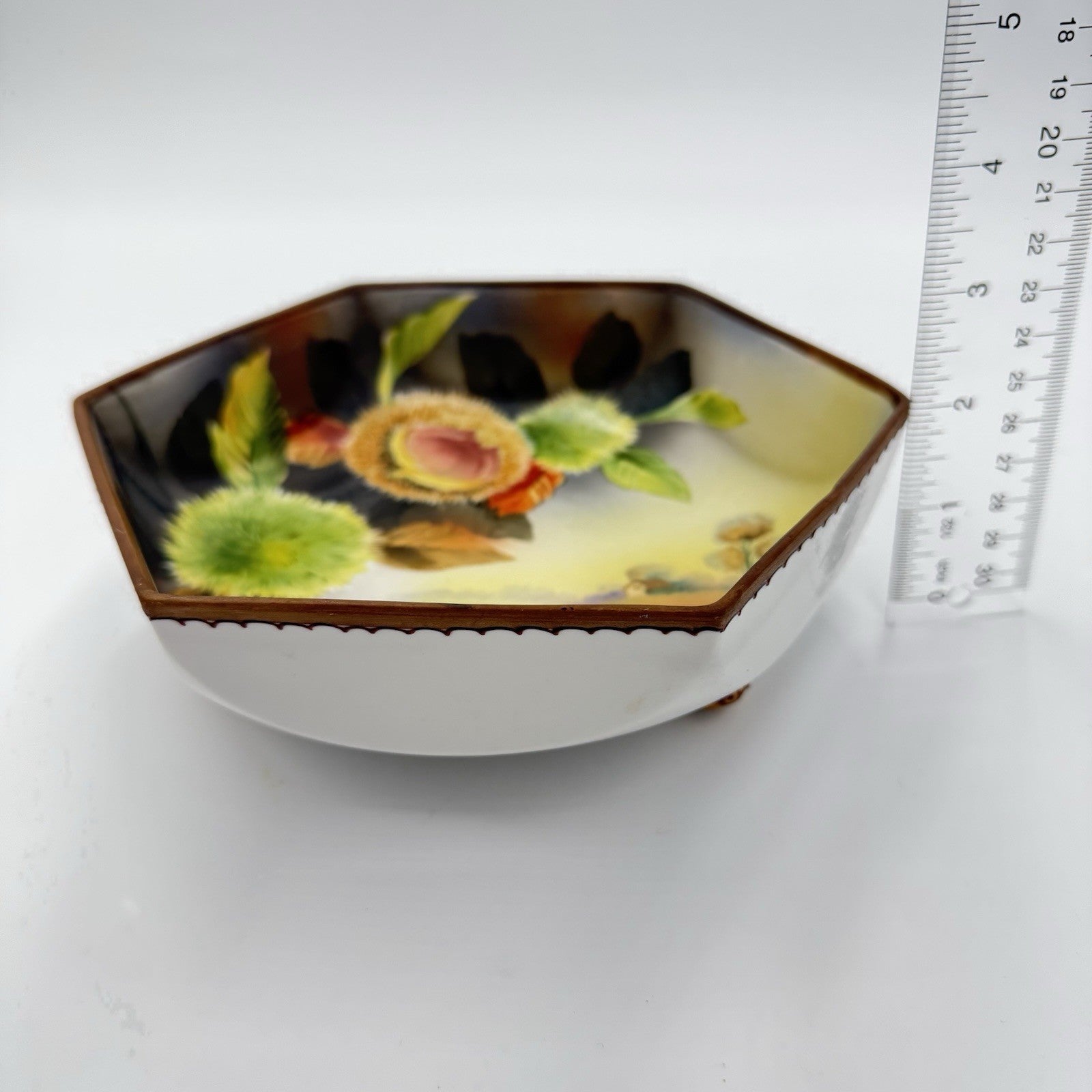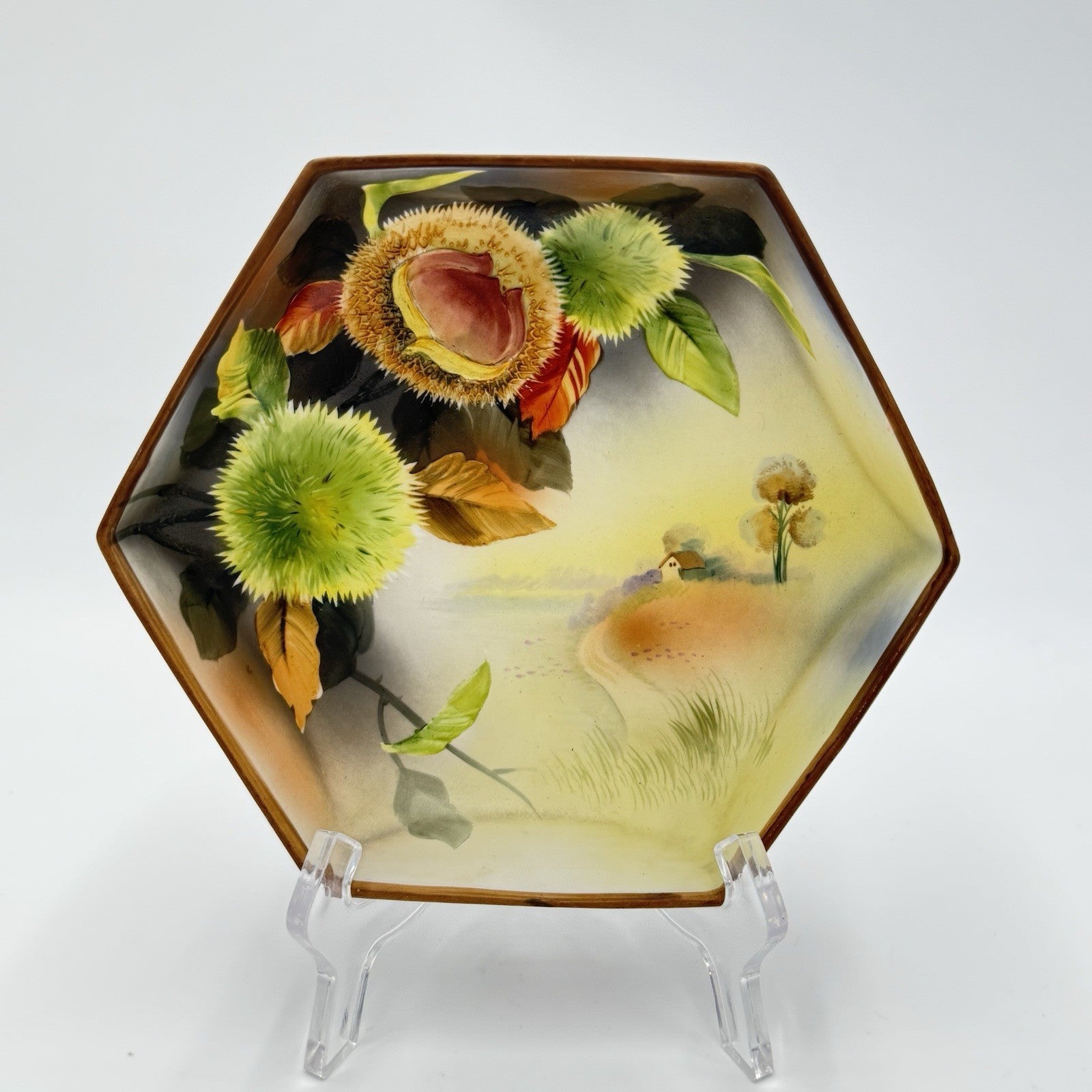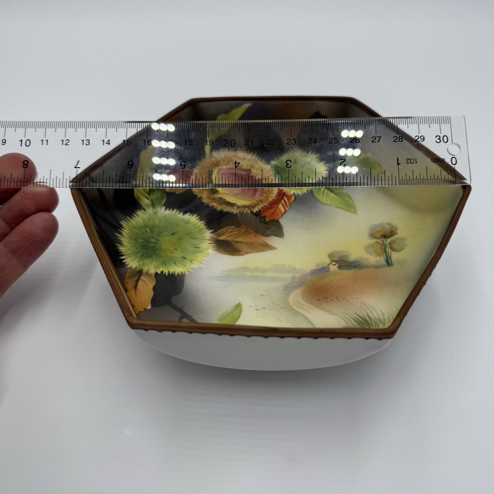 Antique Nippon Morimura Hand Painted Chestnuts Bowl Circa 1911-1922 Hexagonal