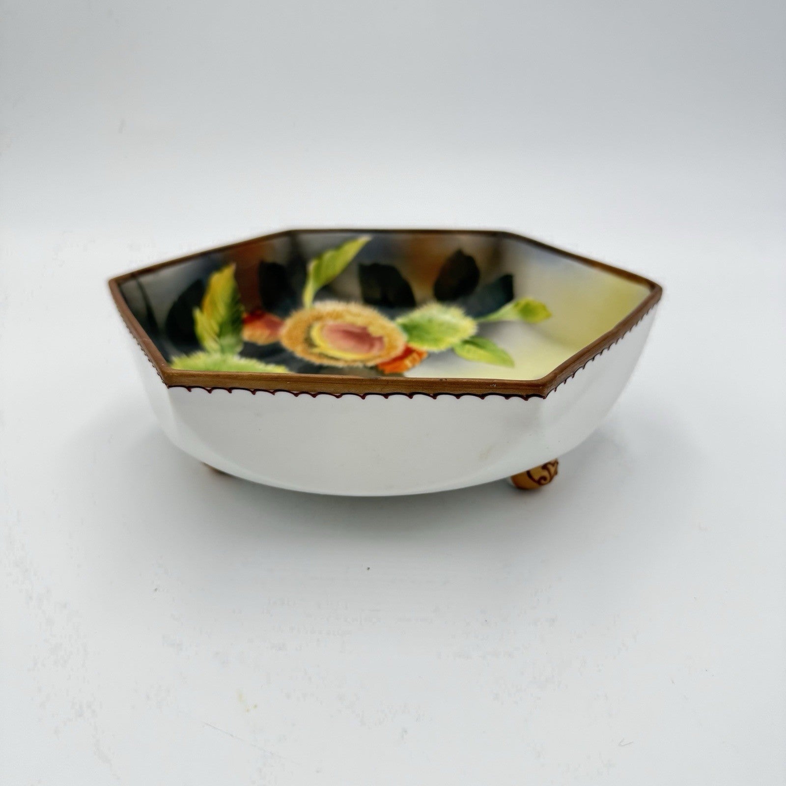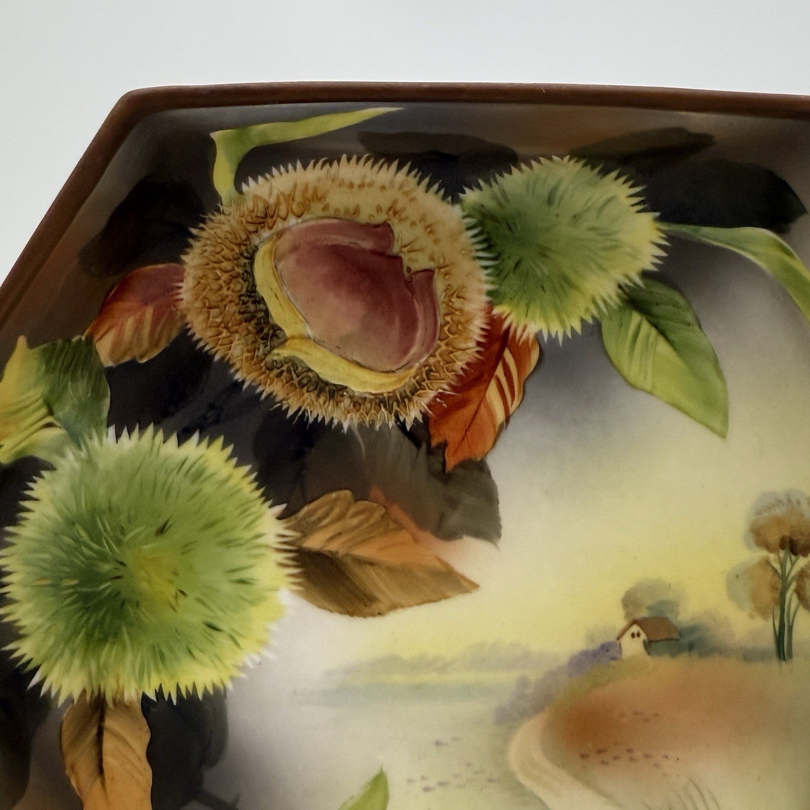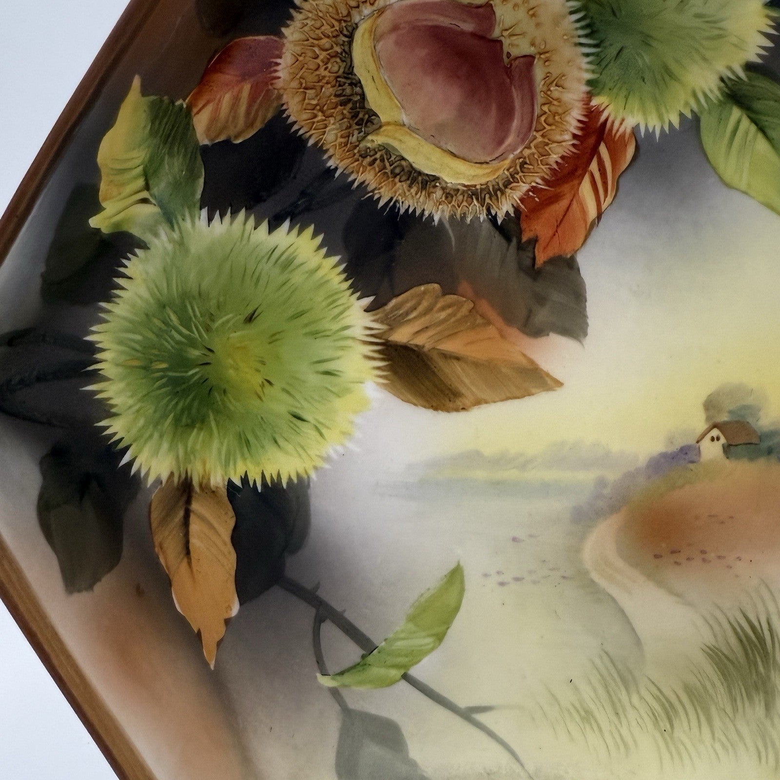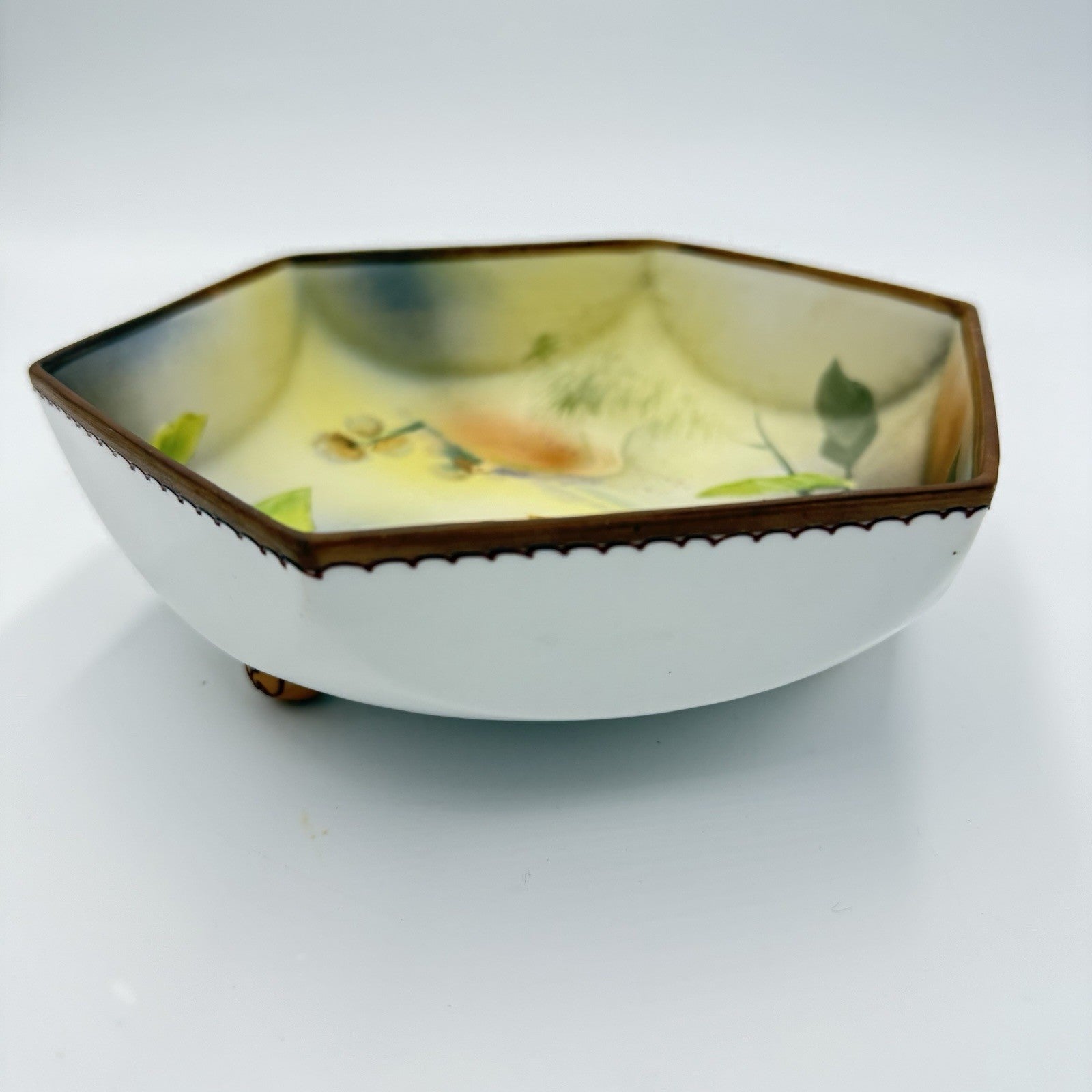 Antique Nippon Morimura Hand Painted Chestnuts Bowl Circa 1911-1922 Hexagonal