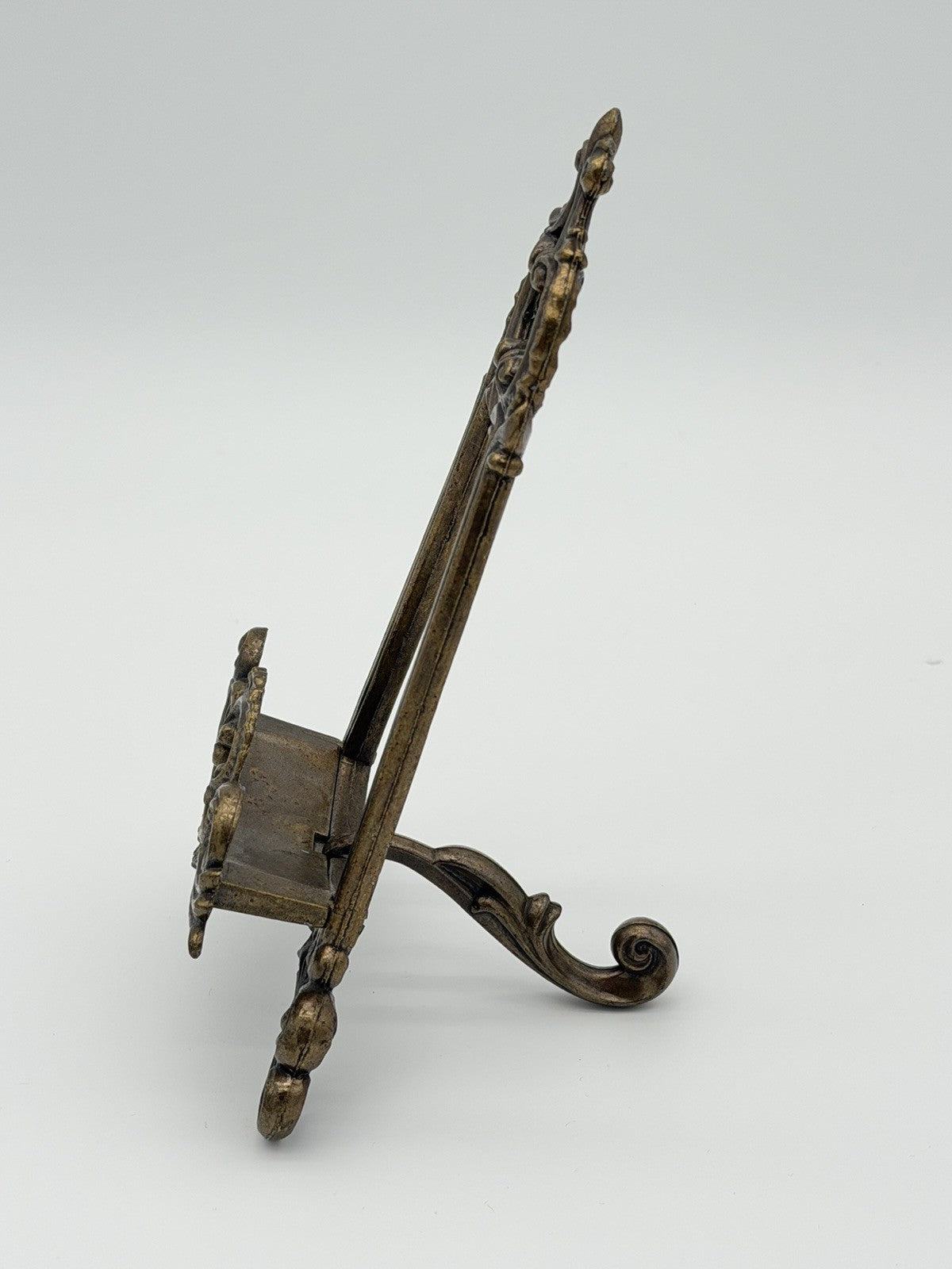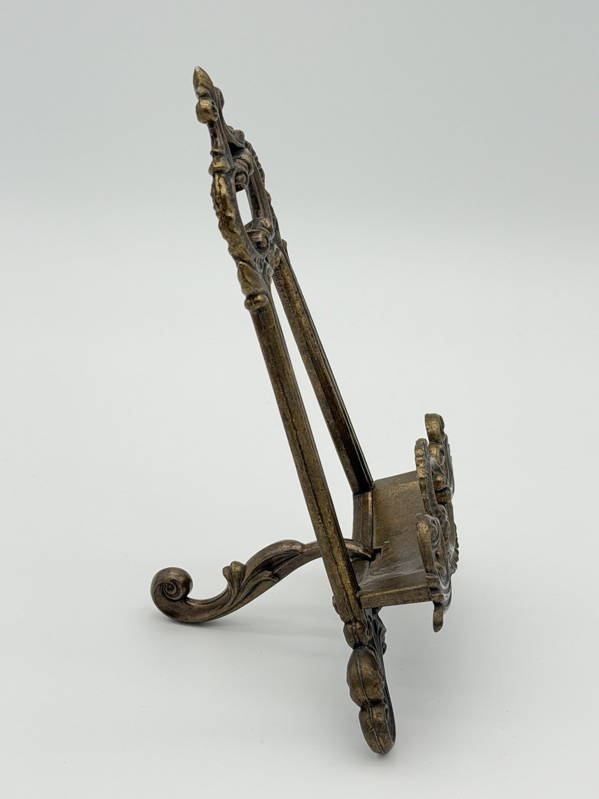 Antique Ornate Bronze 8”Frame Metal Table Top Easel Picture Book Plate Stand