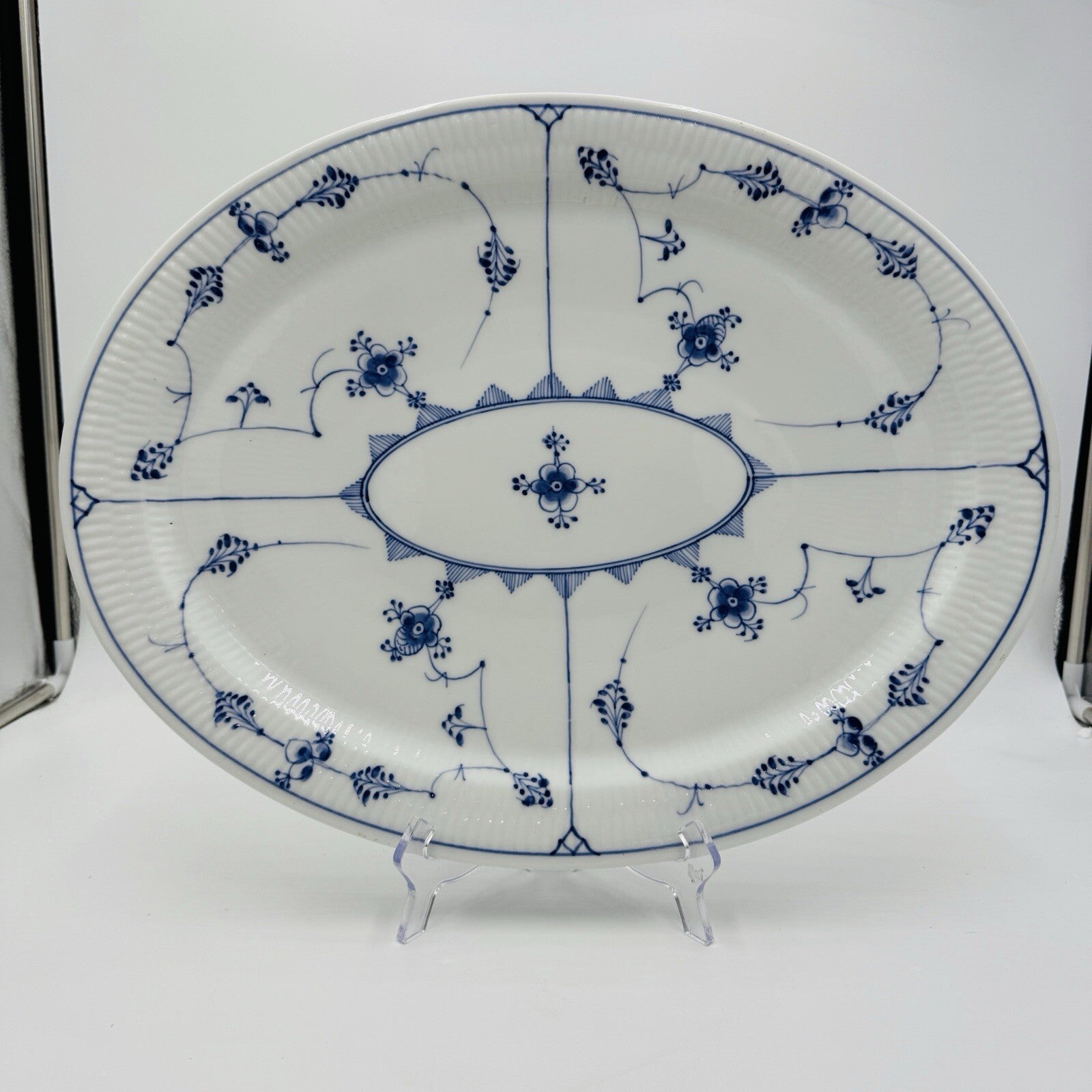 Antique Royal Copenhagen Blue Fluted Plain Large 18in Oval Platter #348 Rare