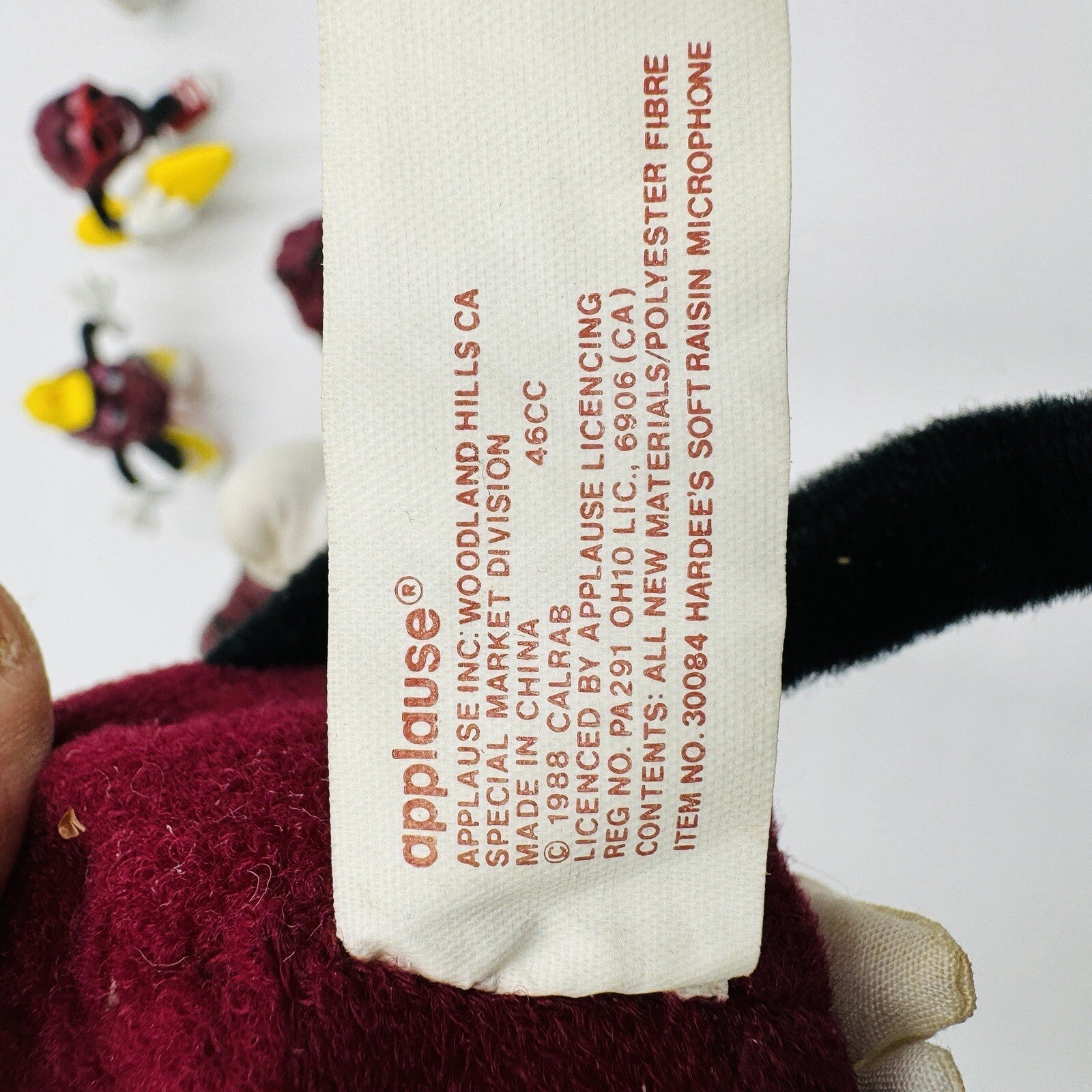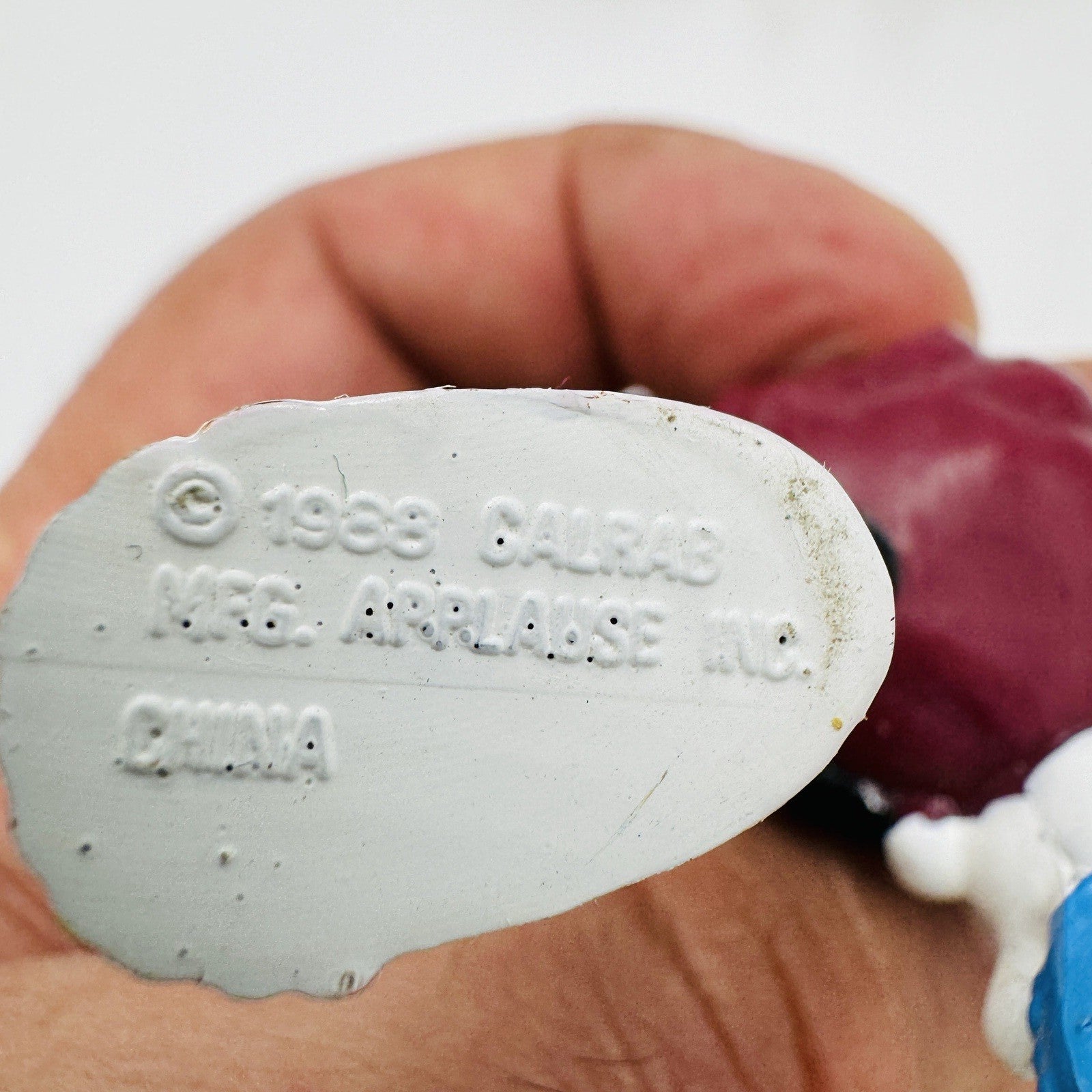 This lot features 9 vintage CALRAB California Raisins action figurines from 1988, manufactured in China. The characters are made of a combination of plush, plastic, and PVC materials, and stand at heights ranging from 5 inches to 2 inches. These original pieces from the California Raisins franchise are a great addition to any collector's stash, and are sure to bring a touch of nostalgia to any room.