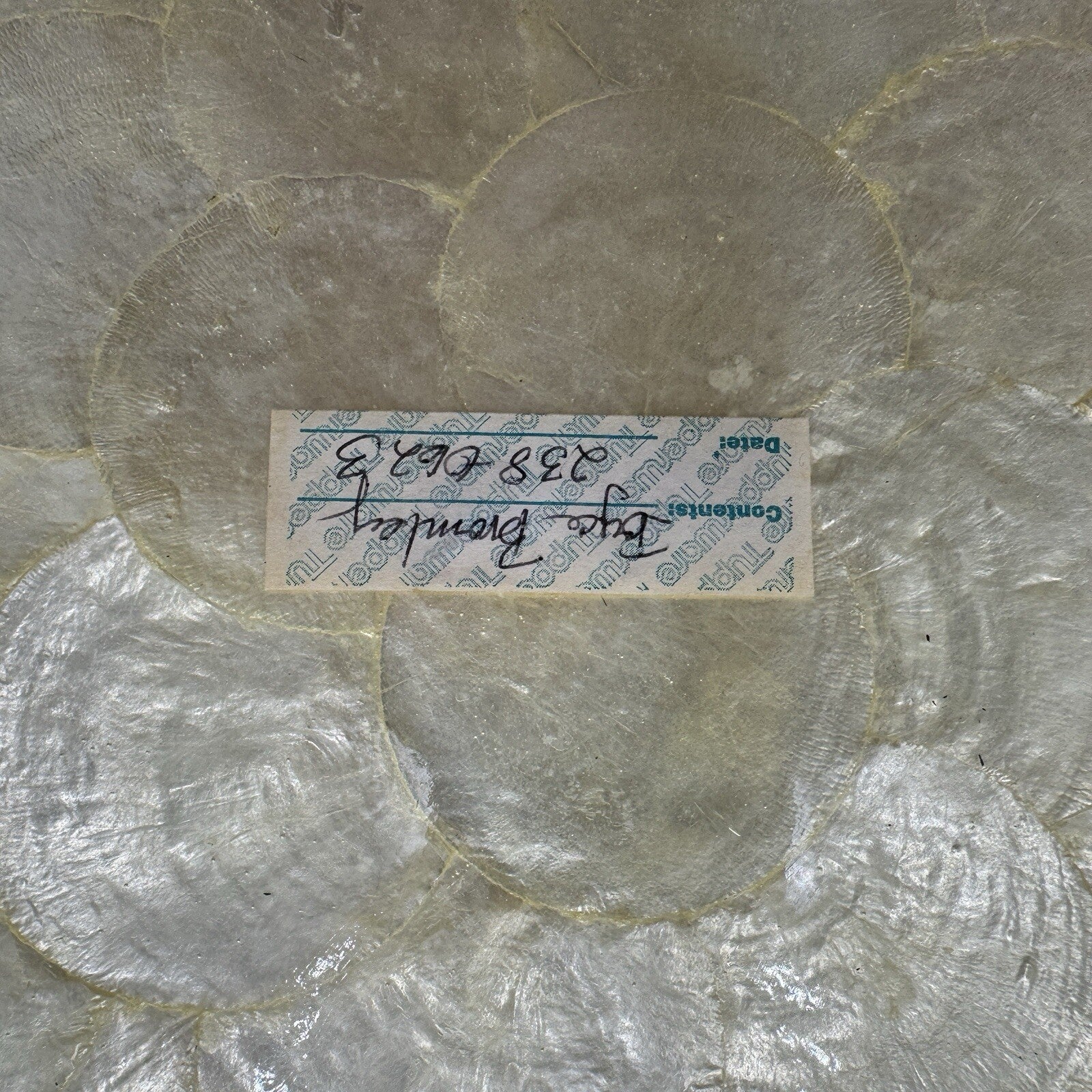 This vintage Capiz shell tray and bowls set is a beautiful addition to any kitchen or dining room. The set includes a round serving tray perfect for holding your favorite snacks or dishes. The tray features a Hollywood Regency style and is made from high-quality materials, ensuring durability and long-lasting use.