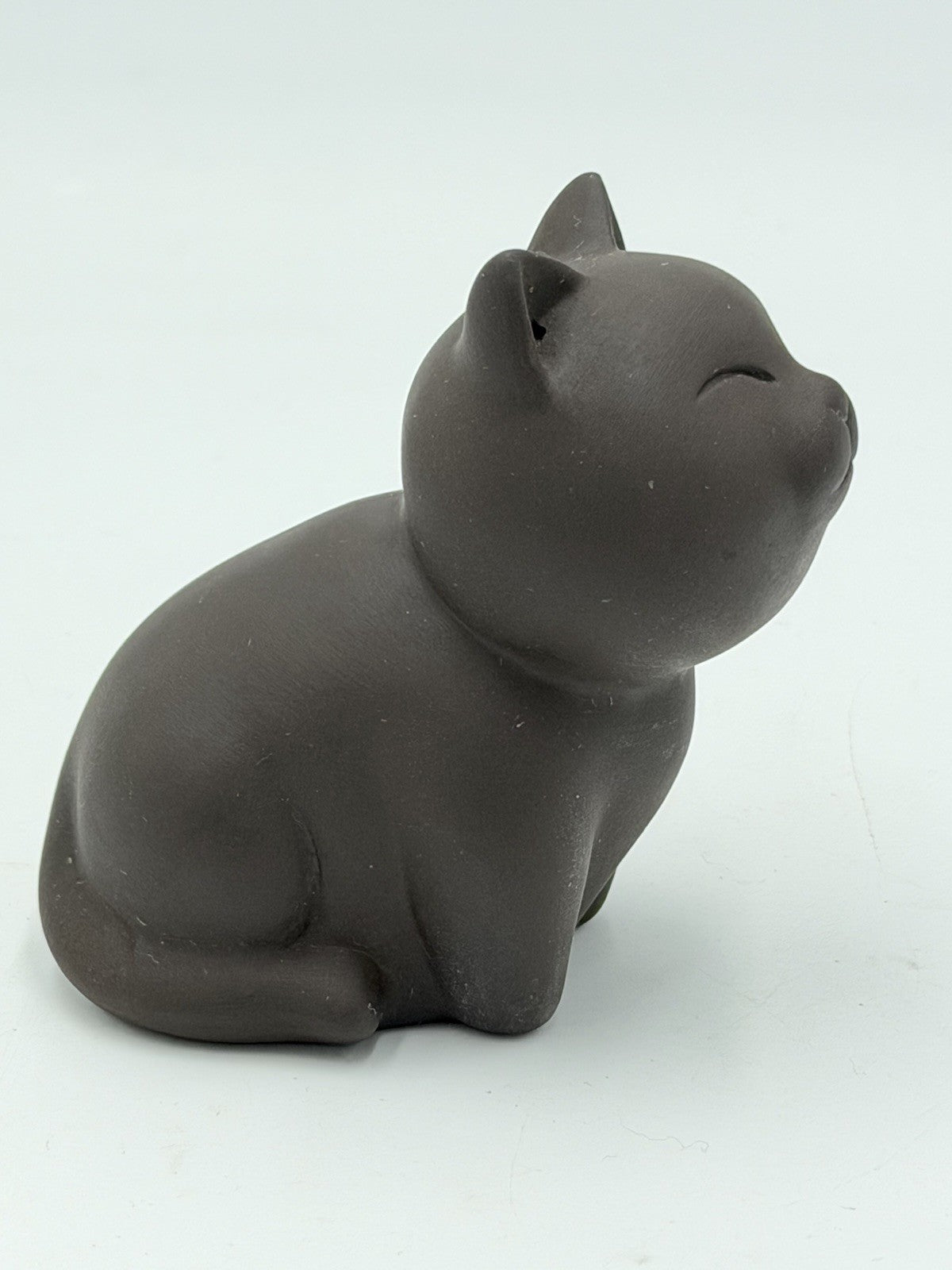 Chinese Art Pottery Kitty Cat Figurine Brown Hand Made Small