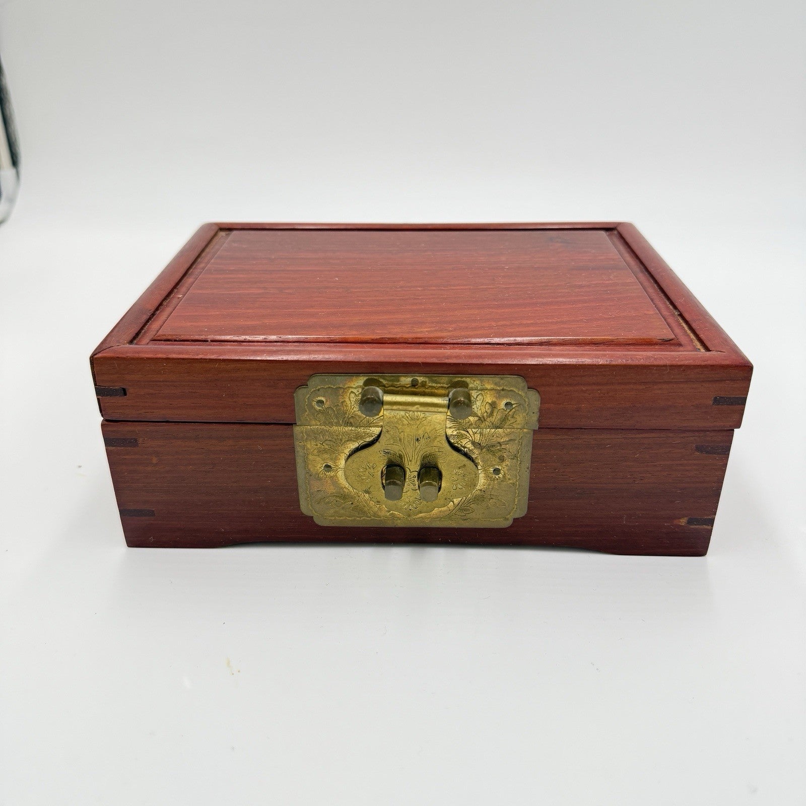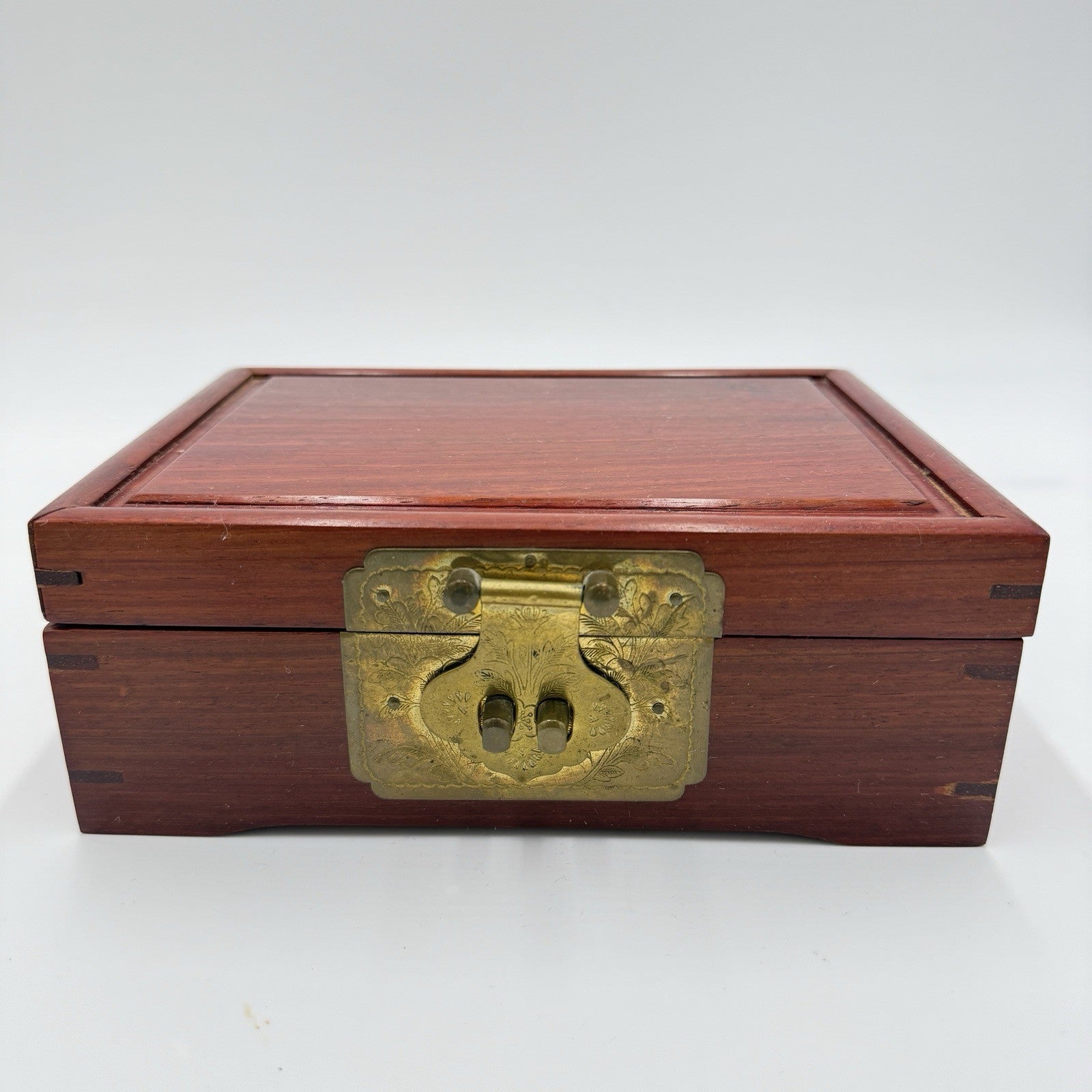 This exquisite jewelry case is a vintage original from China, dating back to the 1980s. Crafted from rosewood with brass accents and velvet lining, this trinket box is a stunning example of Asian craftsmanship. Its primary material is wood, and it comes in a beautiful brown color that is sure to complement any home decor.