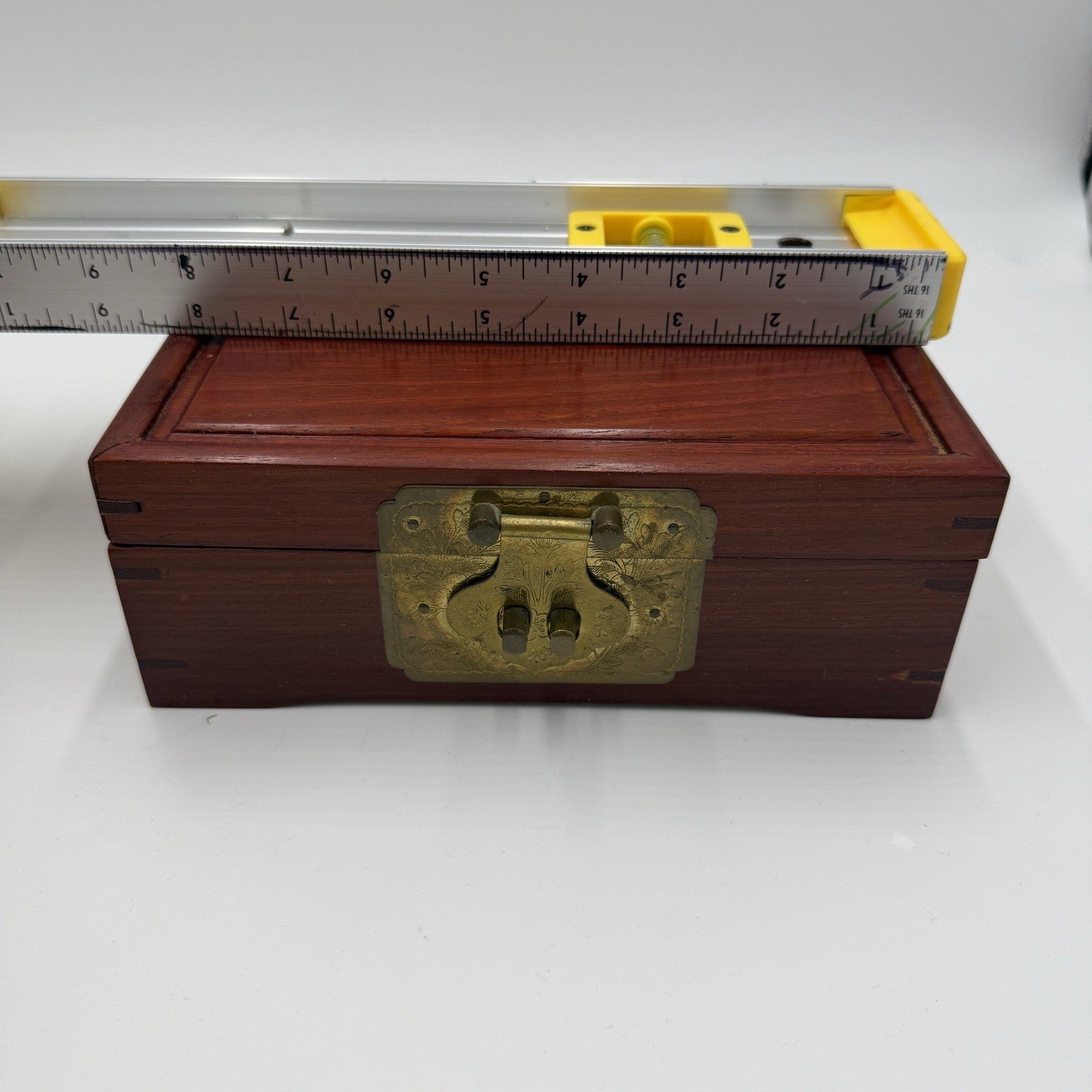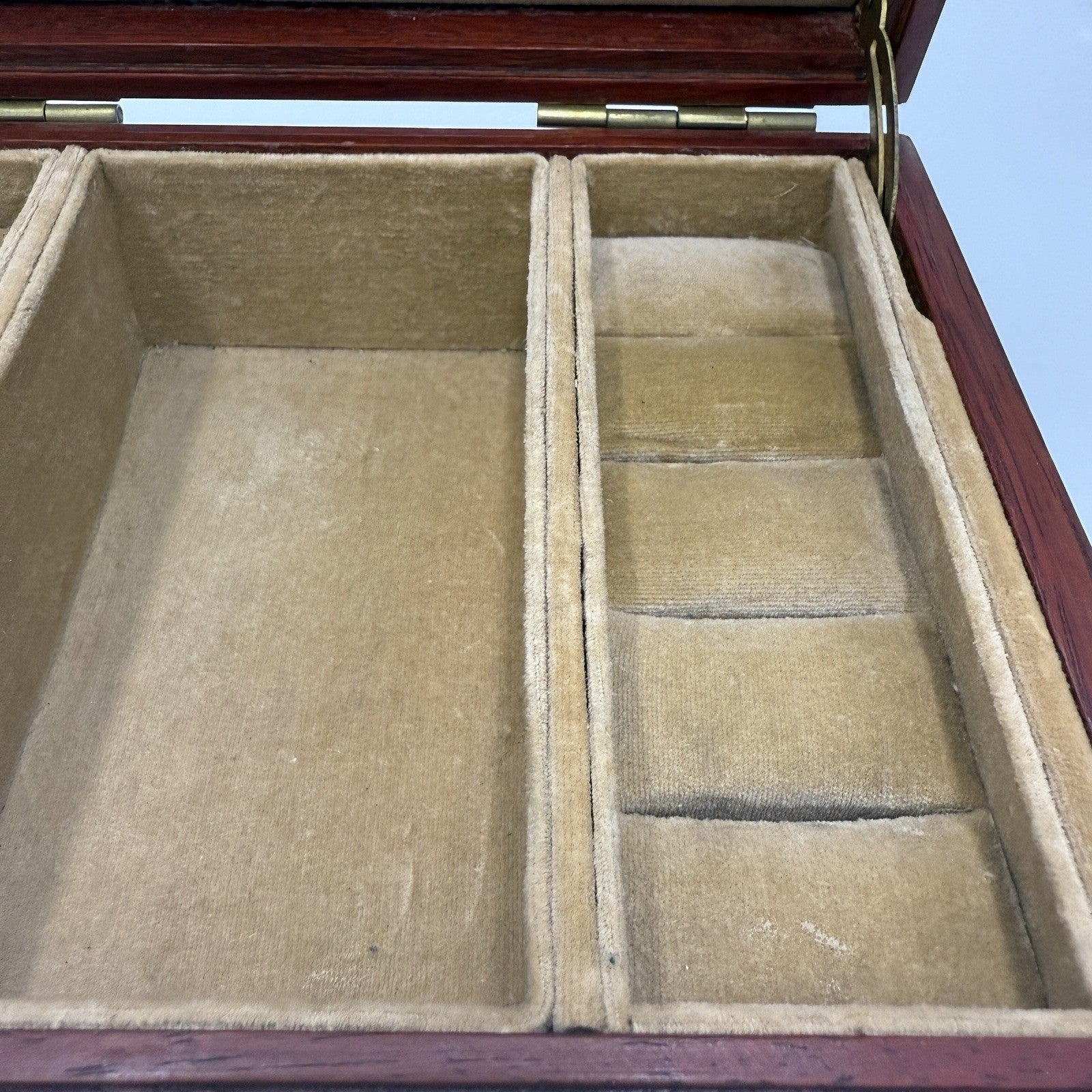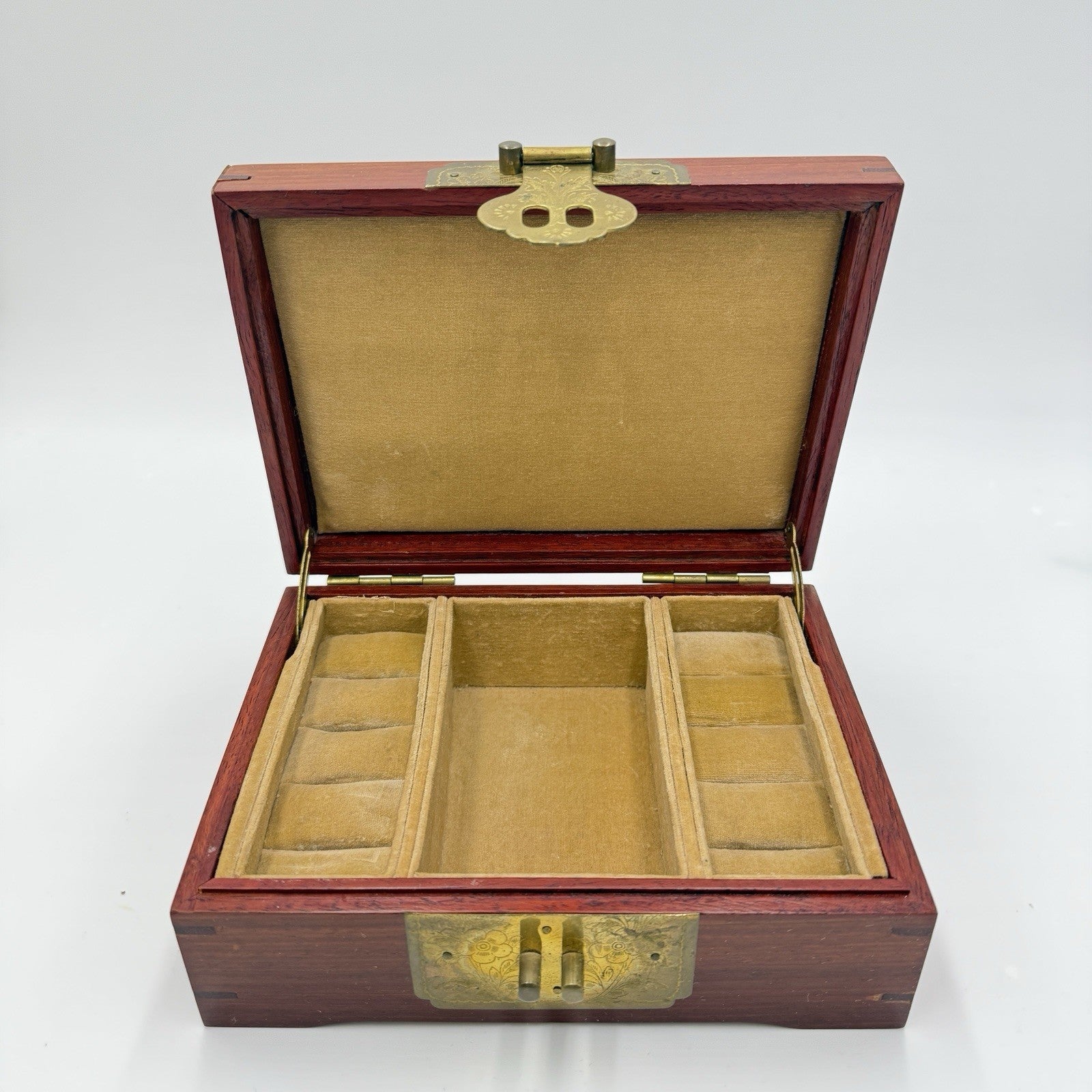 Chinese Classical Rosewood Brass Velvet Art Jewelry Case Trinket Box Wooden Asia