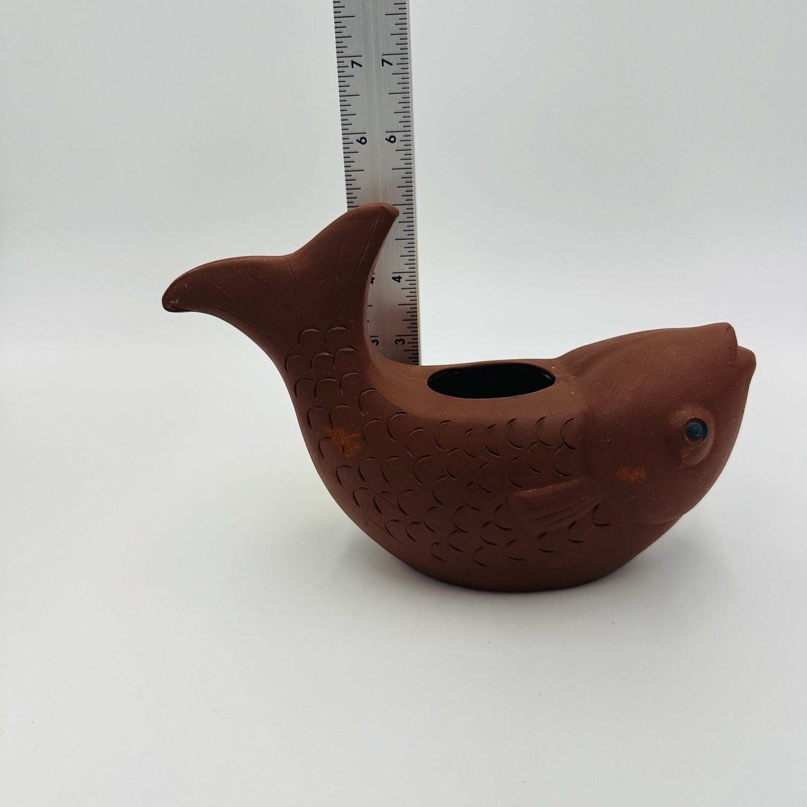 Chinese Pottery Terracotta Yixing Zisha Clay Fish Candle Holder Vase Home Decor