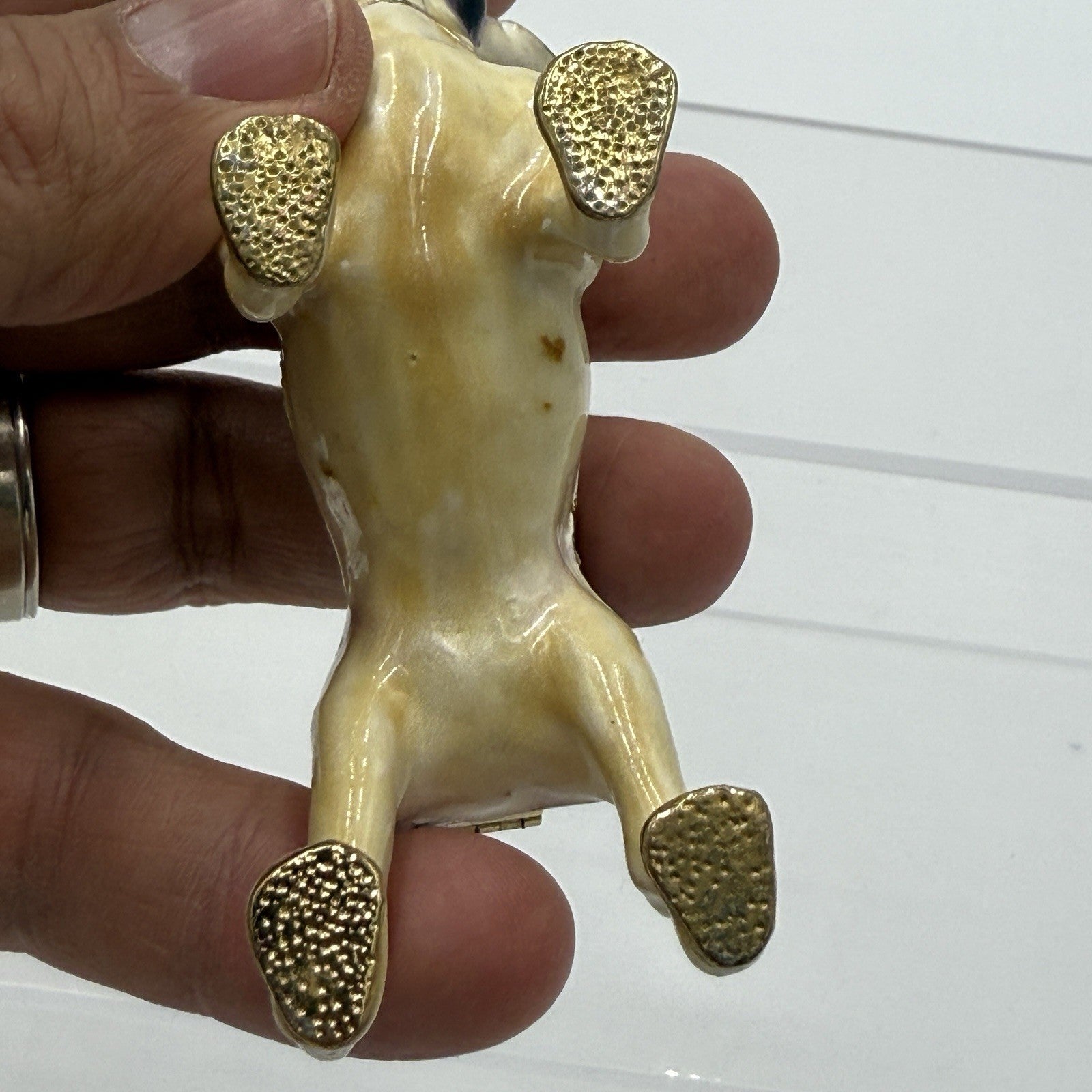 This beautiful trinket box figurine features a charming Boston Terrier dog design, hand-set with crystals and enamel. The piece is made by Ciel and is part of their Dogs collection, perfect for all occasions. The trinket box stands at 2.5 inches in height and is an original piece, made in China.