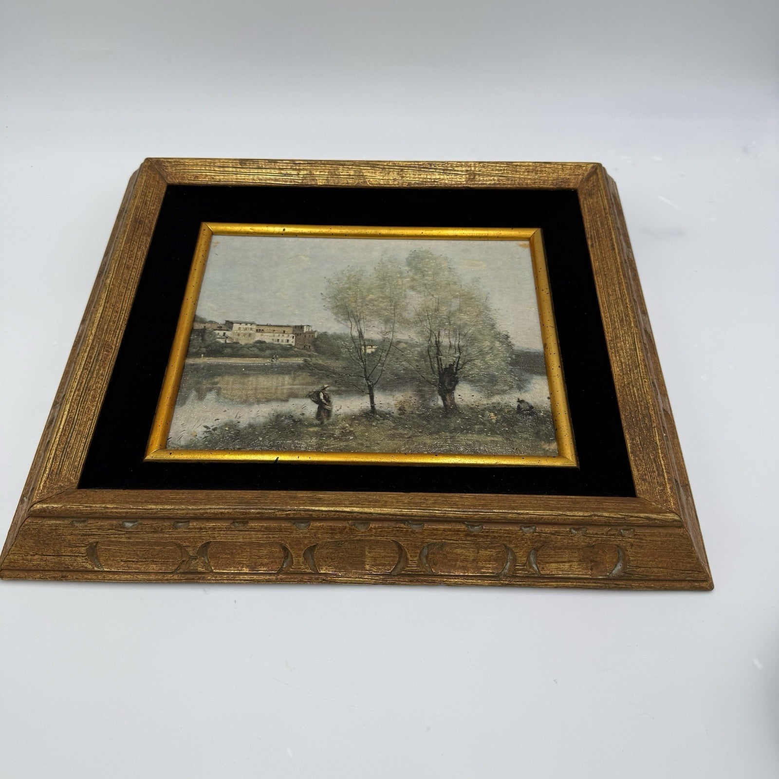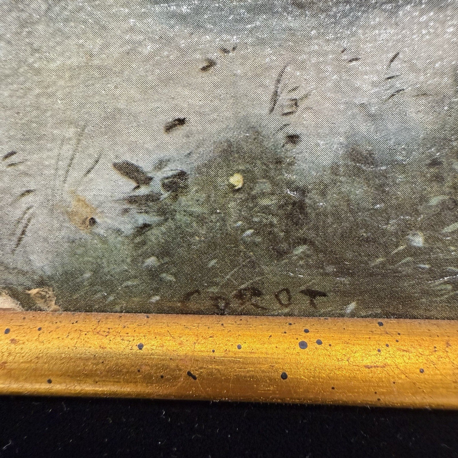This product is an original 19th century French oil painting on canvas by artist Corot, depicting an animated landscape in his signature Barbizon and Realism style. Created between 1850-1899, the medium-sized painting is framed and signed by Corot, showcasing the beauty of nature and artistry typical of the School of Barbizon period. The detailed and hand-painted work captures the essence of European landscapes from the 19th century, making it a valuable and unique piece for collectors and art enthusiasts.