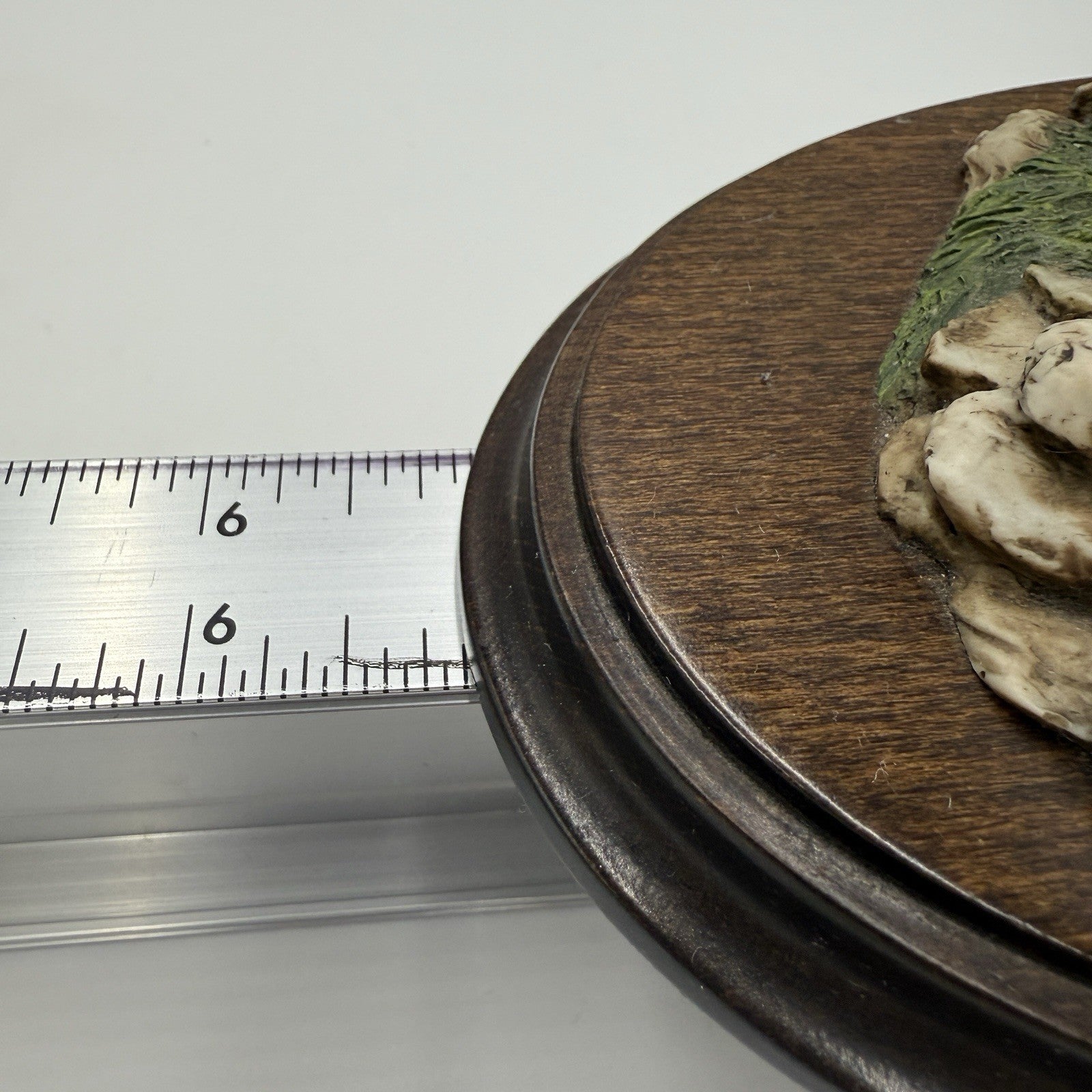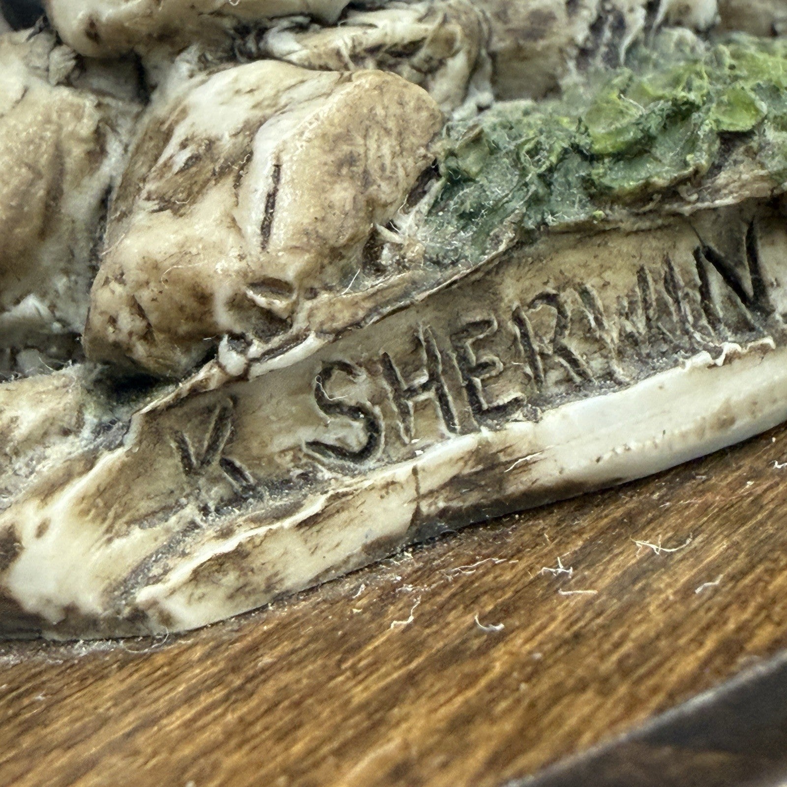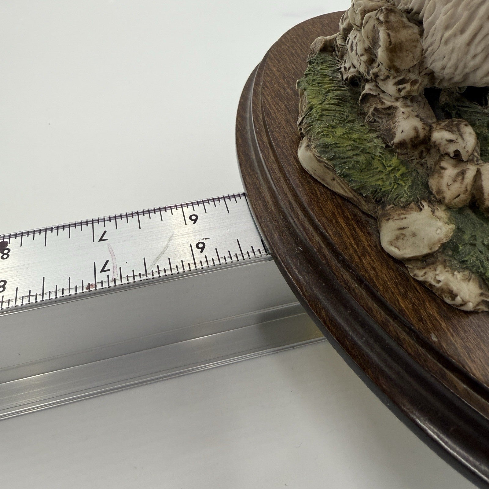 This exquisite figurine from the Country Artists collection depicts a charming scene of a sheep in Stratford-upon-Avon, England. Crafted from a combination of wood and resin, the figurine features intricate details and a matte/painted finish that makes it a rare and unique addition to any collection. The figurine is signed by K.Sherwin and measures 8 inches in length, 4.5 inches in height, and 6 inches in width.