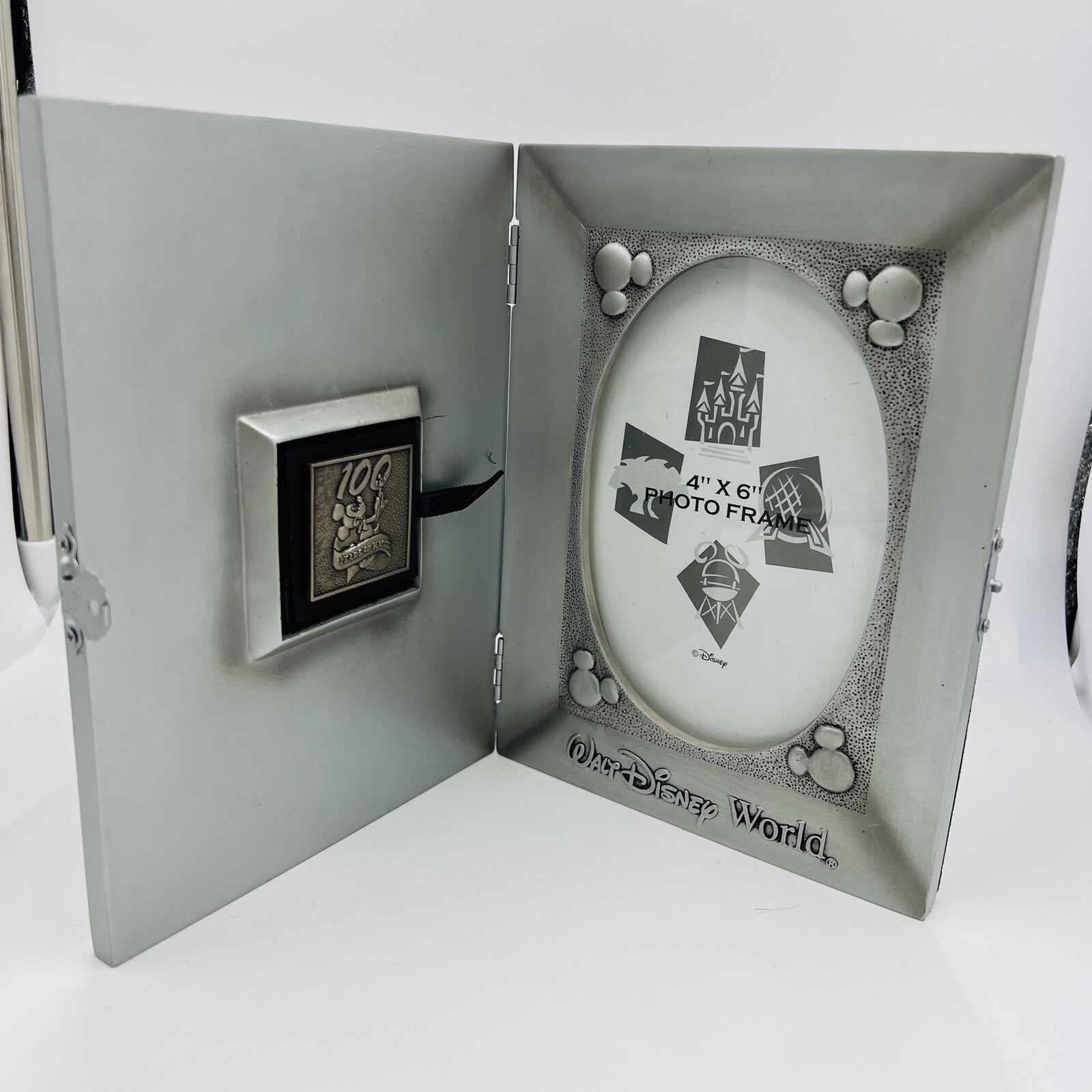 Disney 100 Years of Magic Mickey Silver Pewter Picture Frame Case + Pin 4x6.