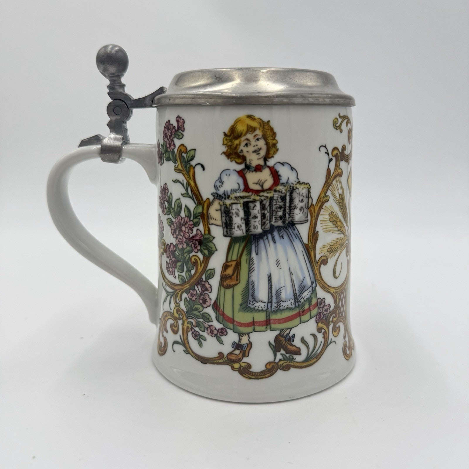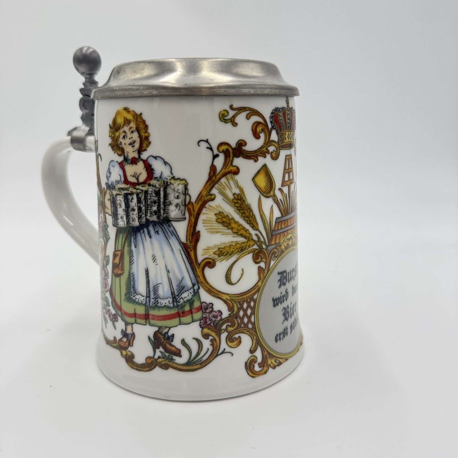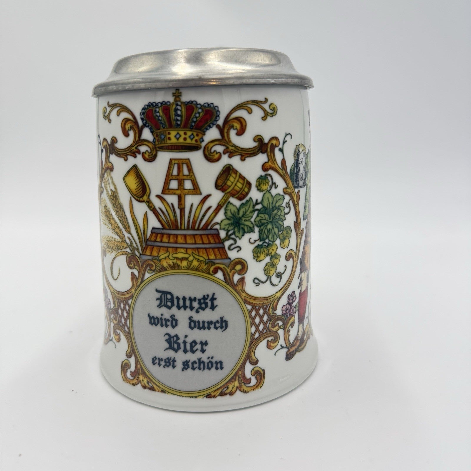 DR. Merkle Atelier German Ges. Gesch Lidded Beer Porcelain Stein 6”