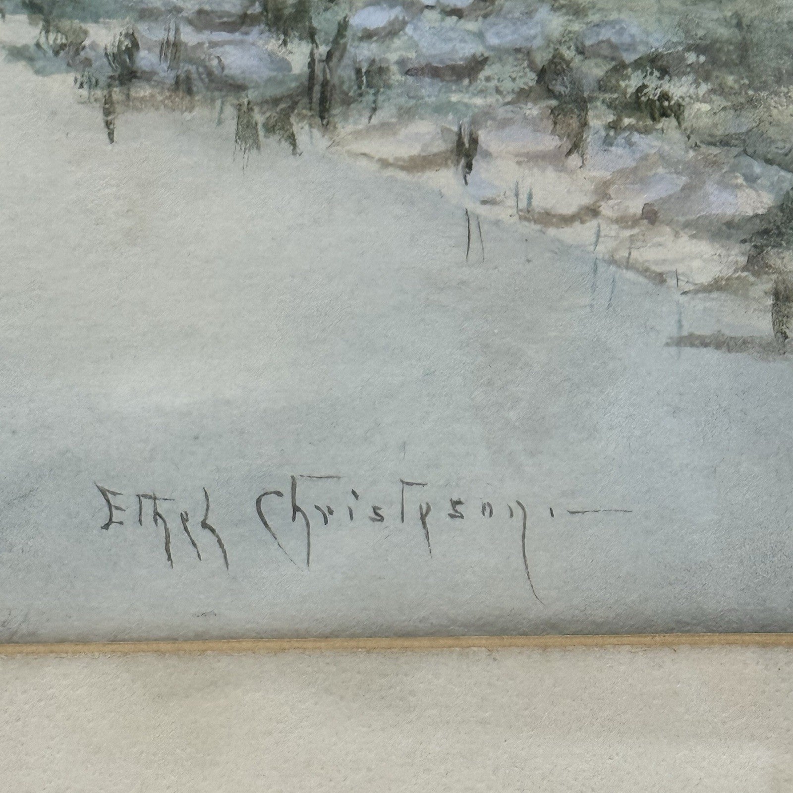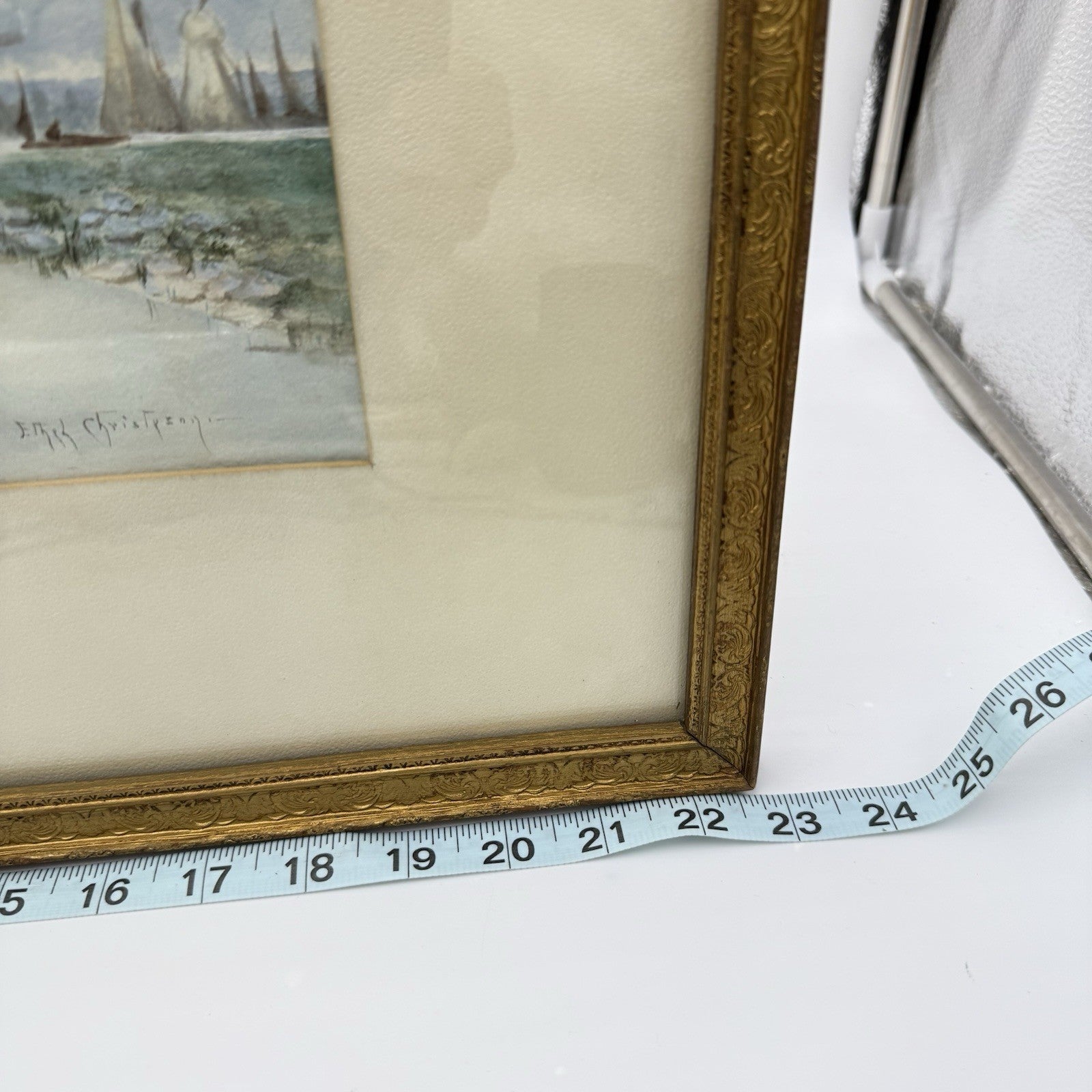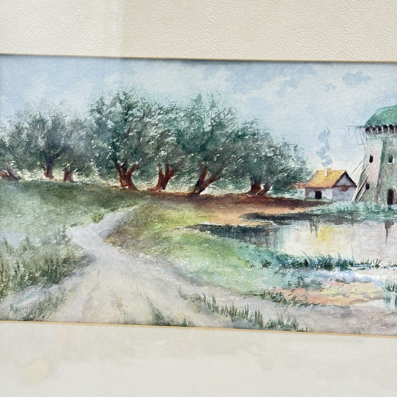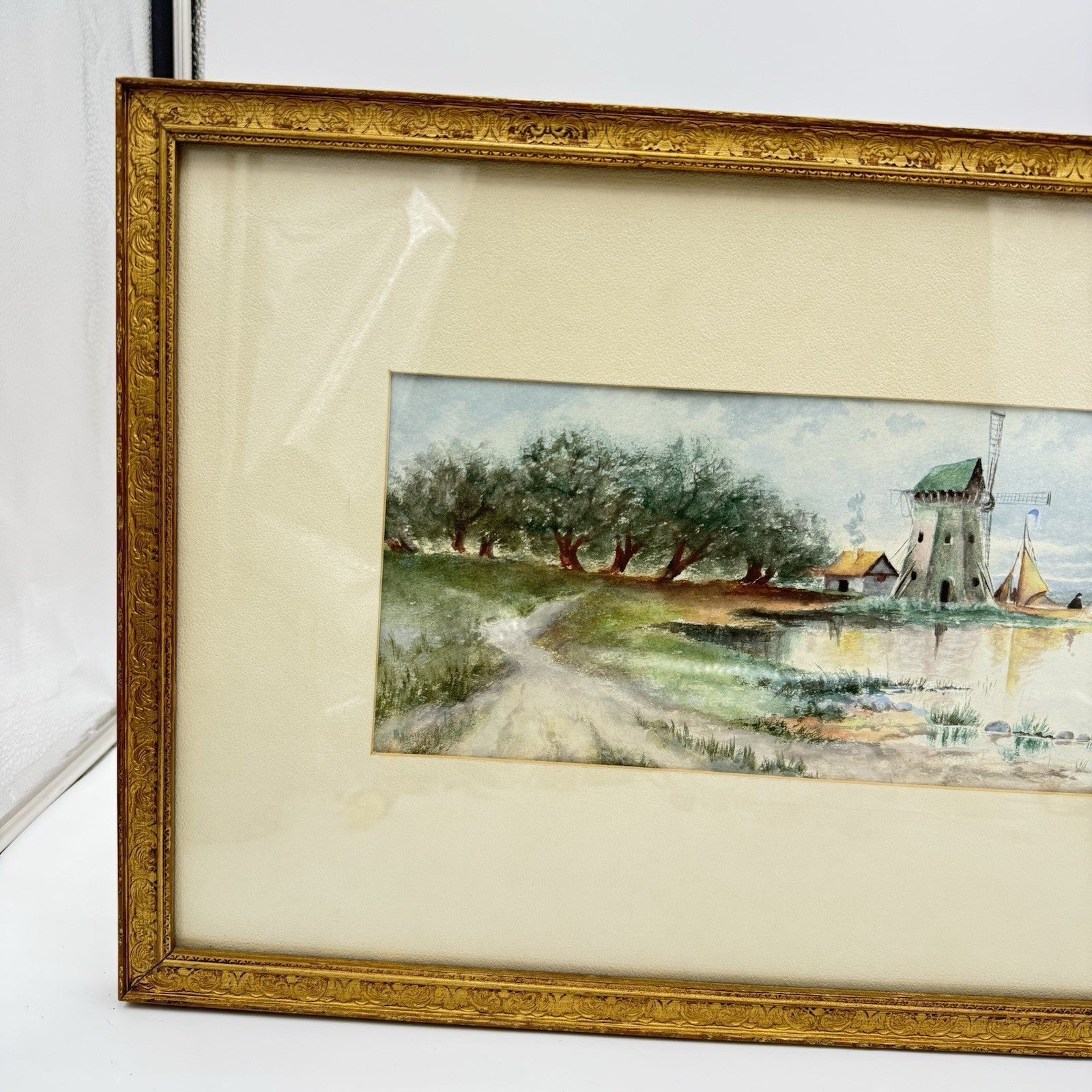 Dutch Scene Windmill & Boats Watercolor Painting signed Ethel Christpson Origin