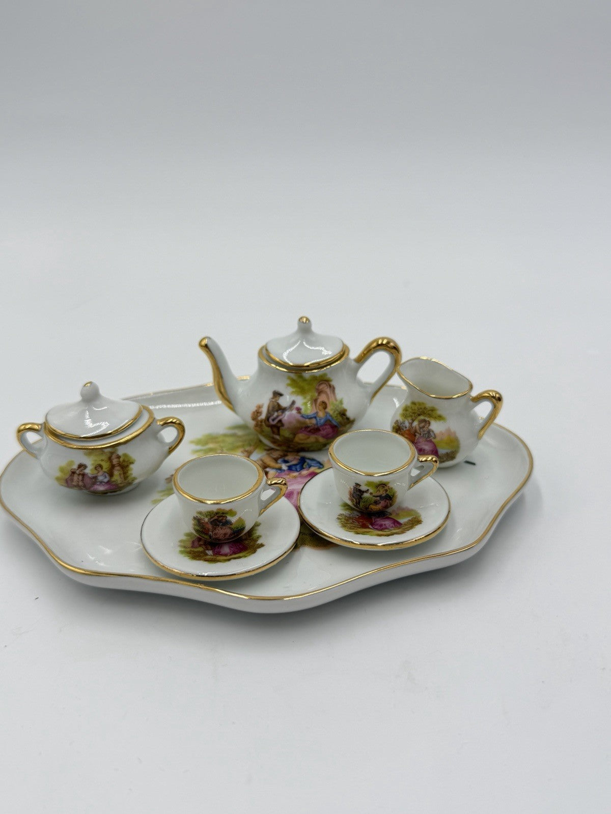 EME porcelain Spain miniature tea set romantic scene victorian 8 PCs Dollhouse