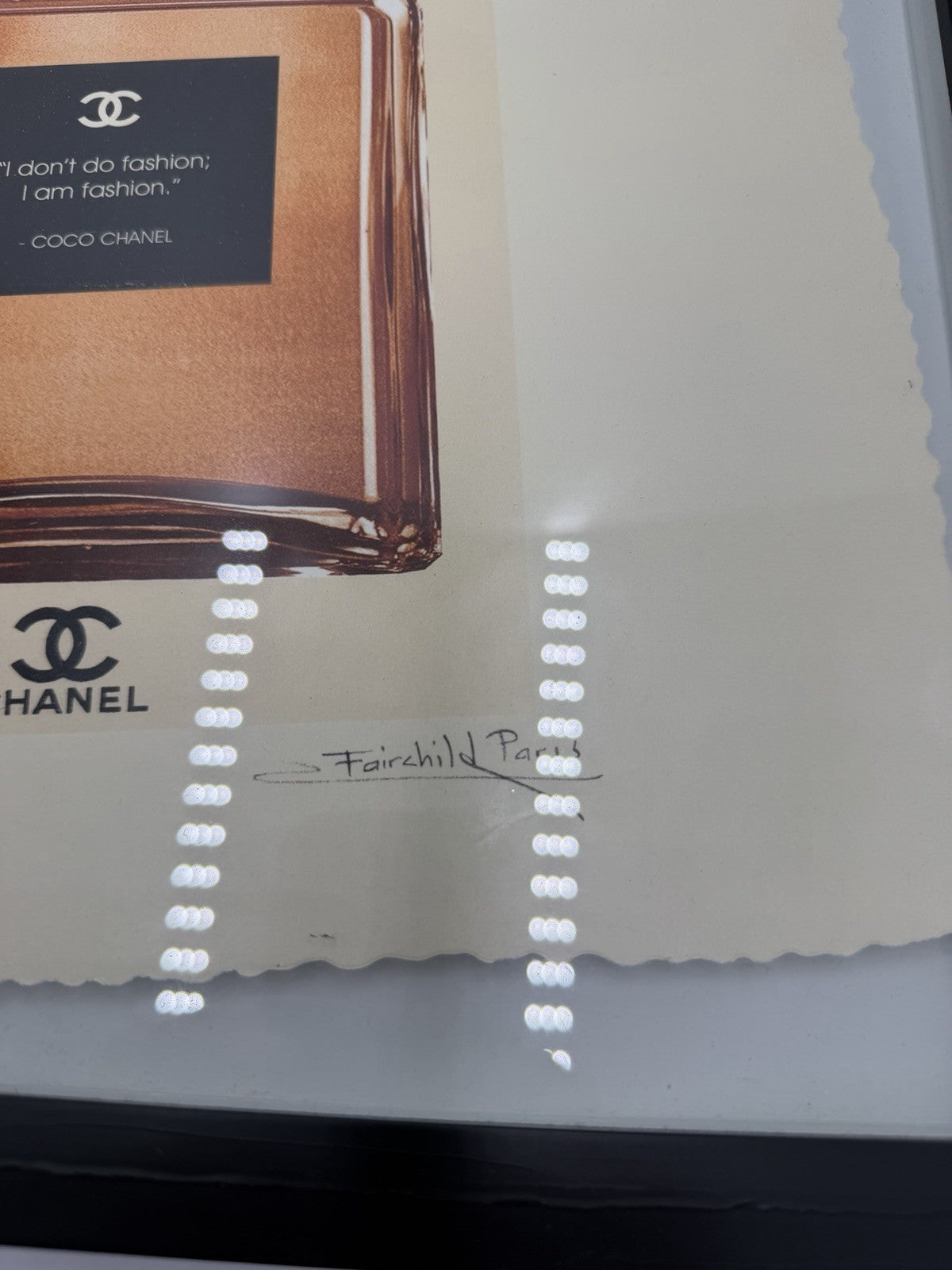 Fairchild Paris Pop Art Print Coco Chanel RM Gold Perfume Bottle Framed 15”x15”