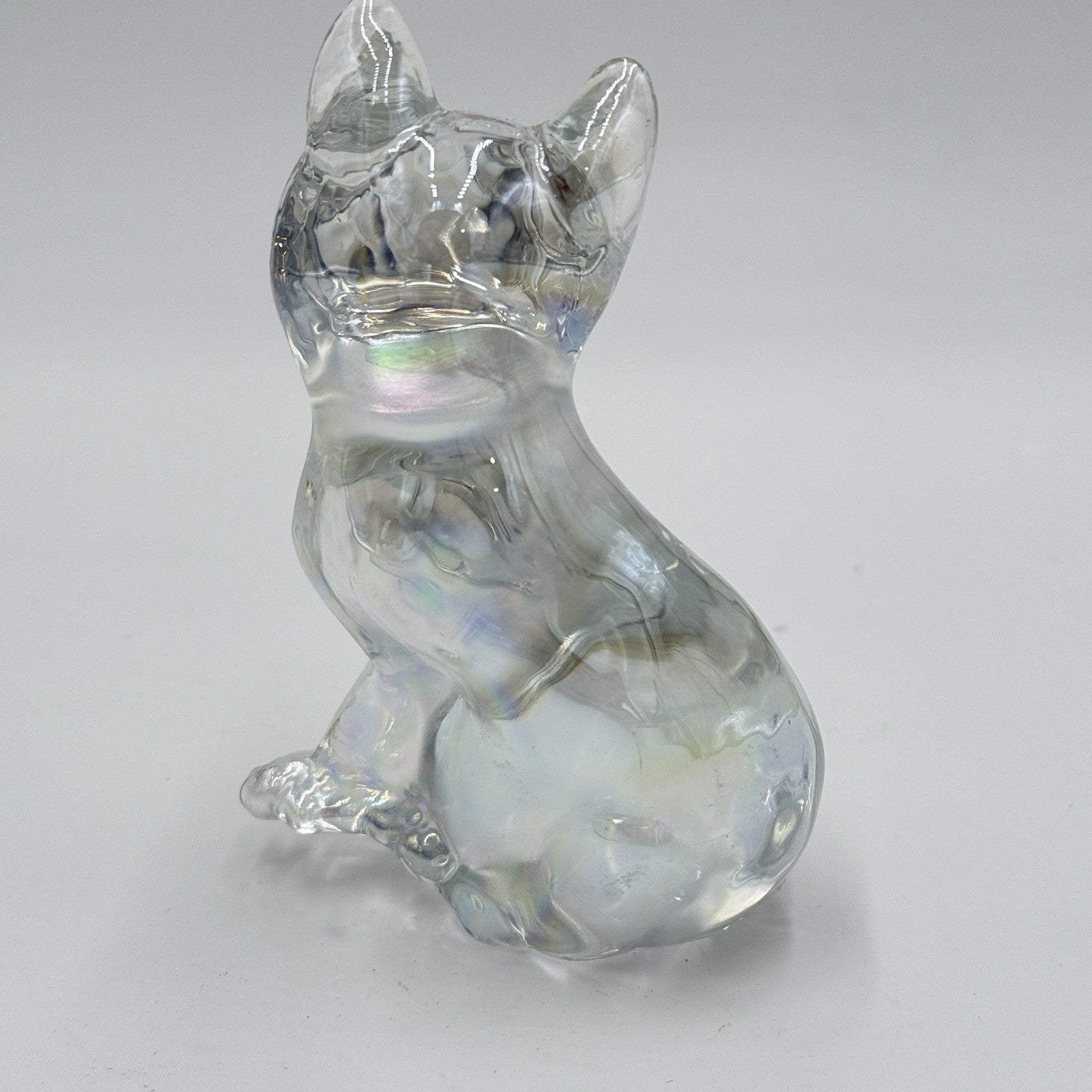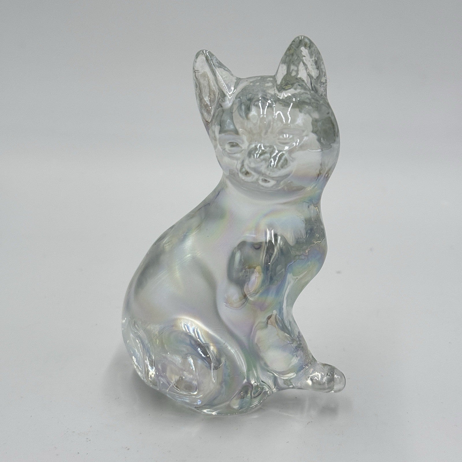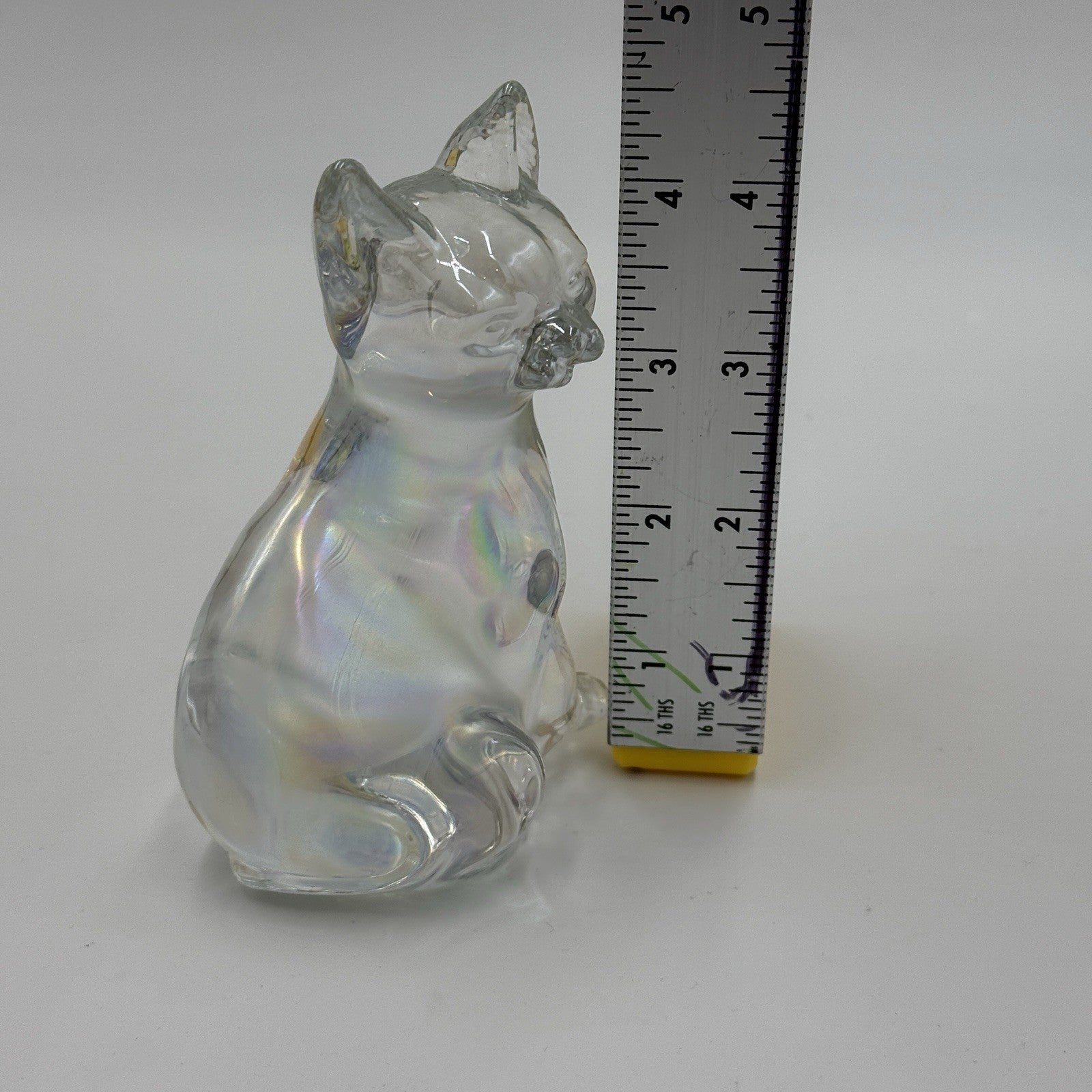 Fenton Carnival Glass IRIDESCENT /clear CAT Sitting Kitten PAPERWEIGHT Figurine