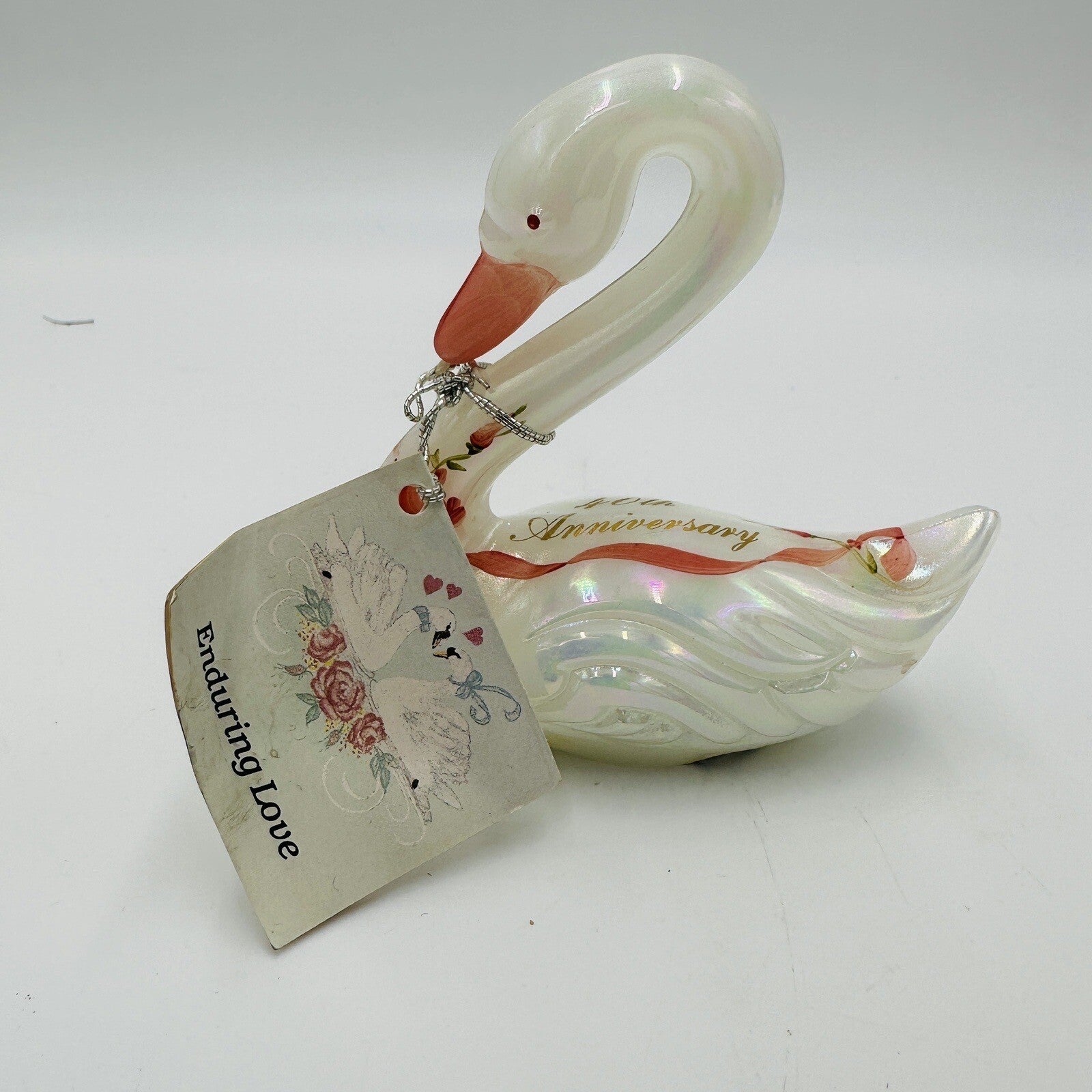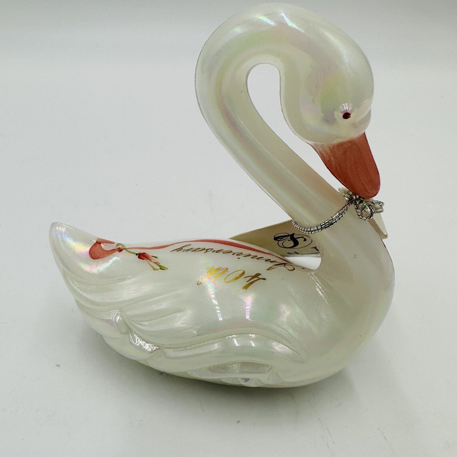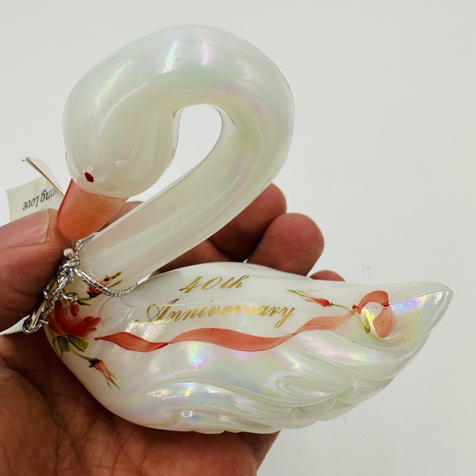 Vintage Fenton 40th Anniversary Swan Figurine Enduring Love 1989 4” Original Tag