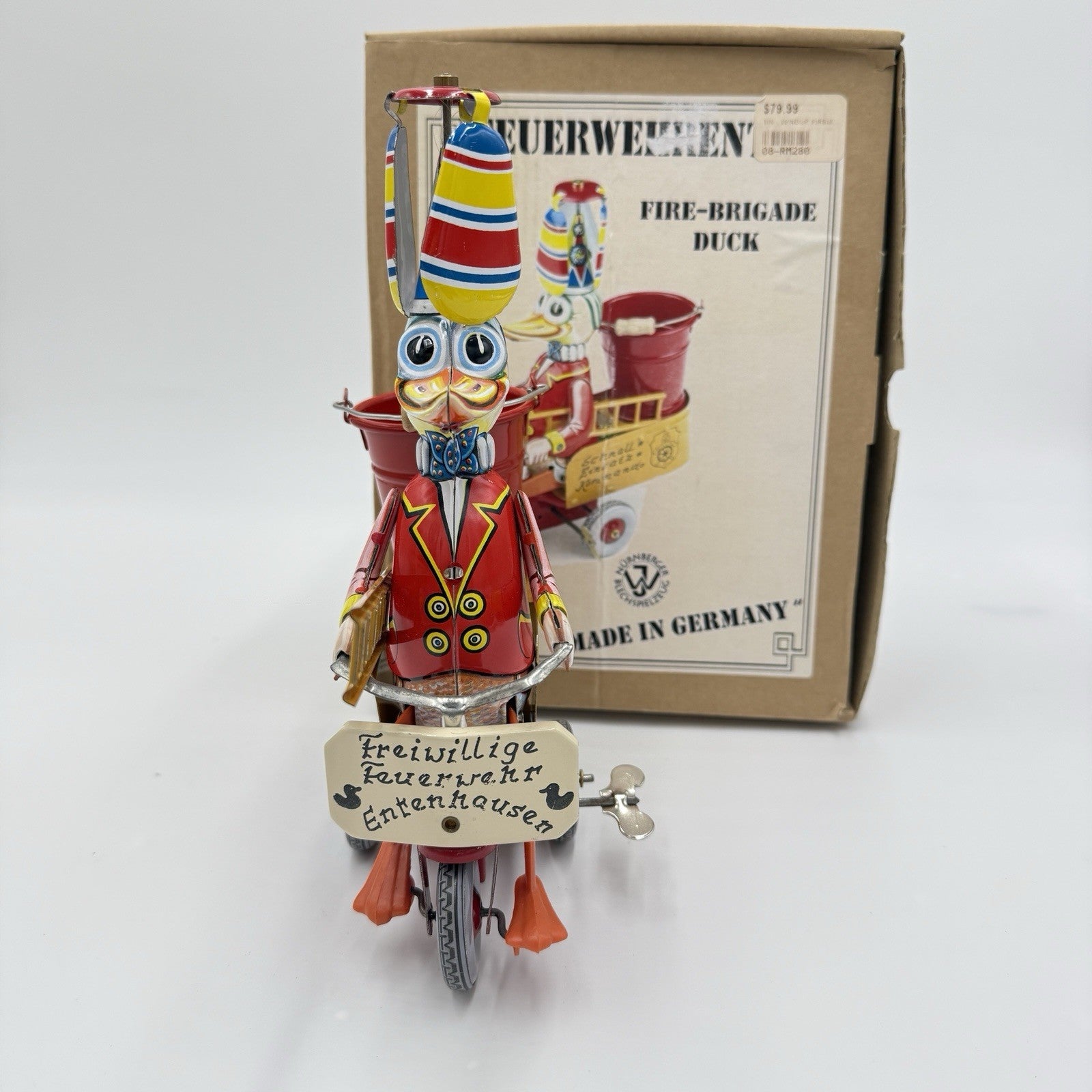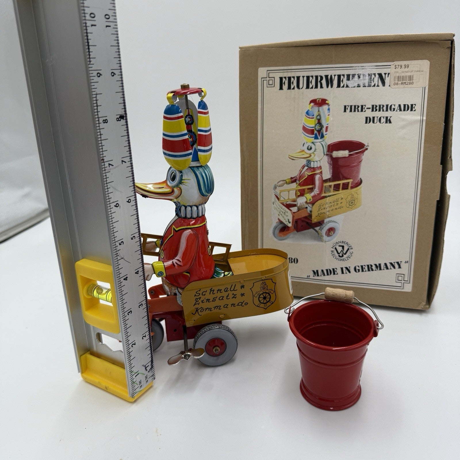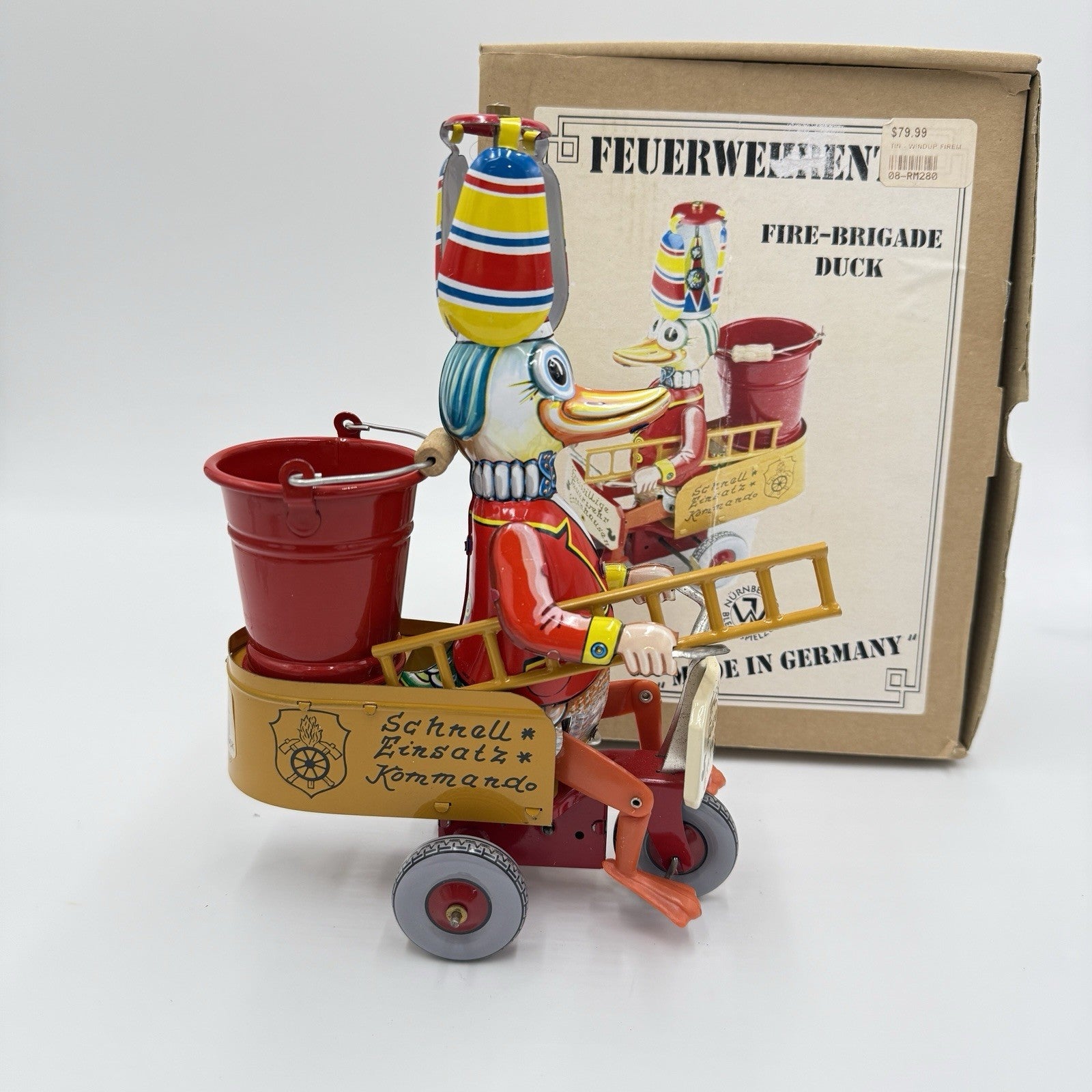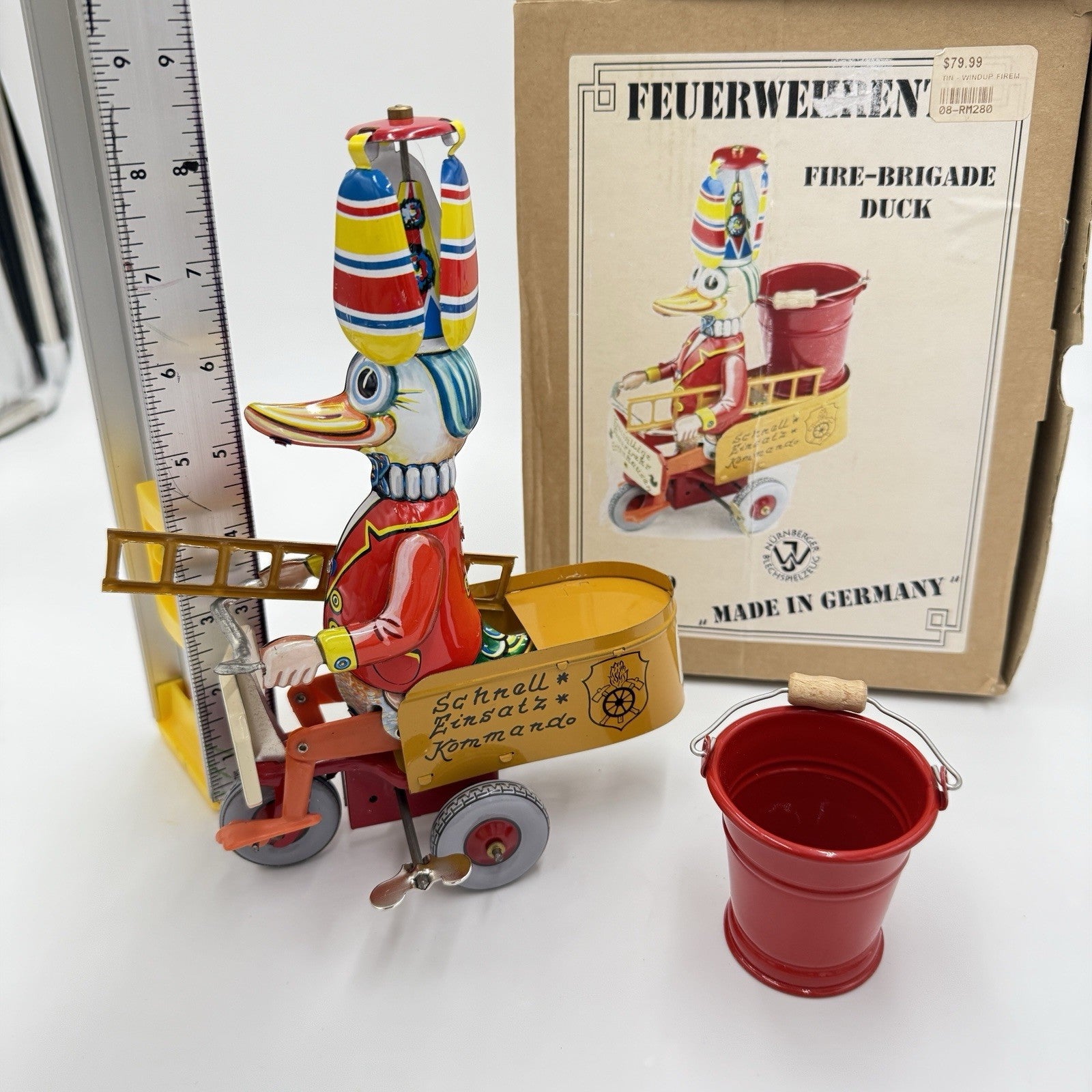 Fire Brigade Duck Tin Toy Germany Wilesco #280 Blechspielzeug Windup Works Boxed