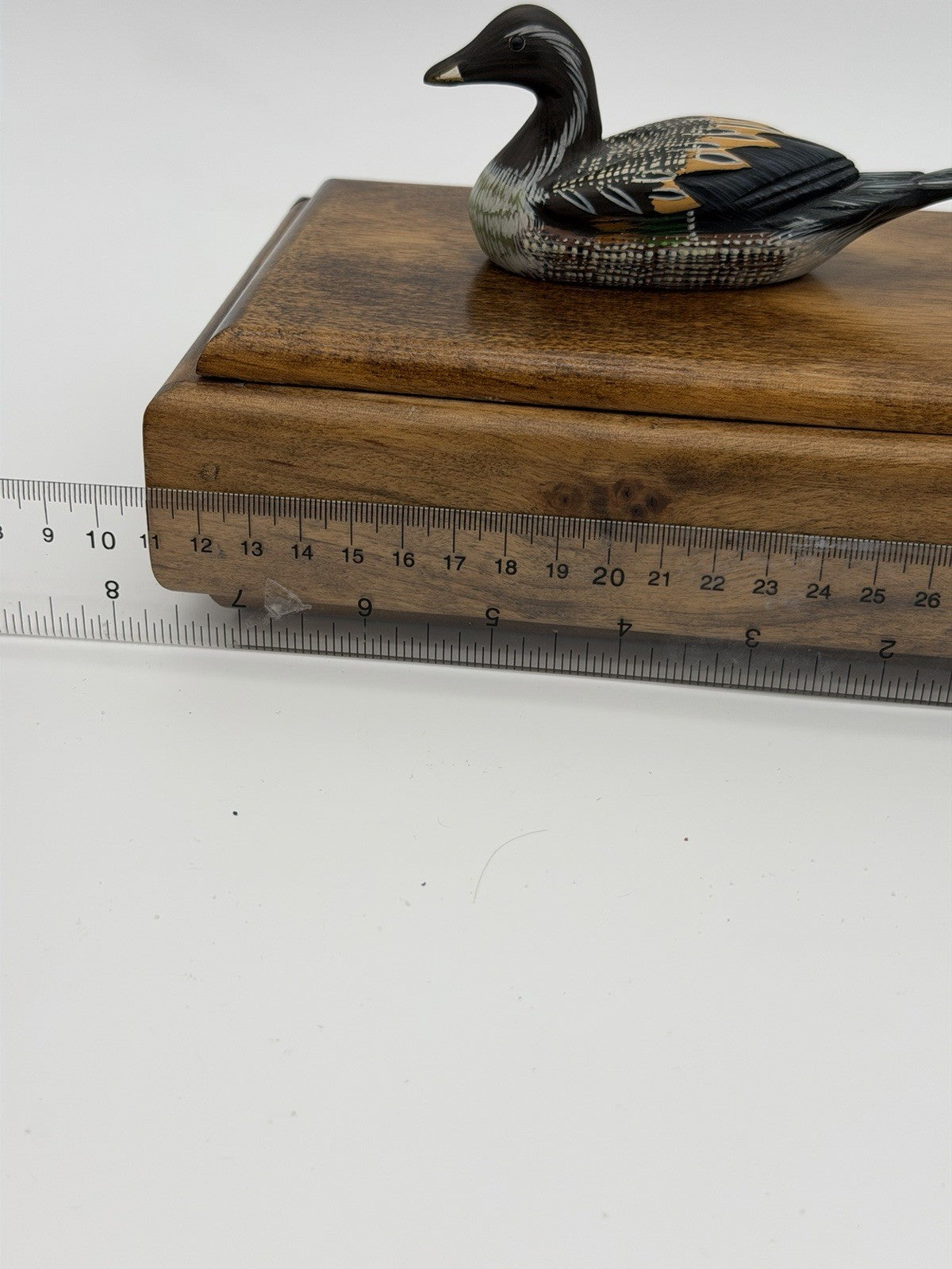 Folk Art Handmade Wooden Duck Decoy On It Trinket Box Vintage Solid