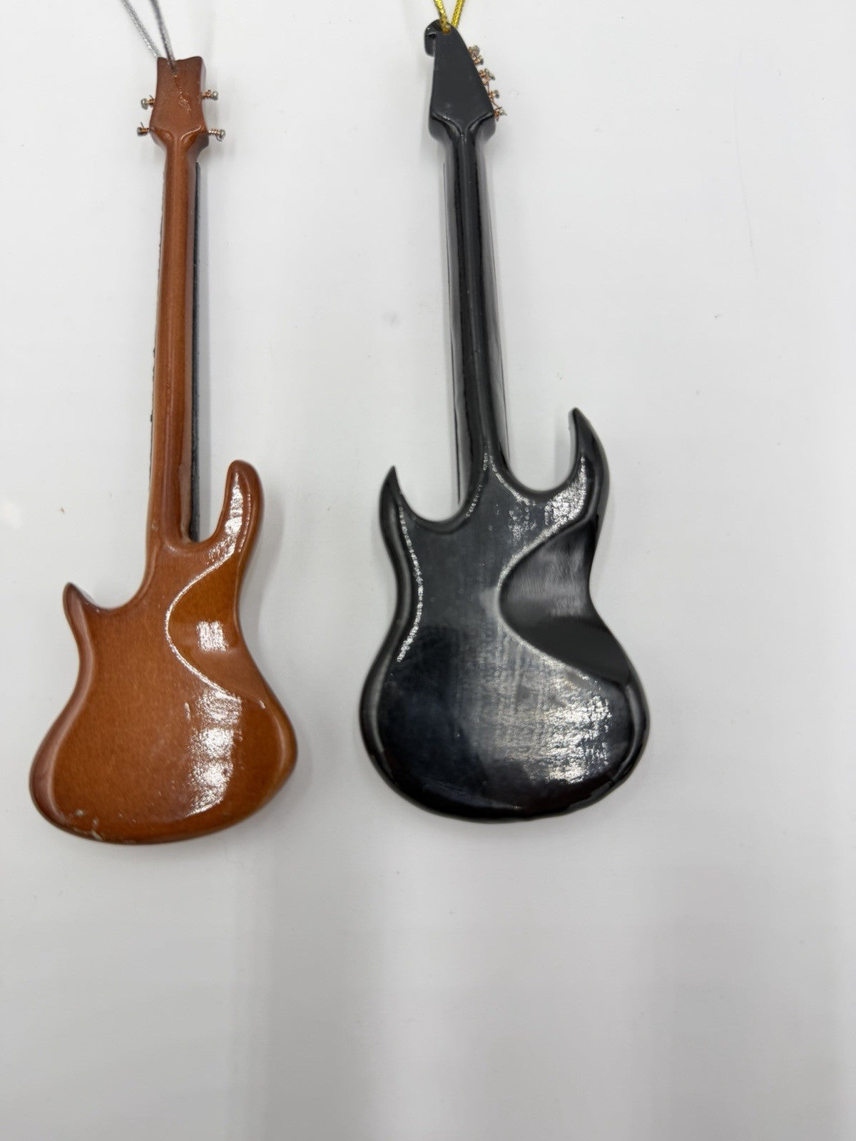 Folk Art Wooden Miniature Electric Guitar & Bass Christmas Ornaments 5”