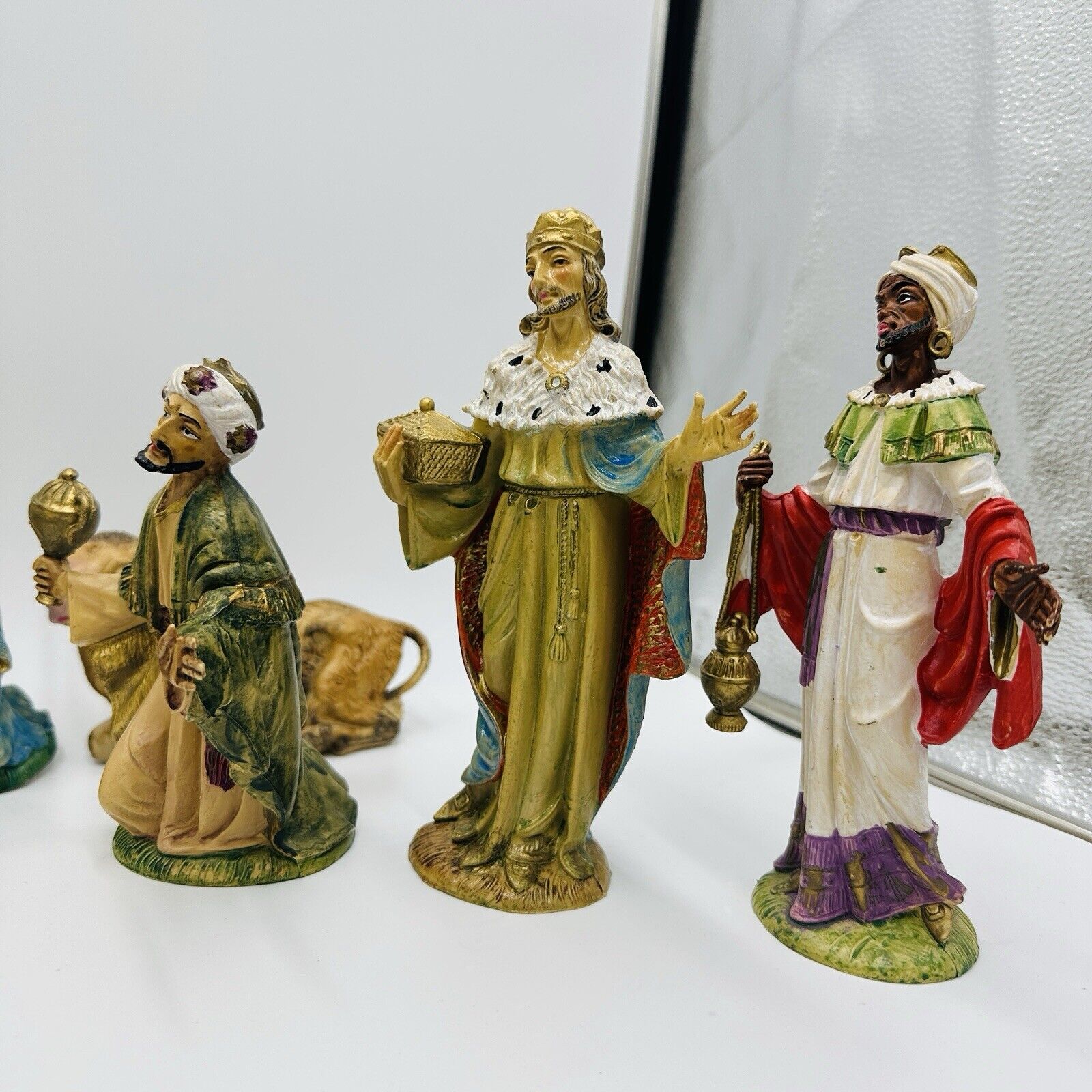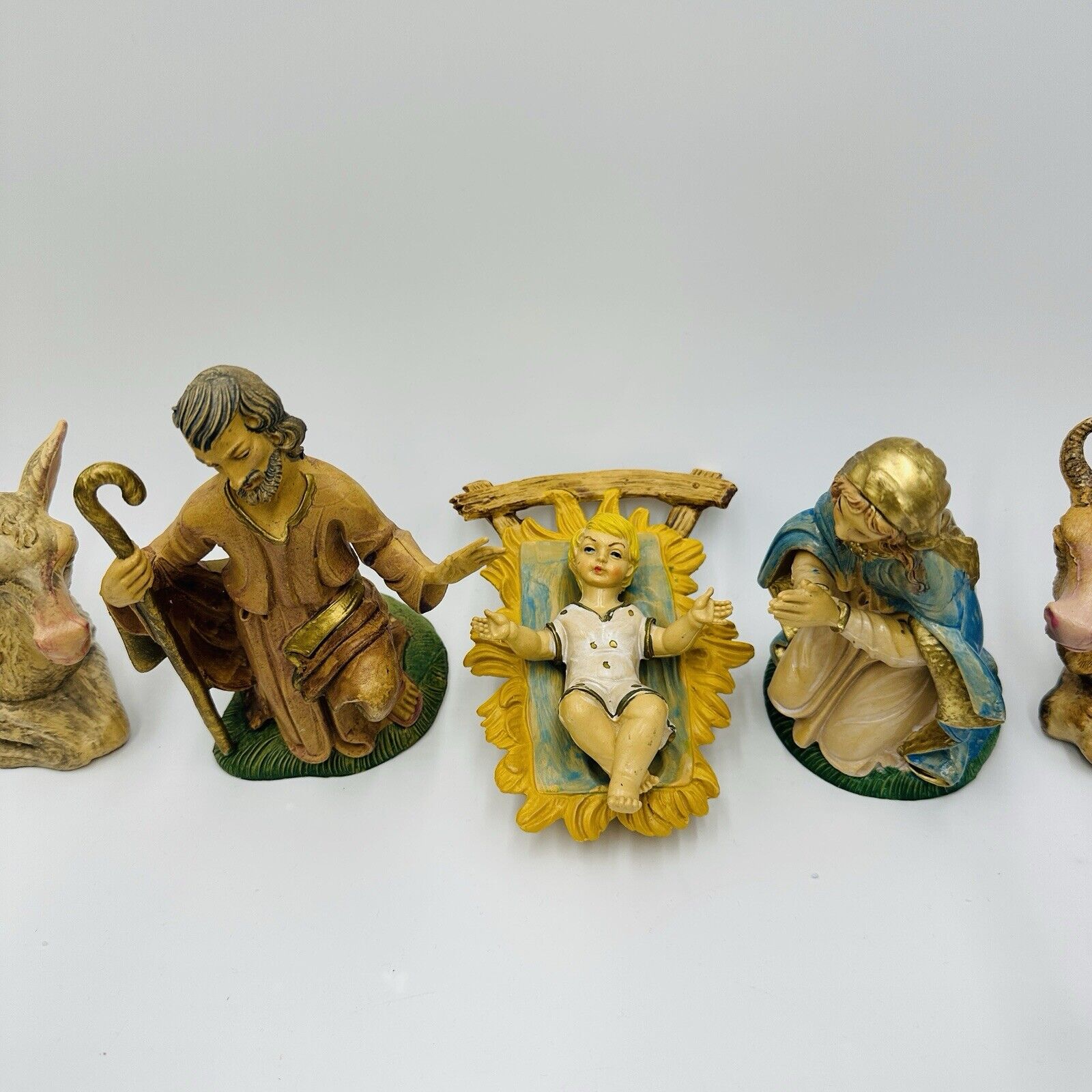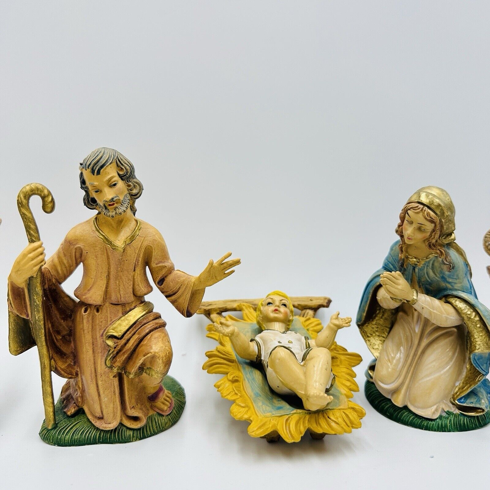 Celebrate the holiday season with this beautiful Fontanini 8" Italy Christmas Nativity Holy Family Shepherds Wise Men set. Made of high-quality plastic, this vintage set includes shepherds, Jesus, Joseph, Wise Men, and Mary. The multicolor figures are intricately designed with detailed shapes and feature the iconic Fontanini Depose franchise.
