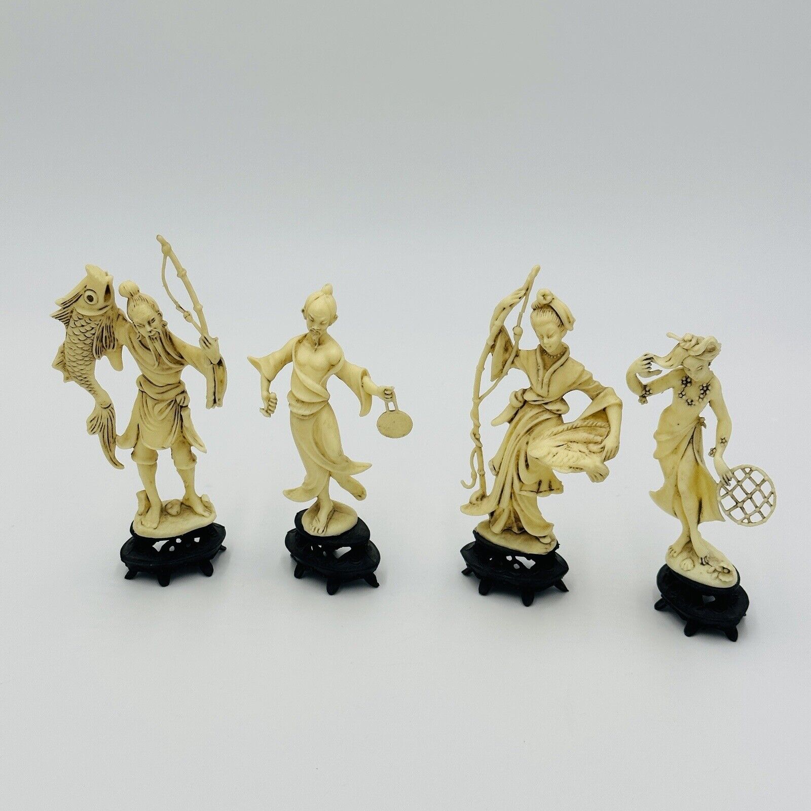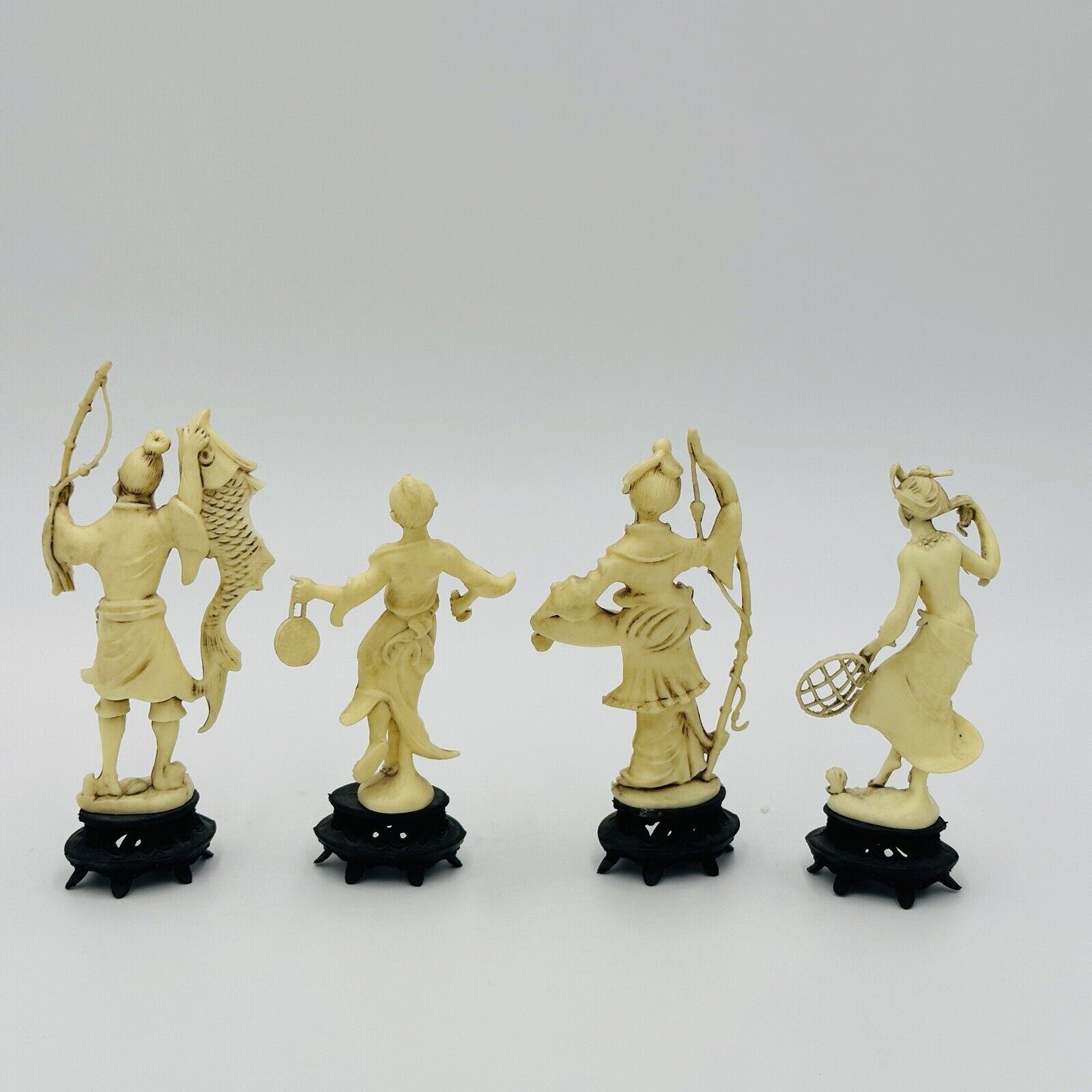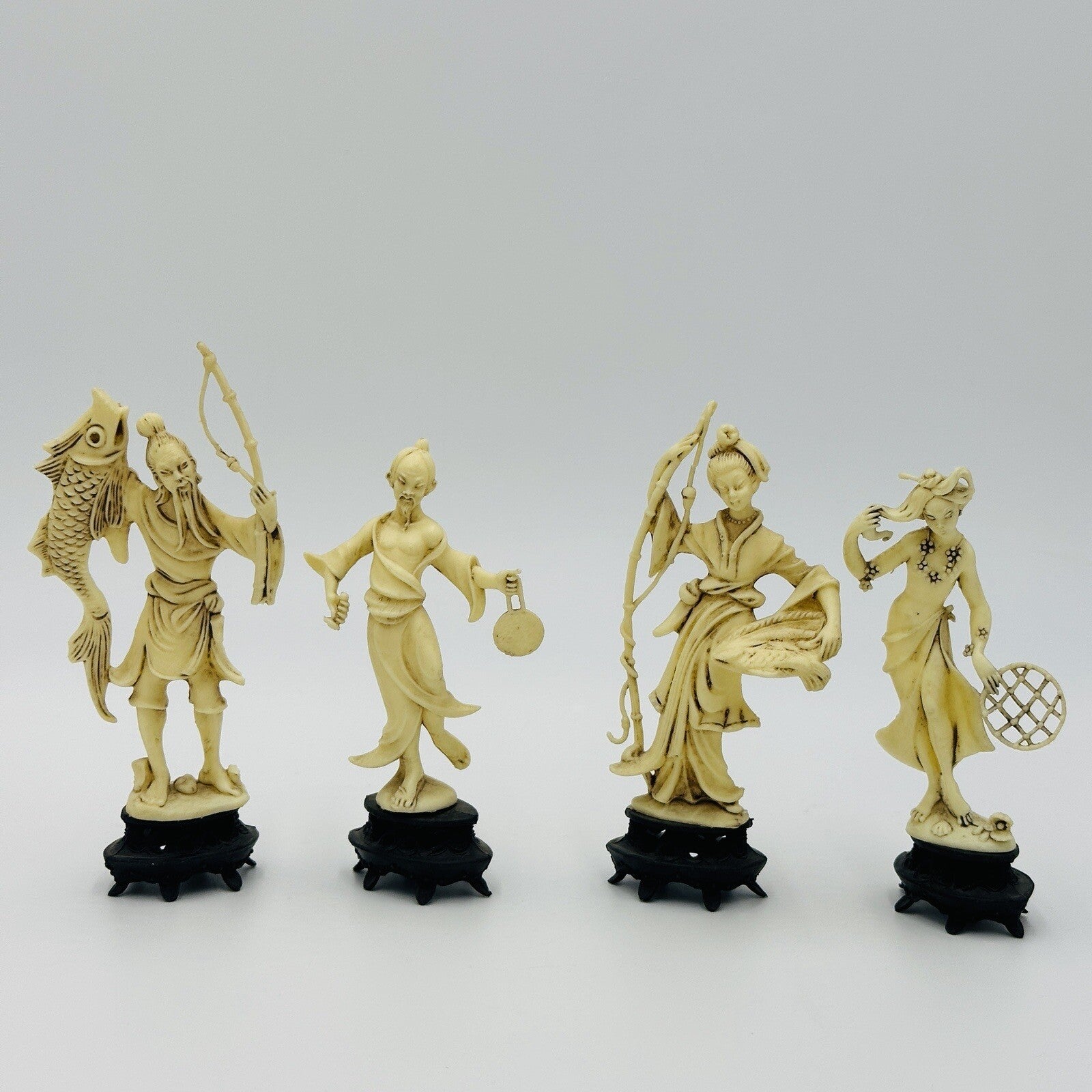 Vintage Fontanini Depositato Italy Chinese Figurines Fishermen Set 4 Pieces.