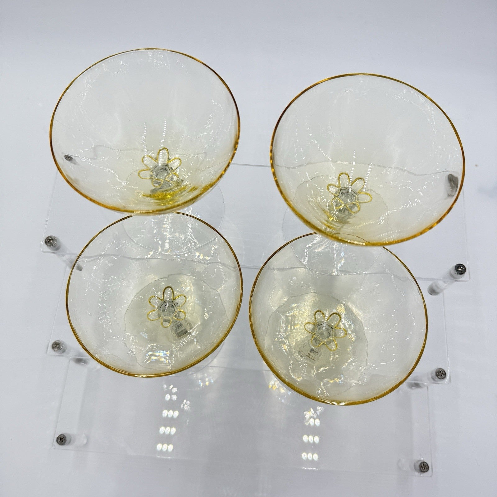 Fostoria Topaz Low Stem Art Glass Sherbet Champagne Yellow Glasses 4” Set 4