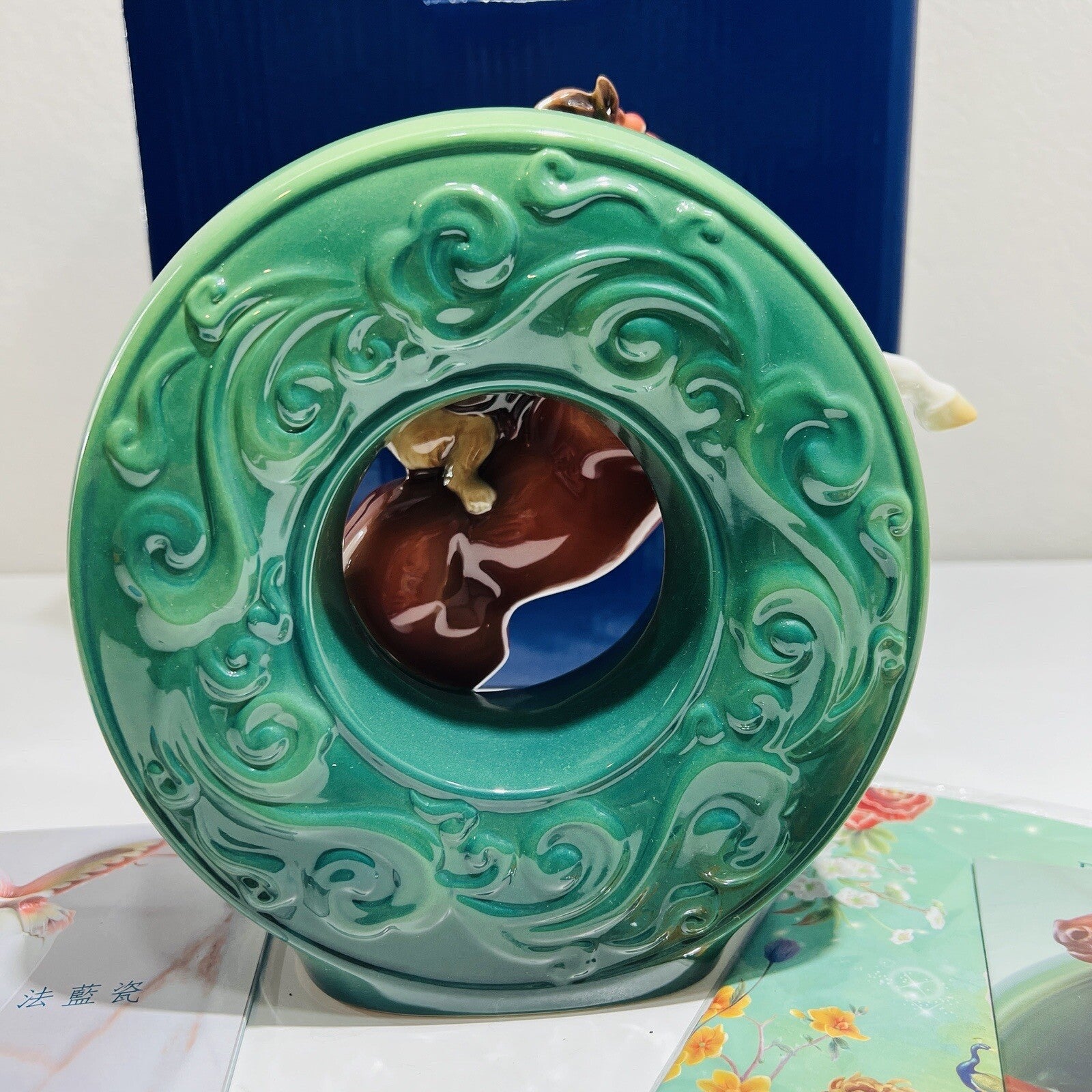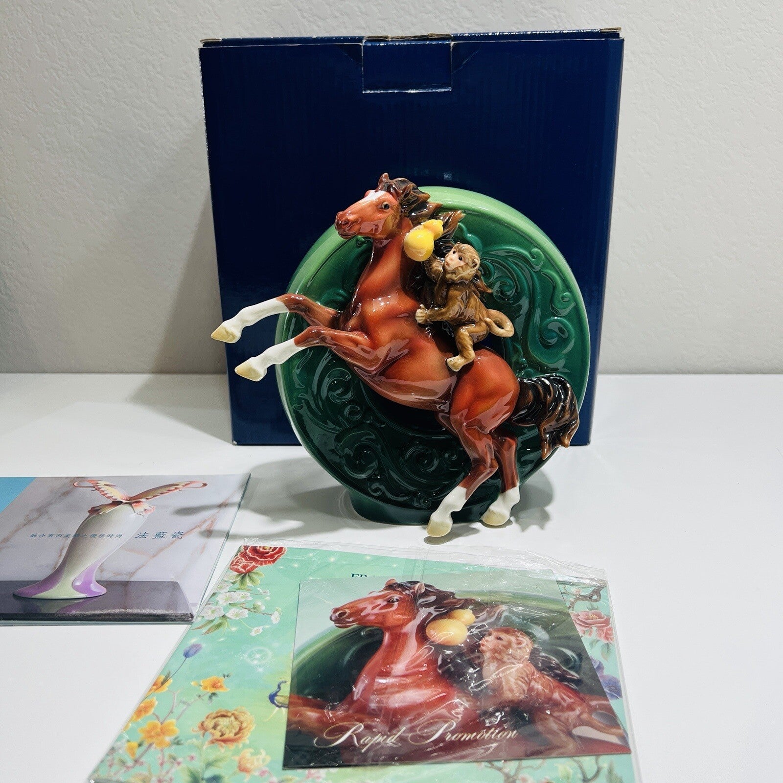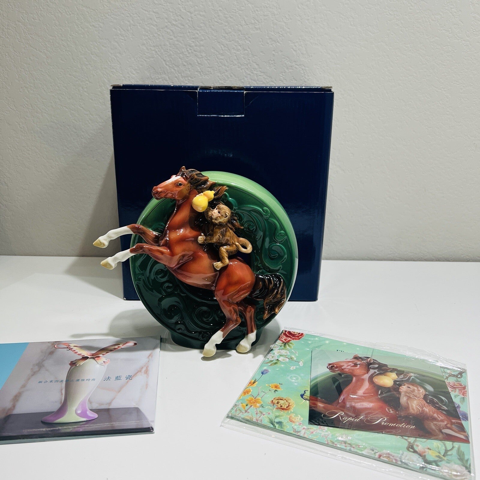 Franz Porcelain Horse Figurine Monkey Riding Hand Painted COA Box Rare