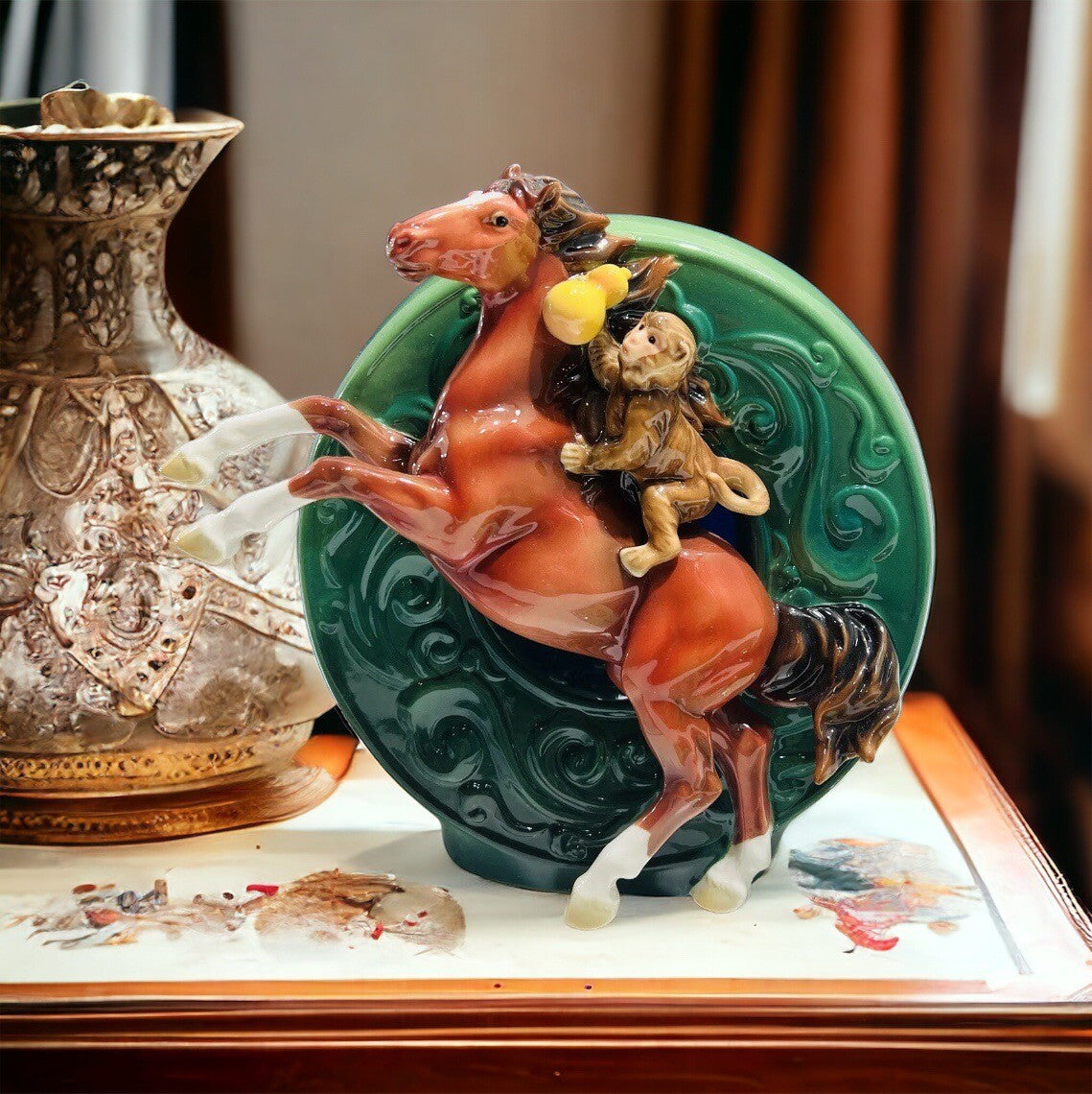 Franz porcelain horse monkey figurine sculpture hand painted.
