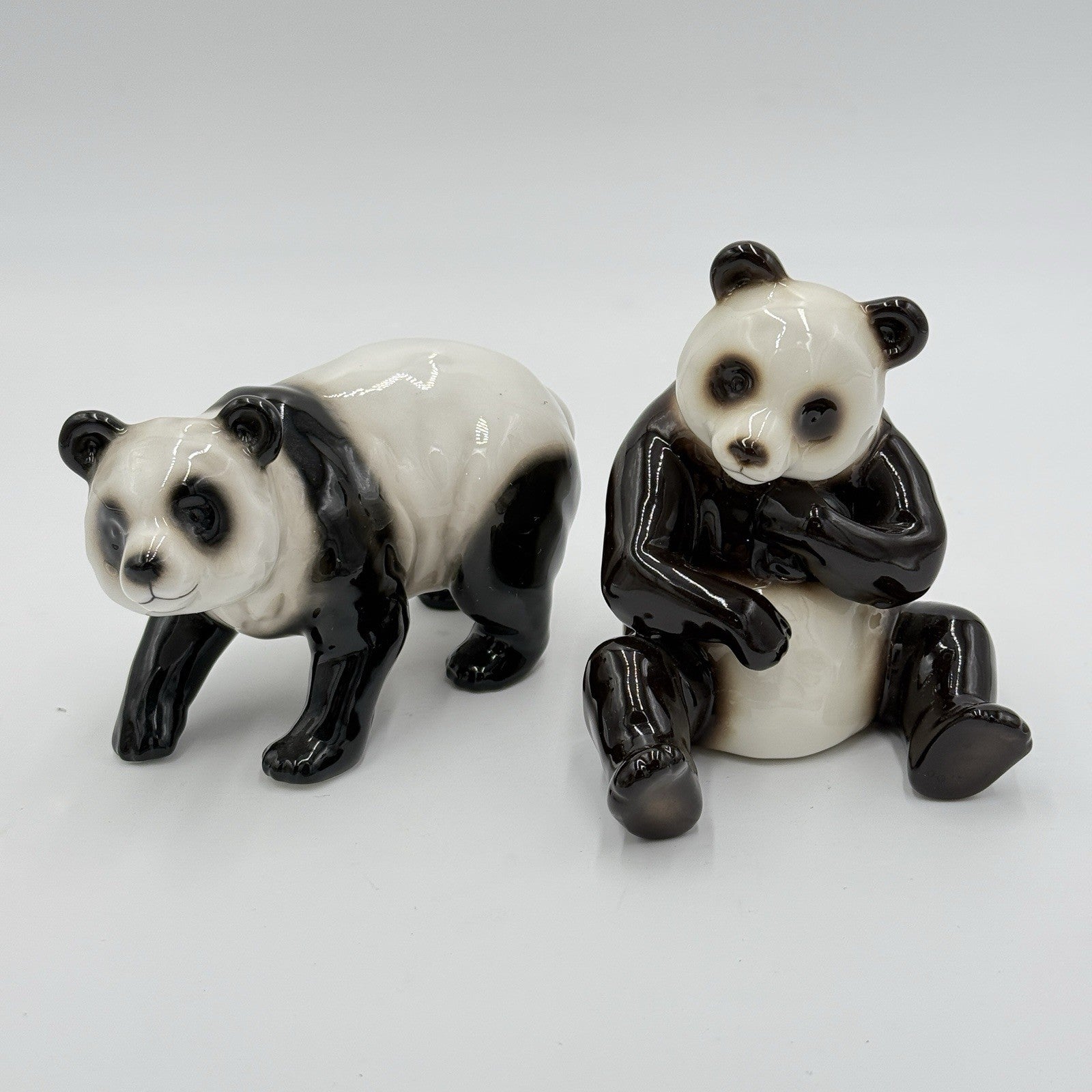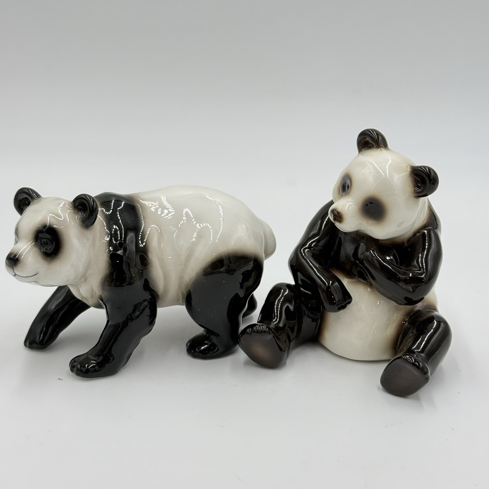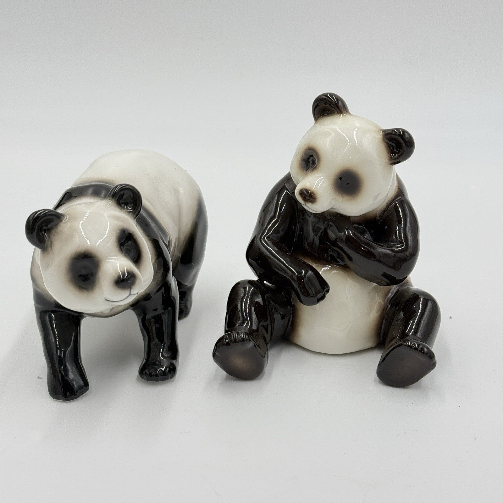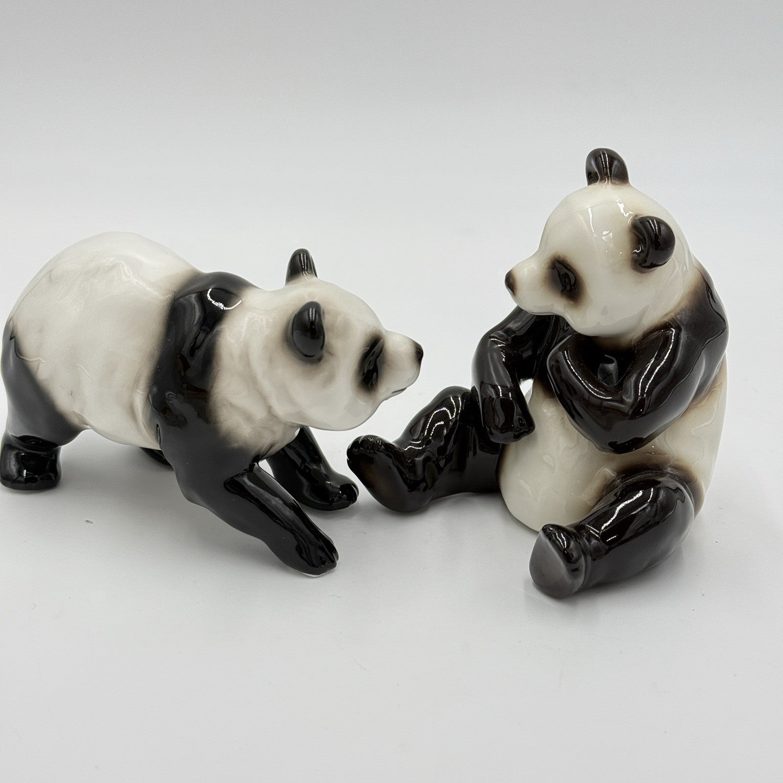 Franz Porcelain Painted Glossy Pair Panda Bears Figurines 4” Set