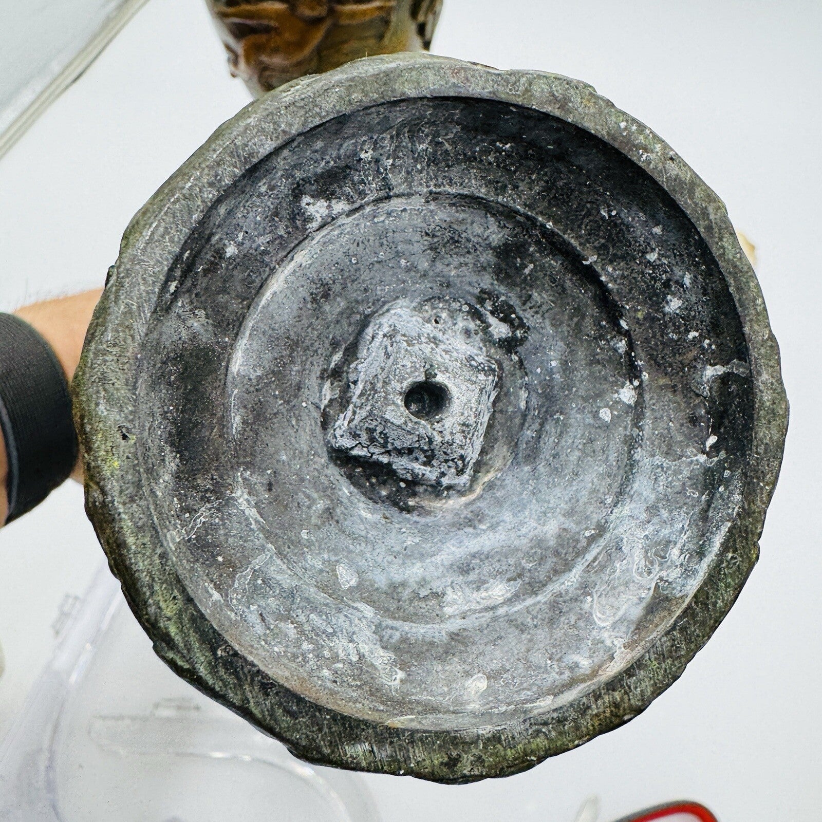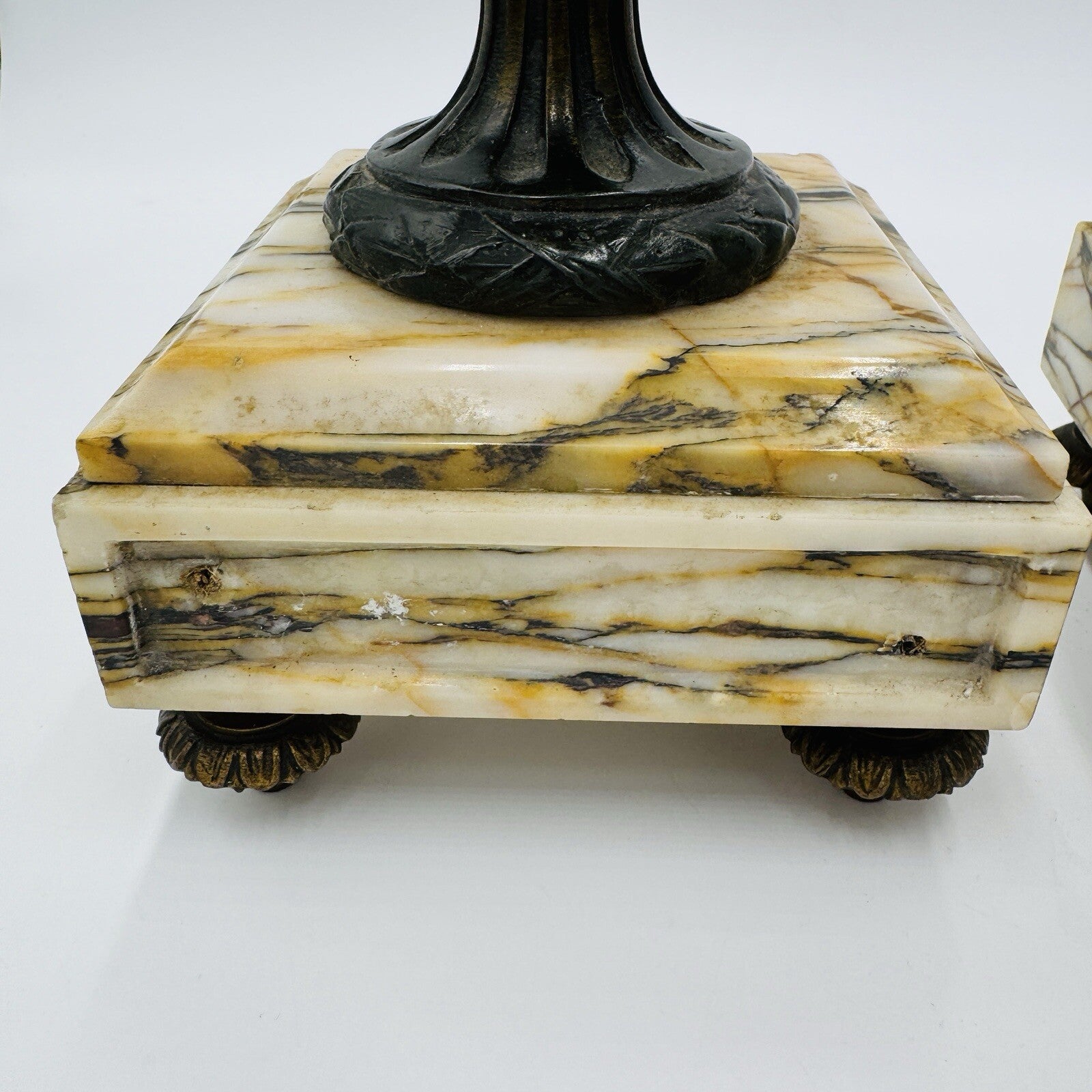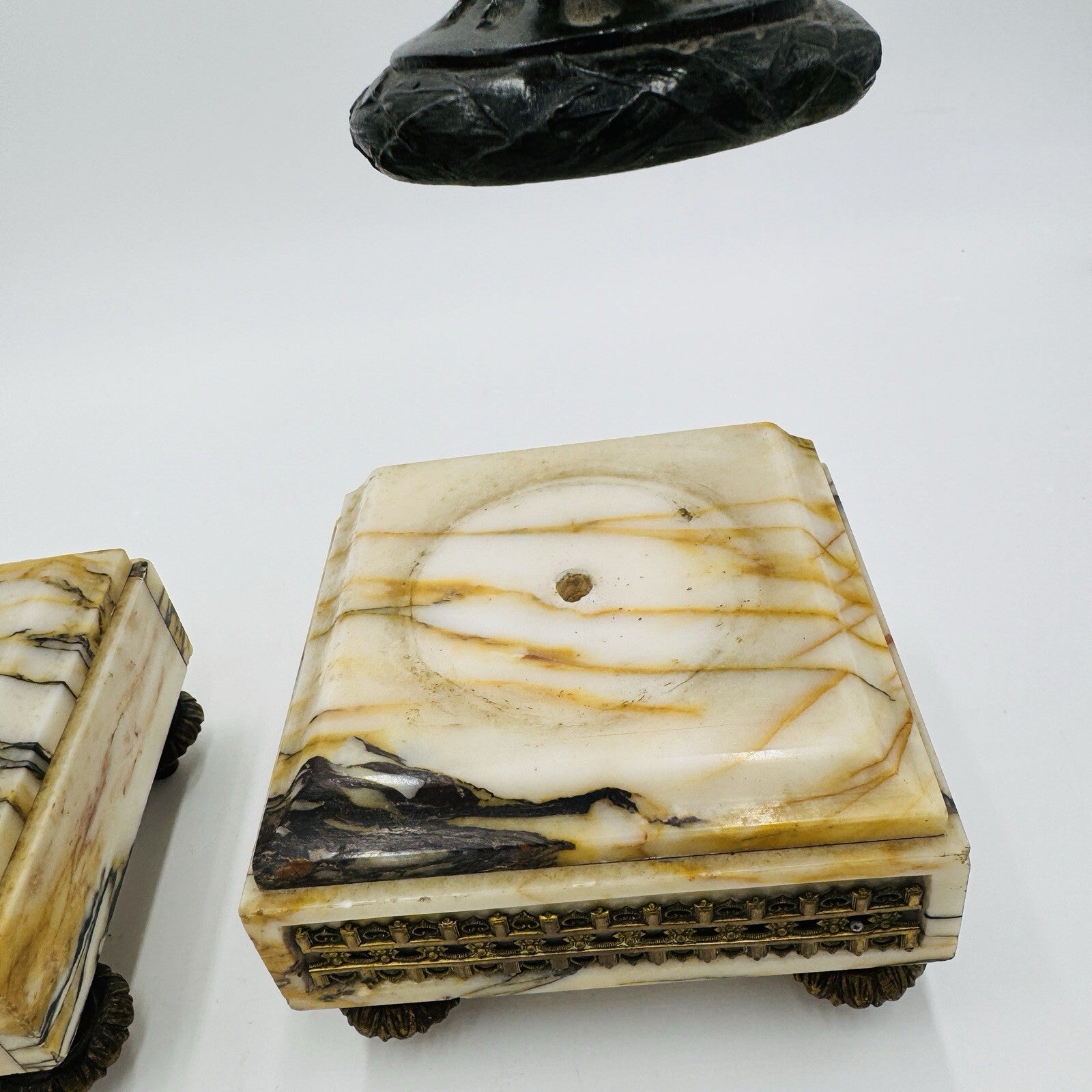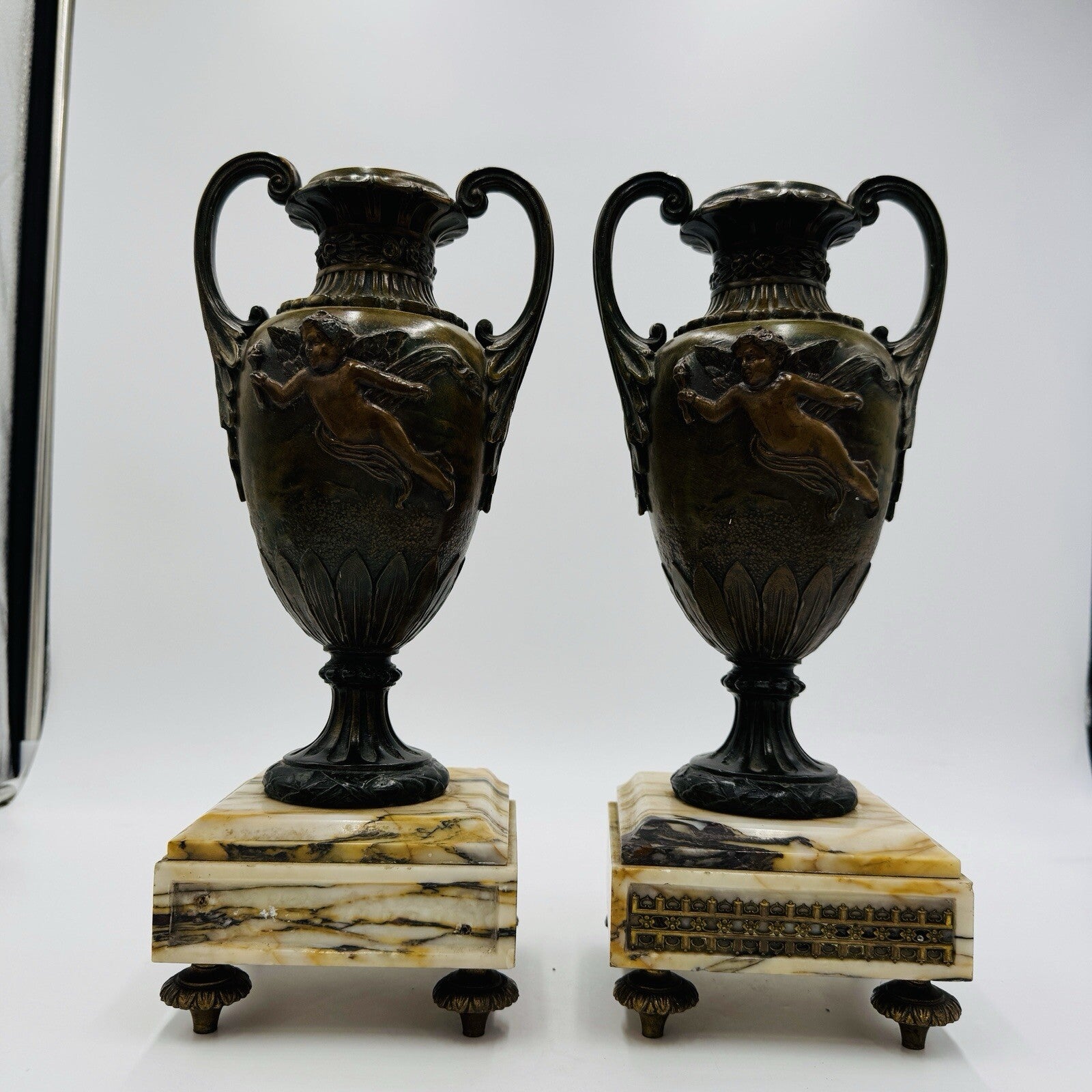 French metal vases rare 1800s Chateau ornate chimney cherubs marble base 13.5in