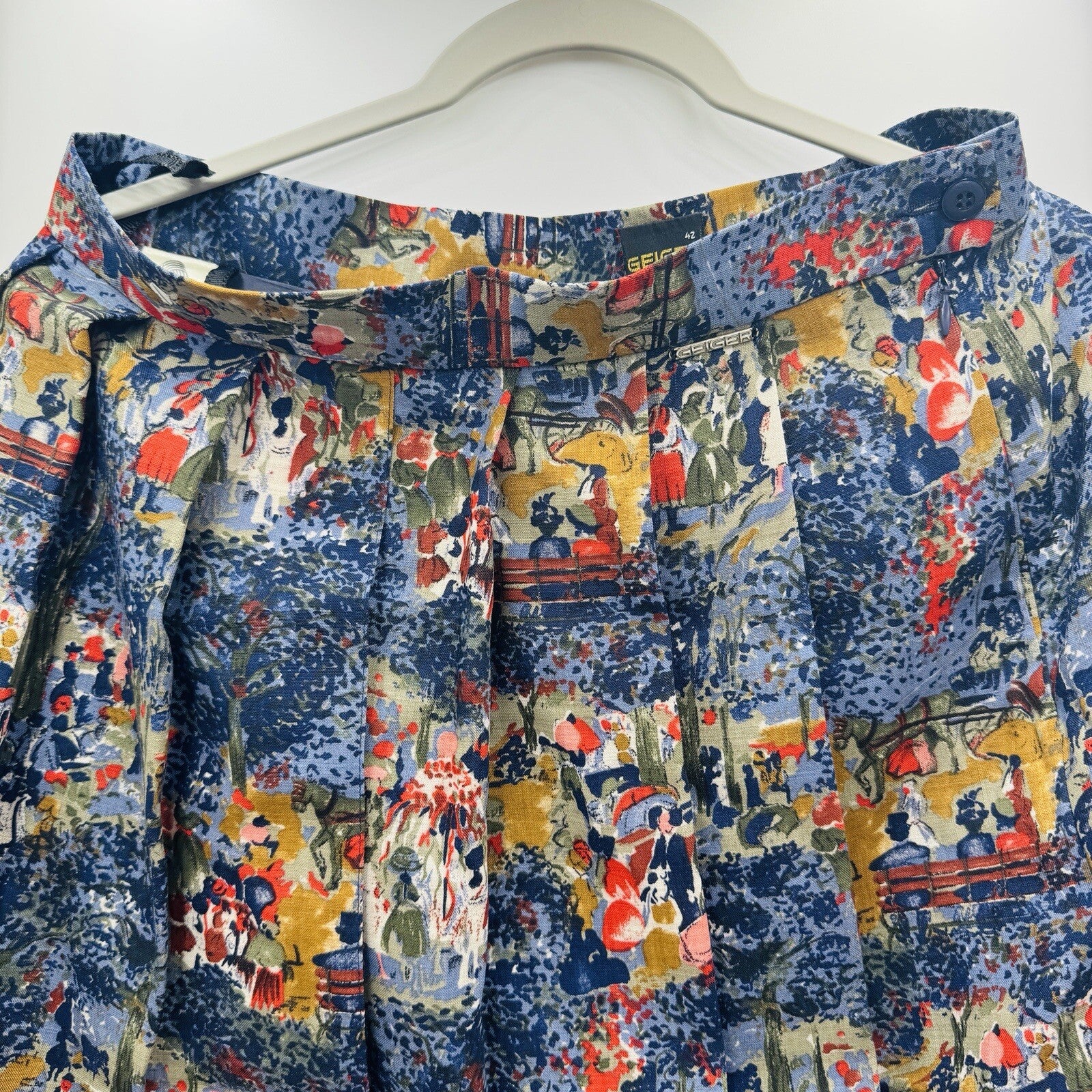 Geiger Pleated Printed Pure Wool Skirt size 42 Made In Austria Vintage 33inL