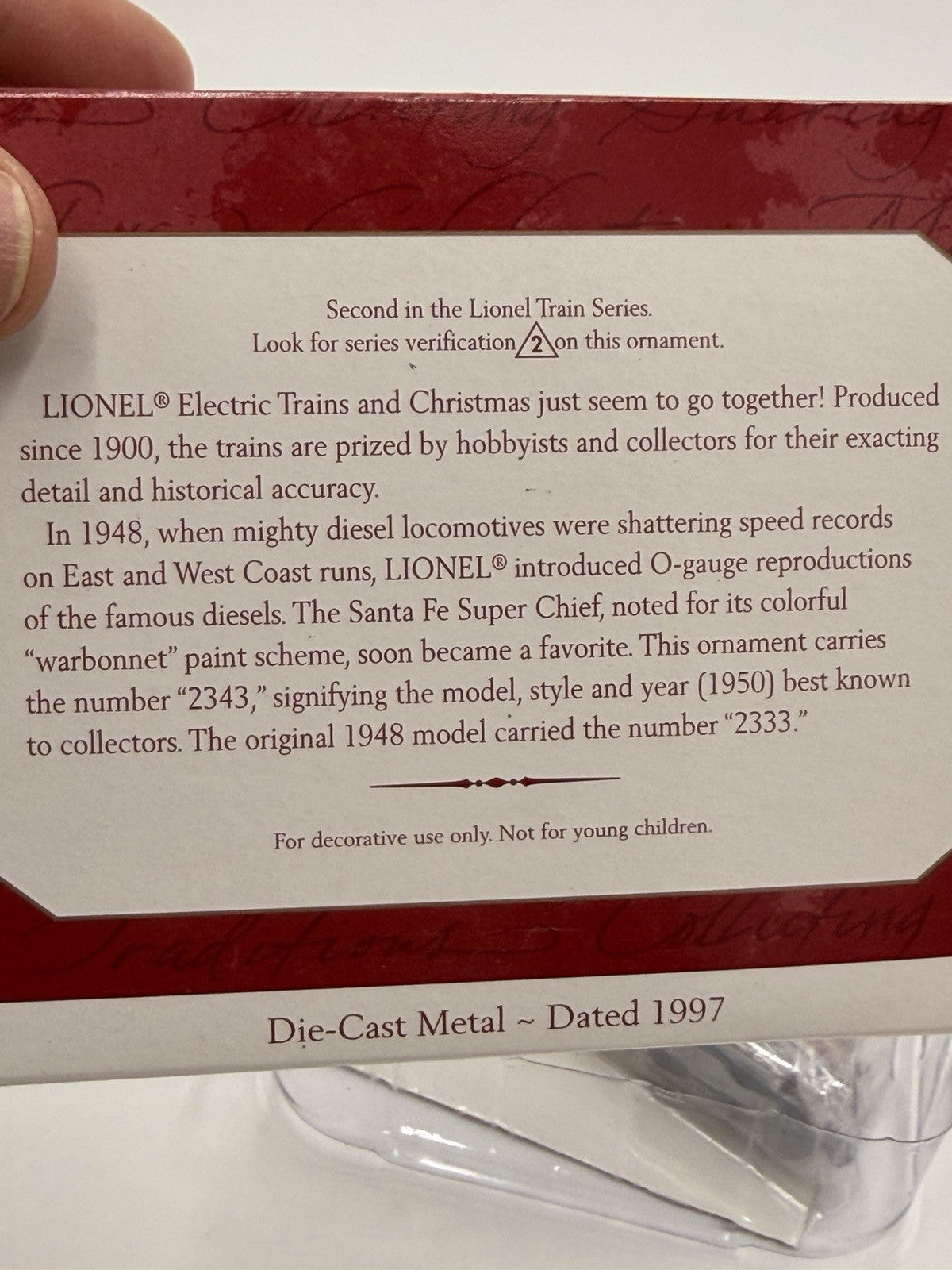 Hallmark Lionel 1950 Santa Fe F3 Diesel Locomotive Train Ornament 1997 New