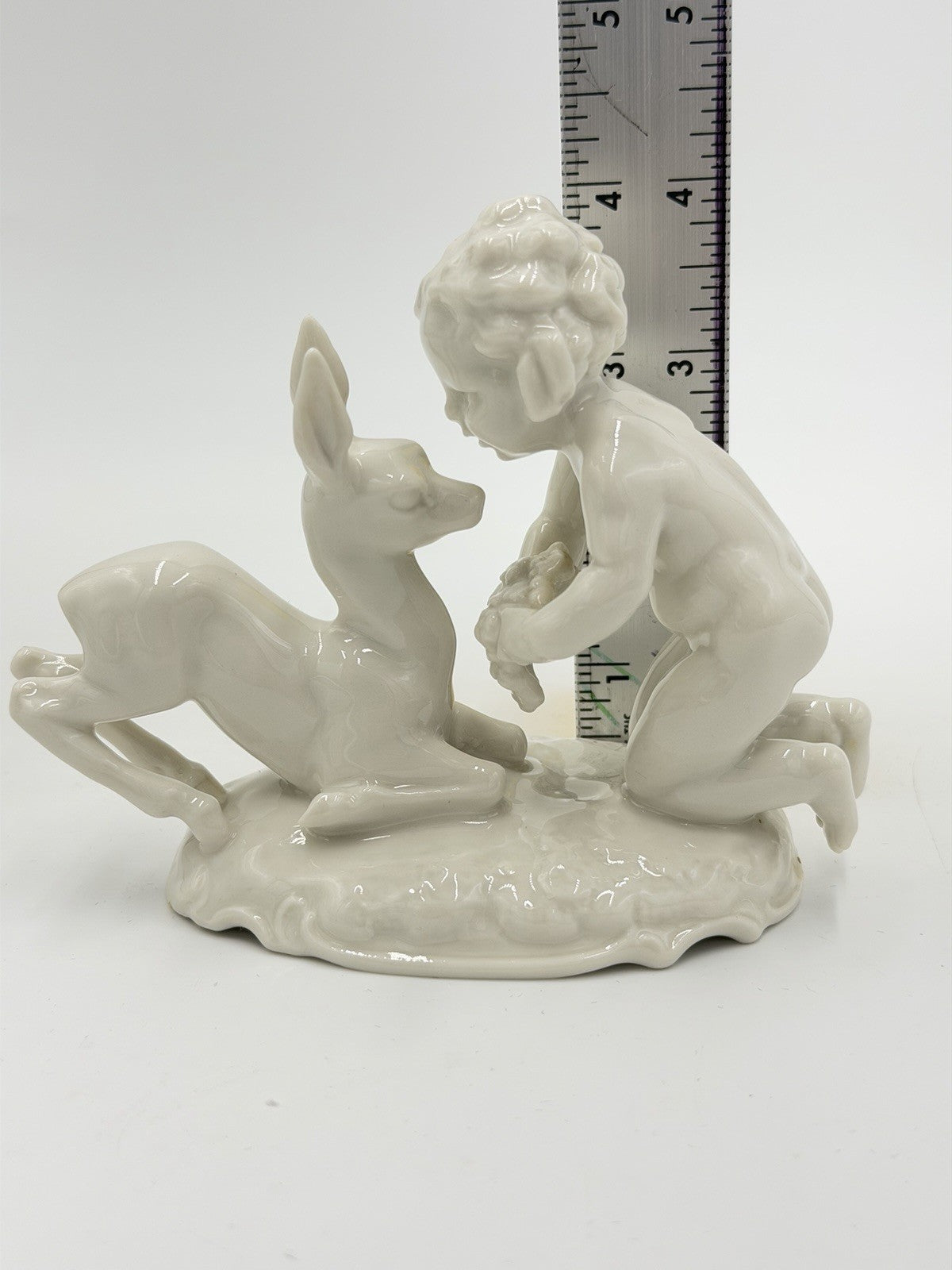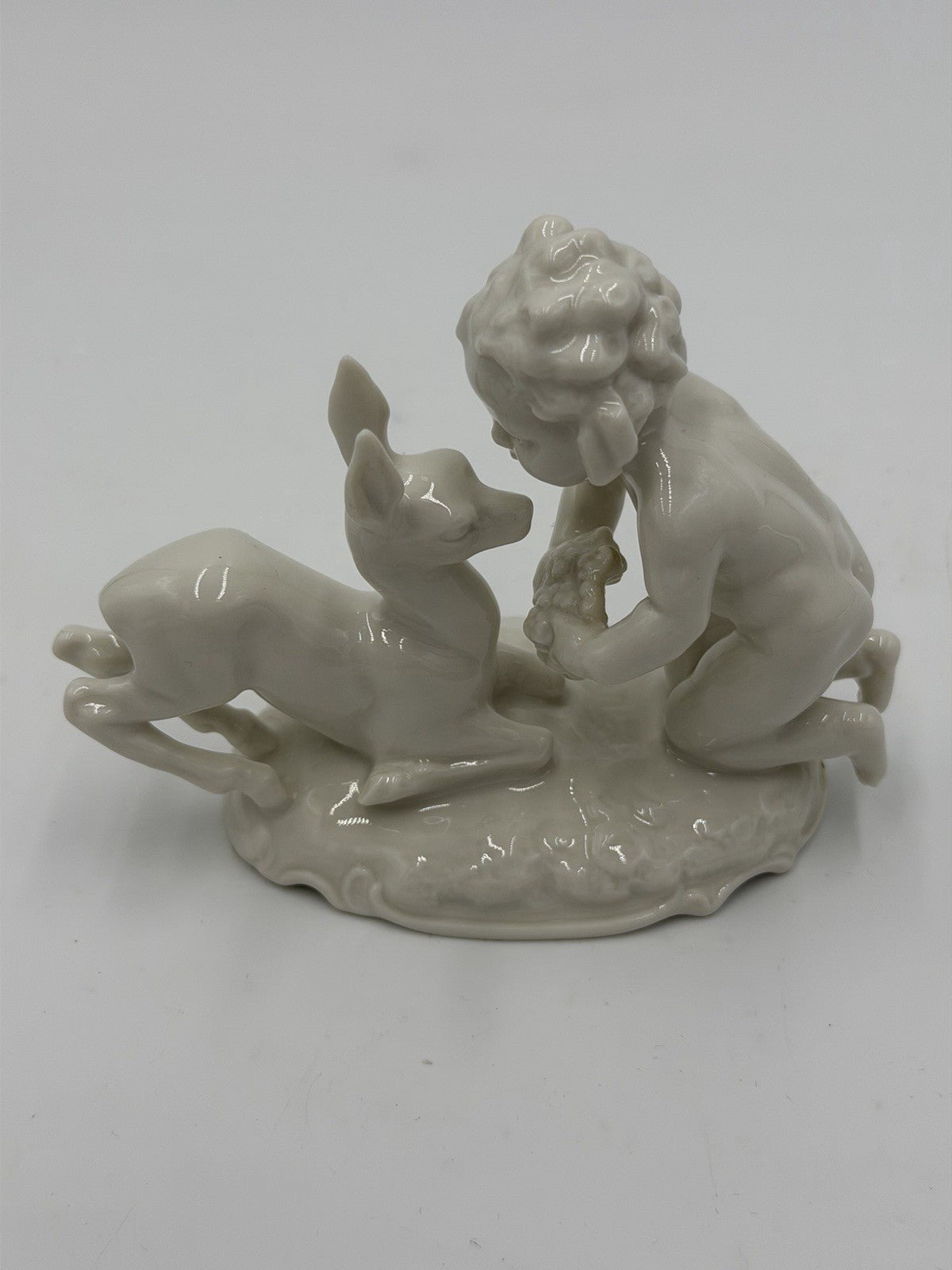 Hutschenreuther Kunstabteilung Putto w/Fawn German Porcelain Figurine Vtg 4”H
