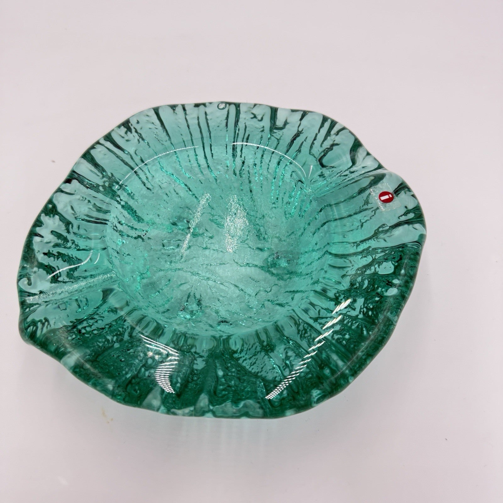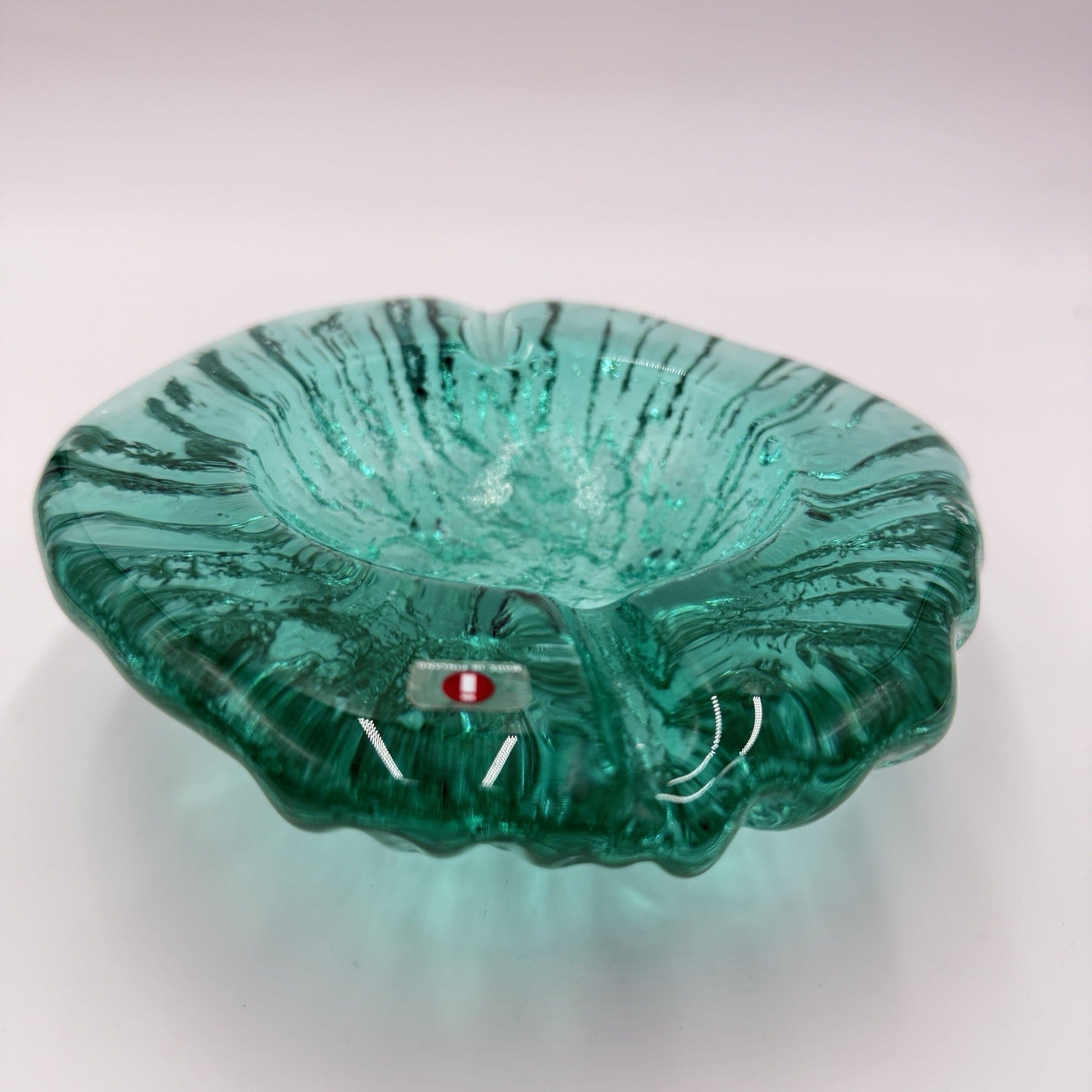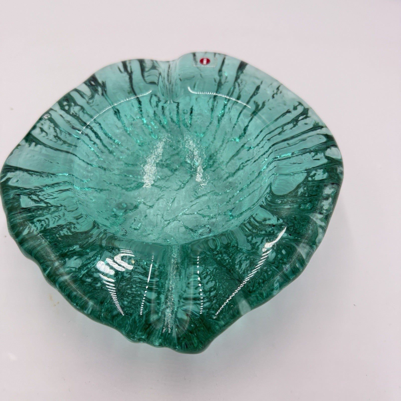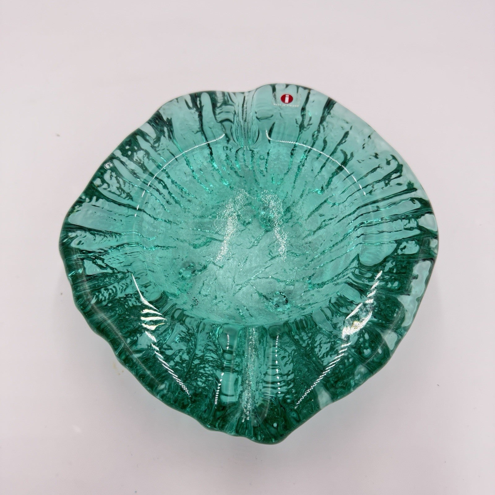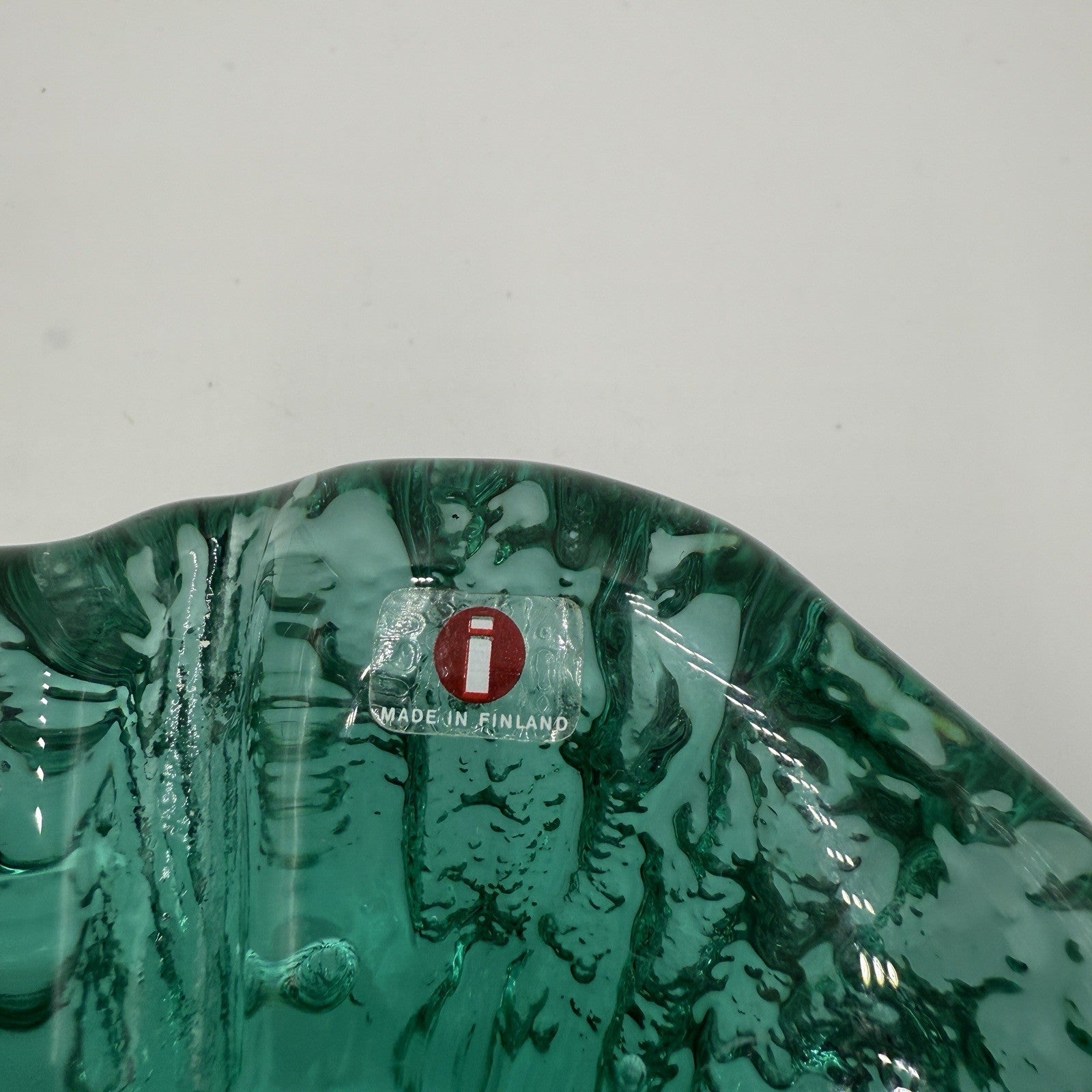 iittala Finland art glass green emerald ashtray footed bowl Rare 2” X 6.5”L X6”w